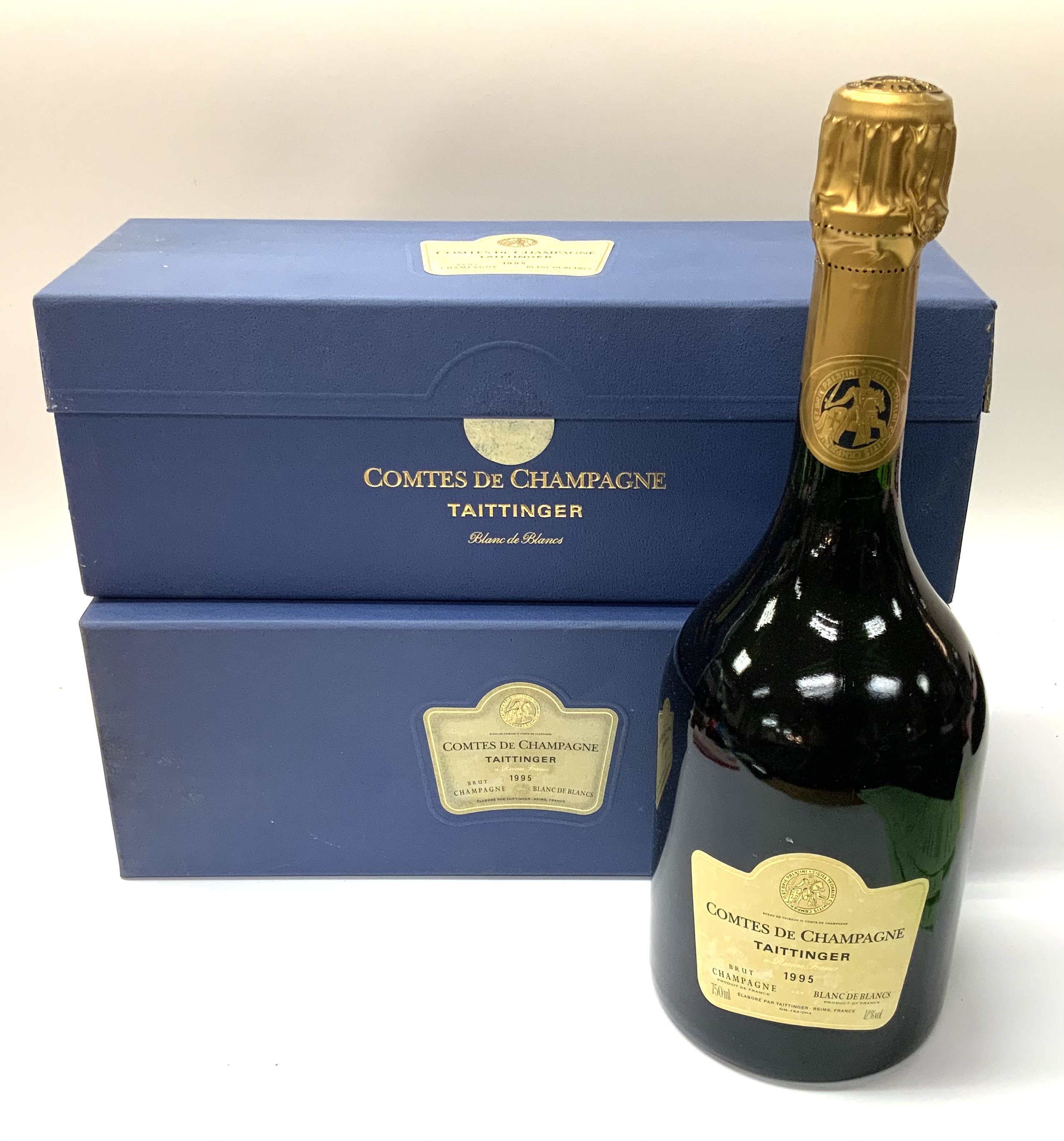 2 bottles of Taittinger Comtes de Champagne 1995 (D, postage is not available for this lot).