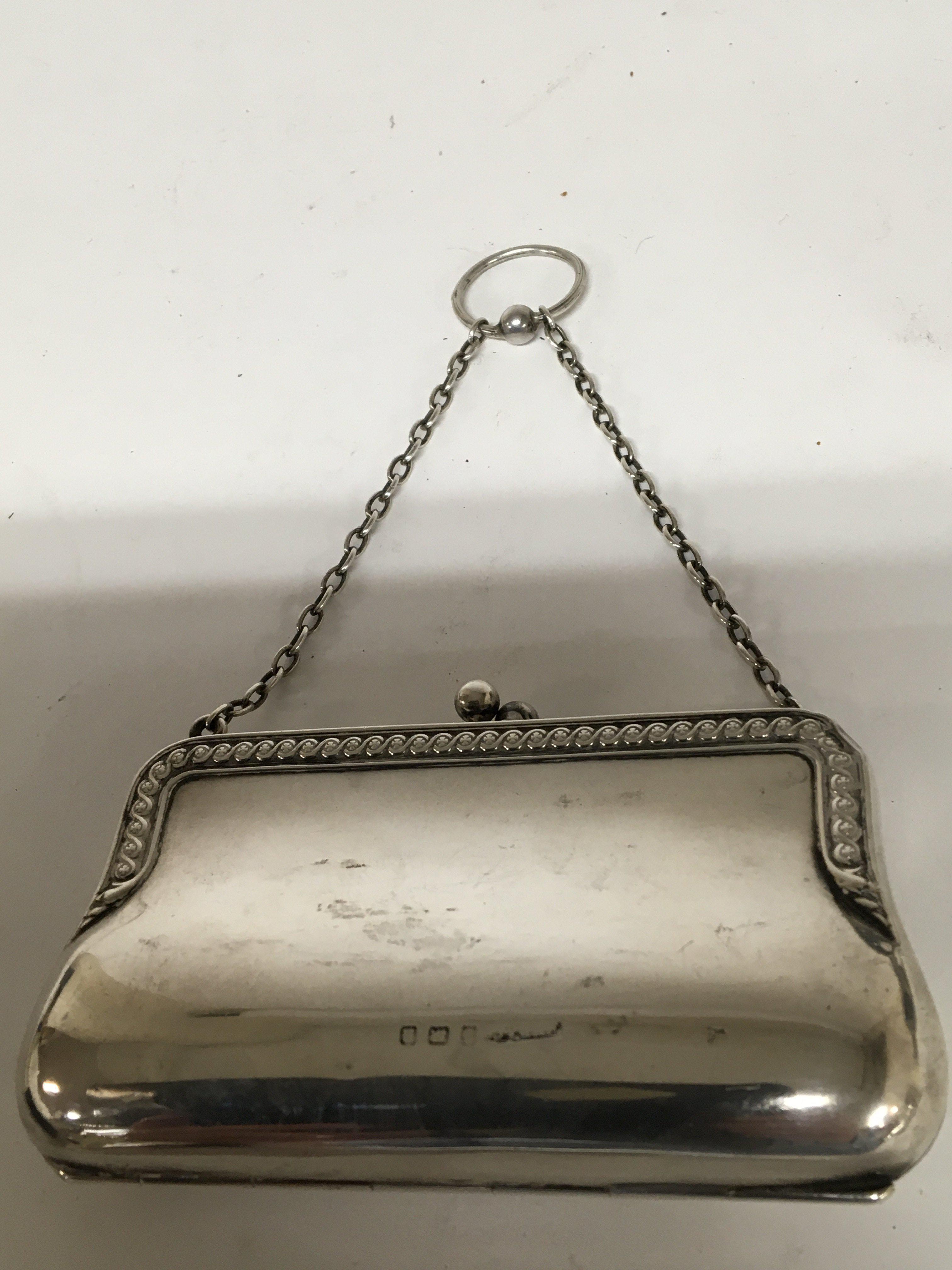 A ladies Silver purse with a fitted leather interior.11cm x 15cm