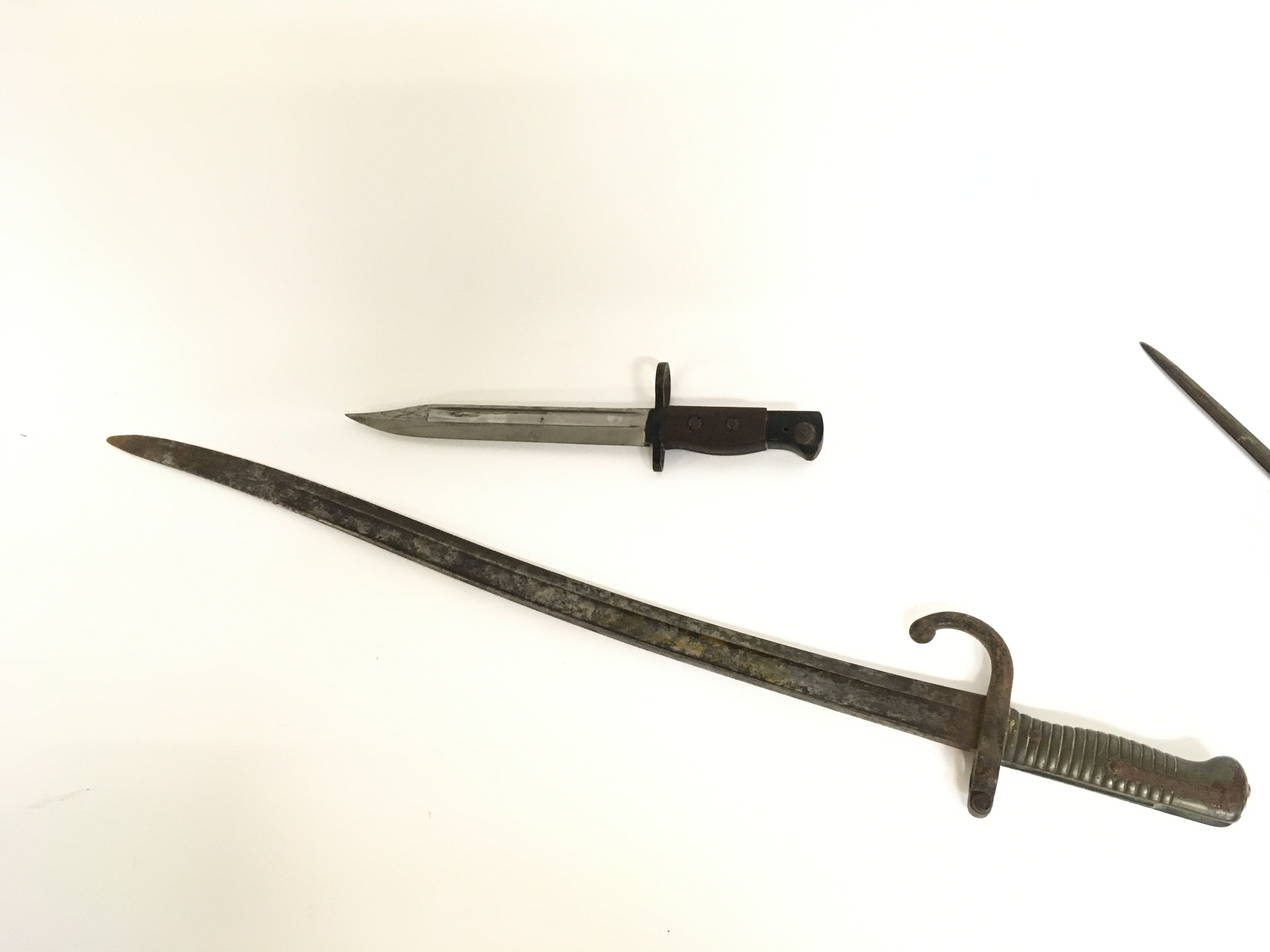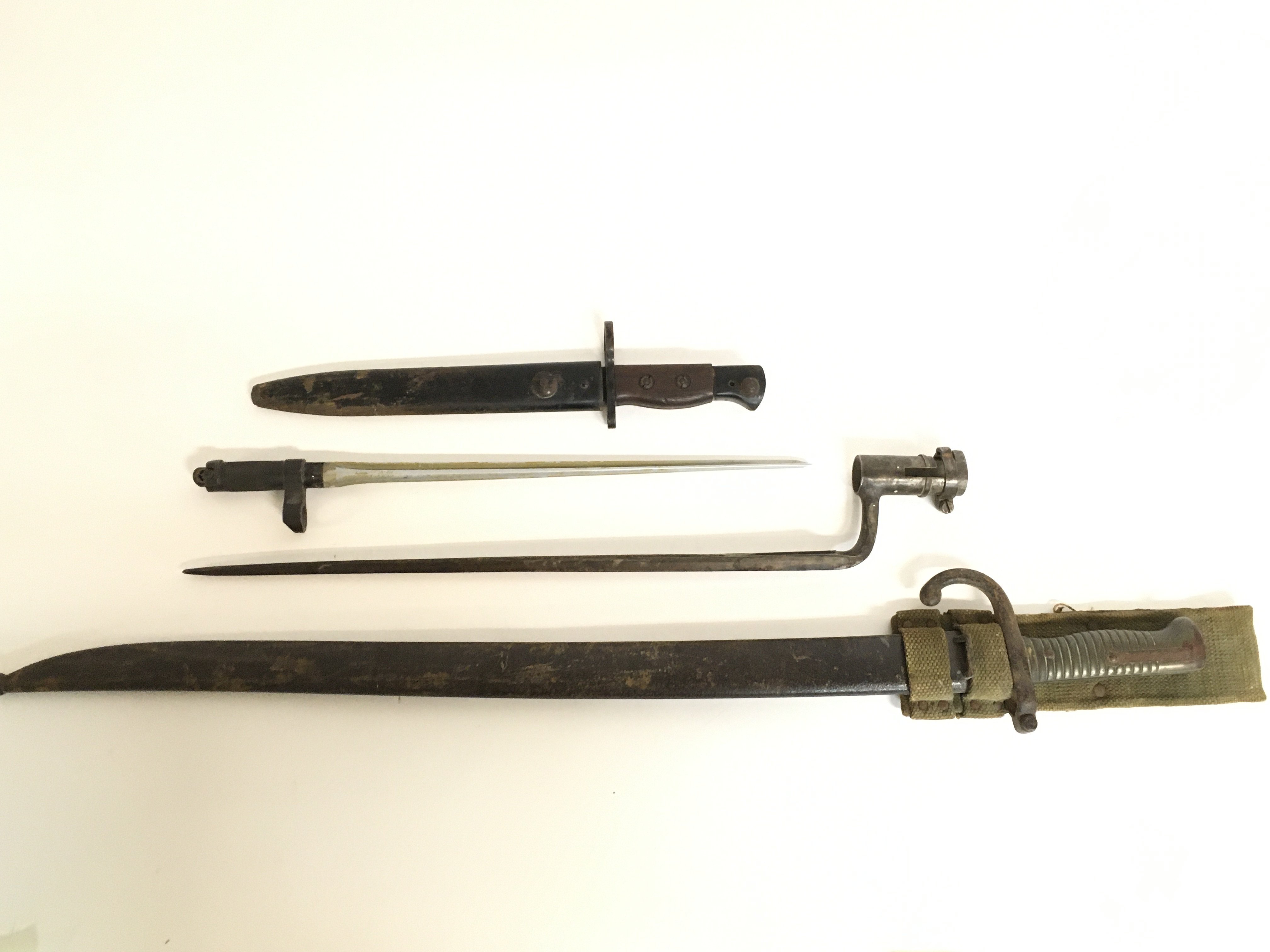 Bayonets including a French example, British Jungle Carbine bayonet, spike bayonet etc. This lot cannot be posted