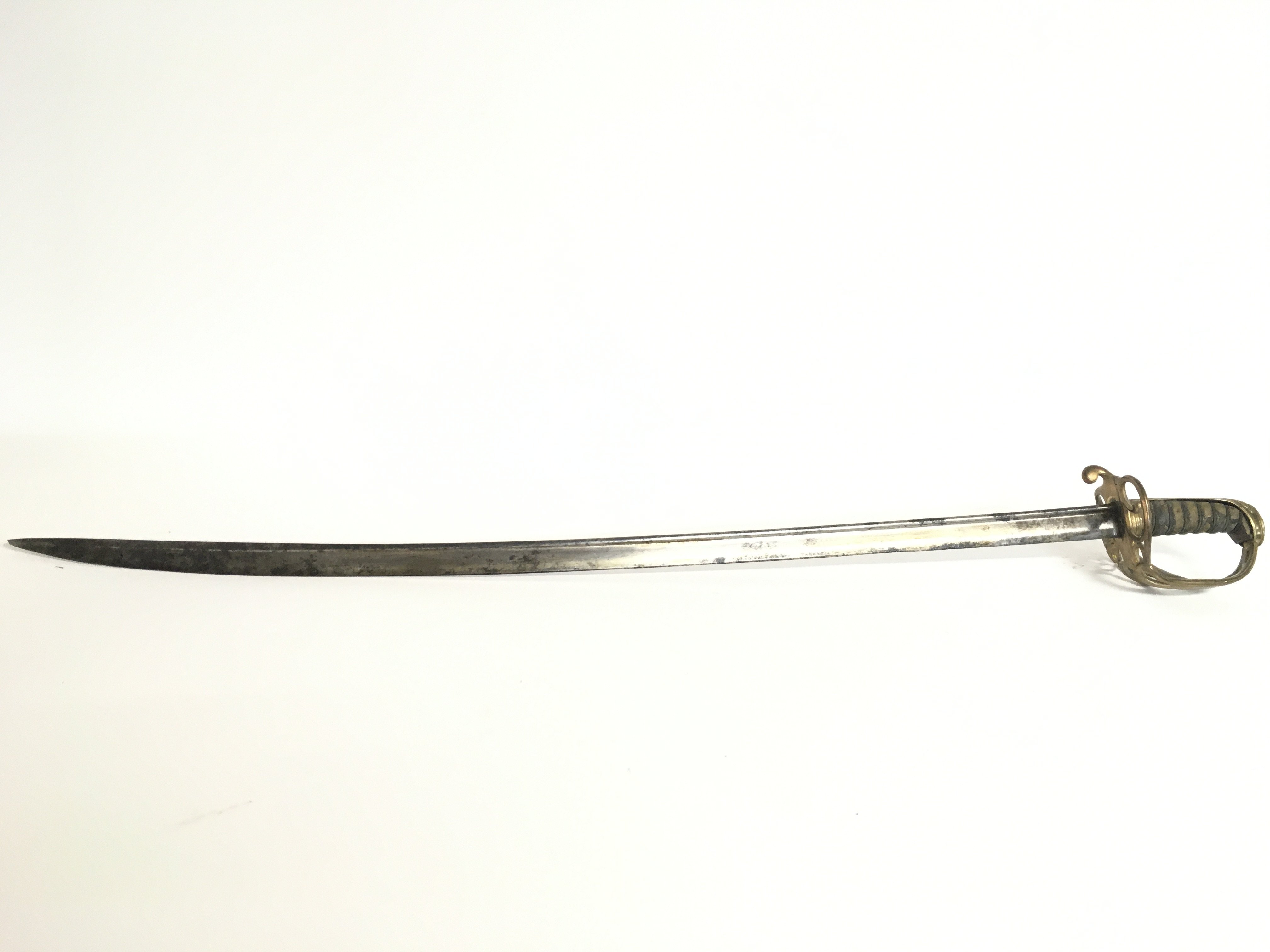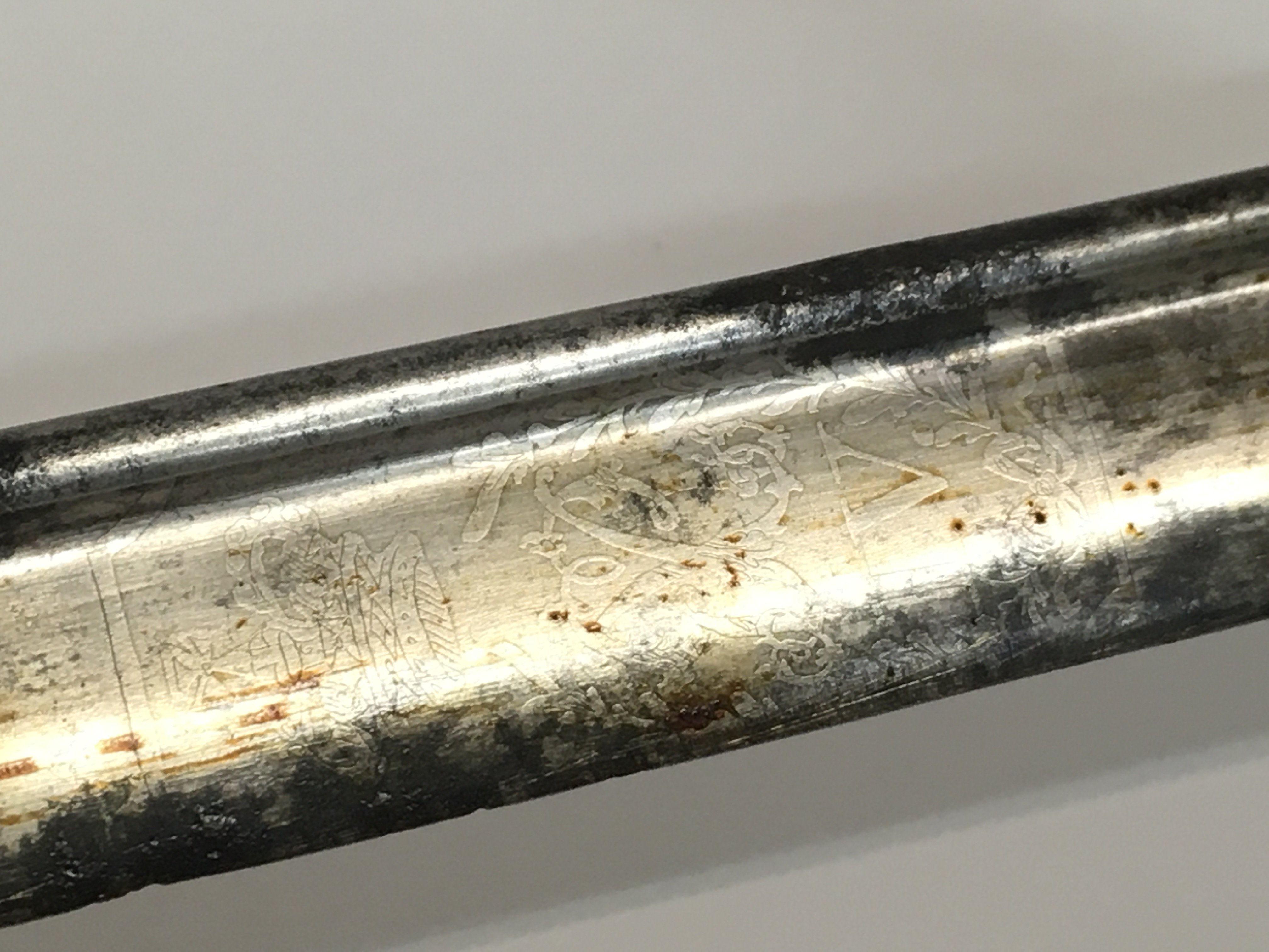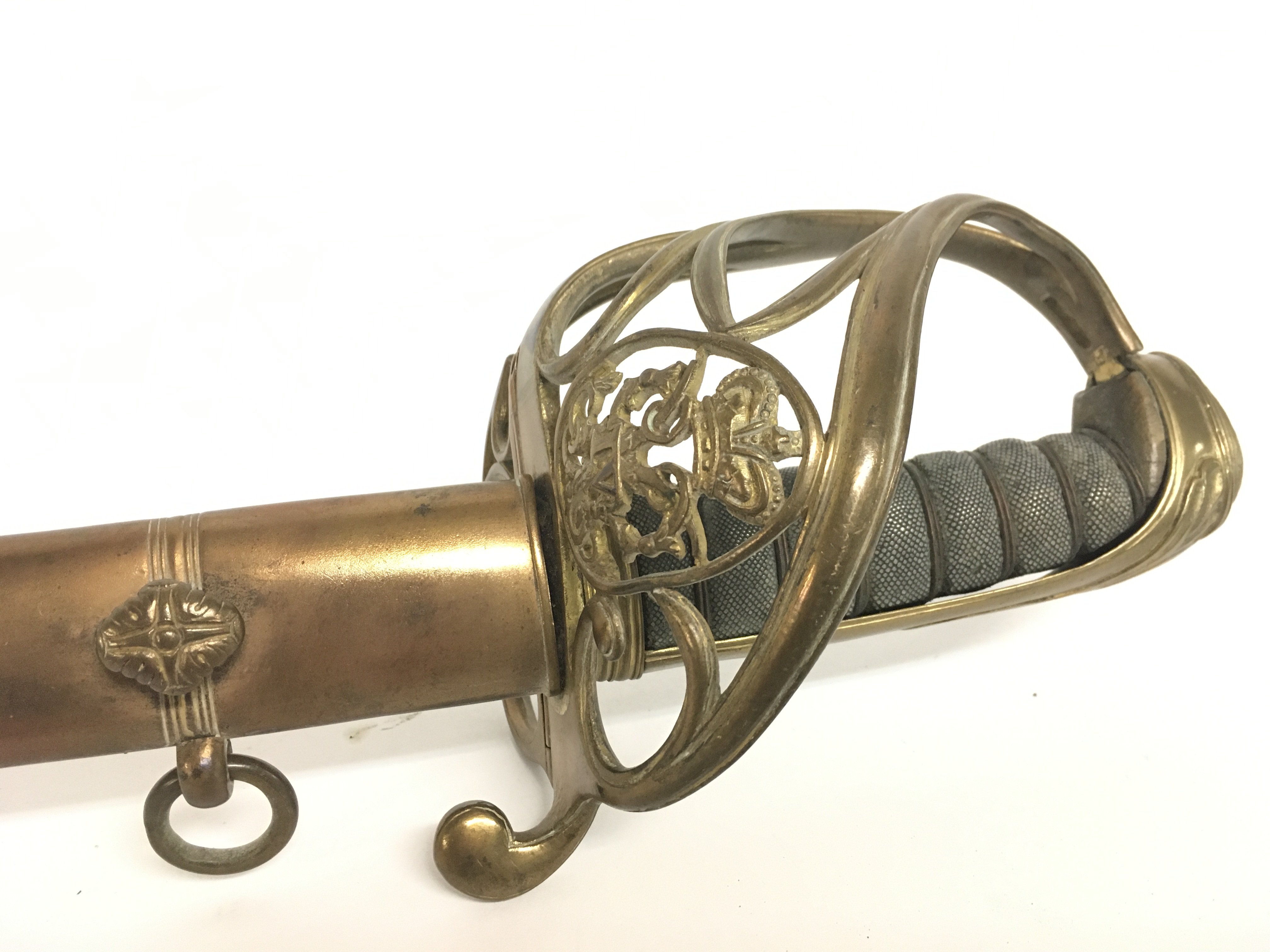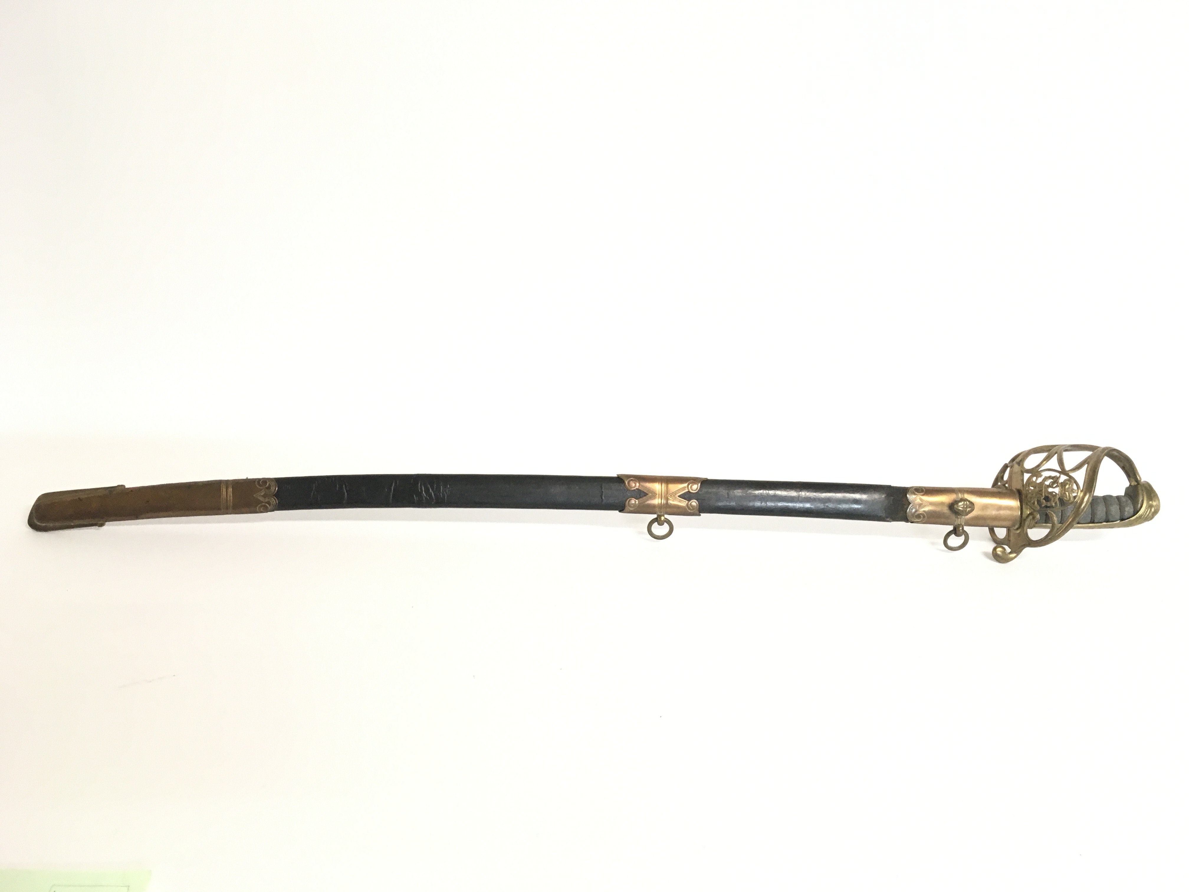 A George IV British Infantry Officers naval sword with leather scabbard. 32 inch blade. This item cannot be posted