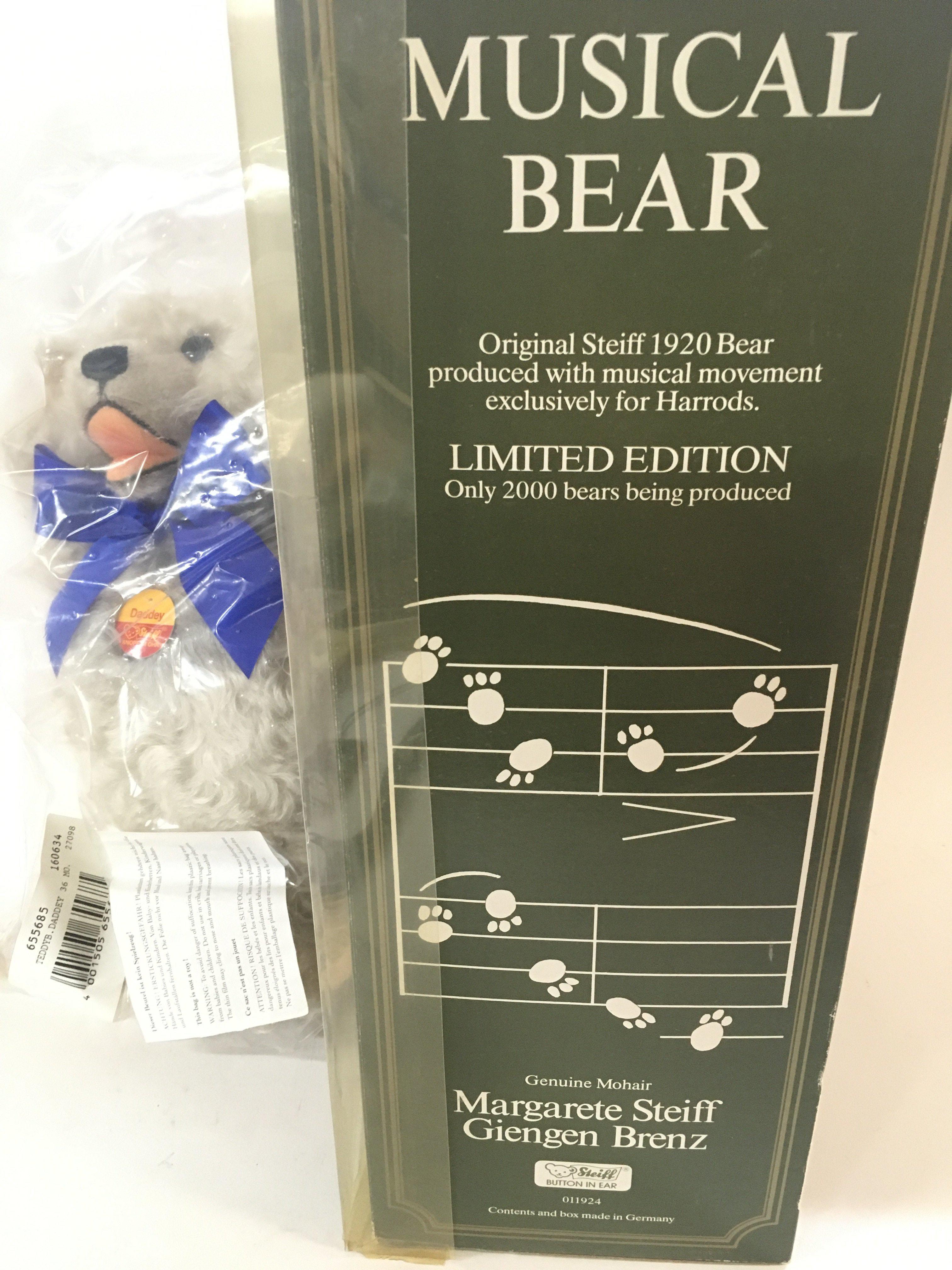 WITHDRAWN - A Boxed Harrods Steiff Musical Bear 1920 Replica and a Steiff Club Daddy Bear.(2).