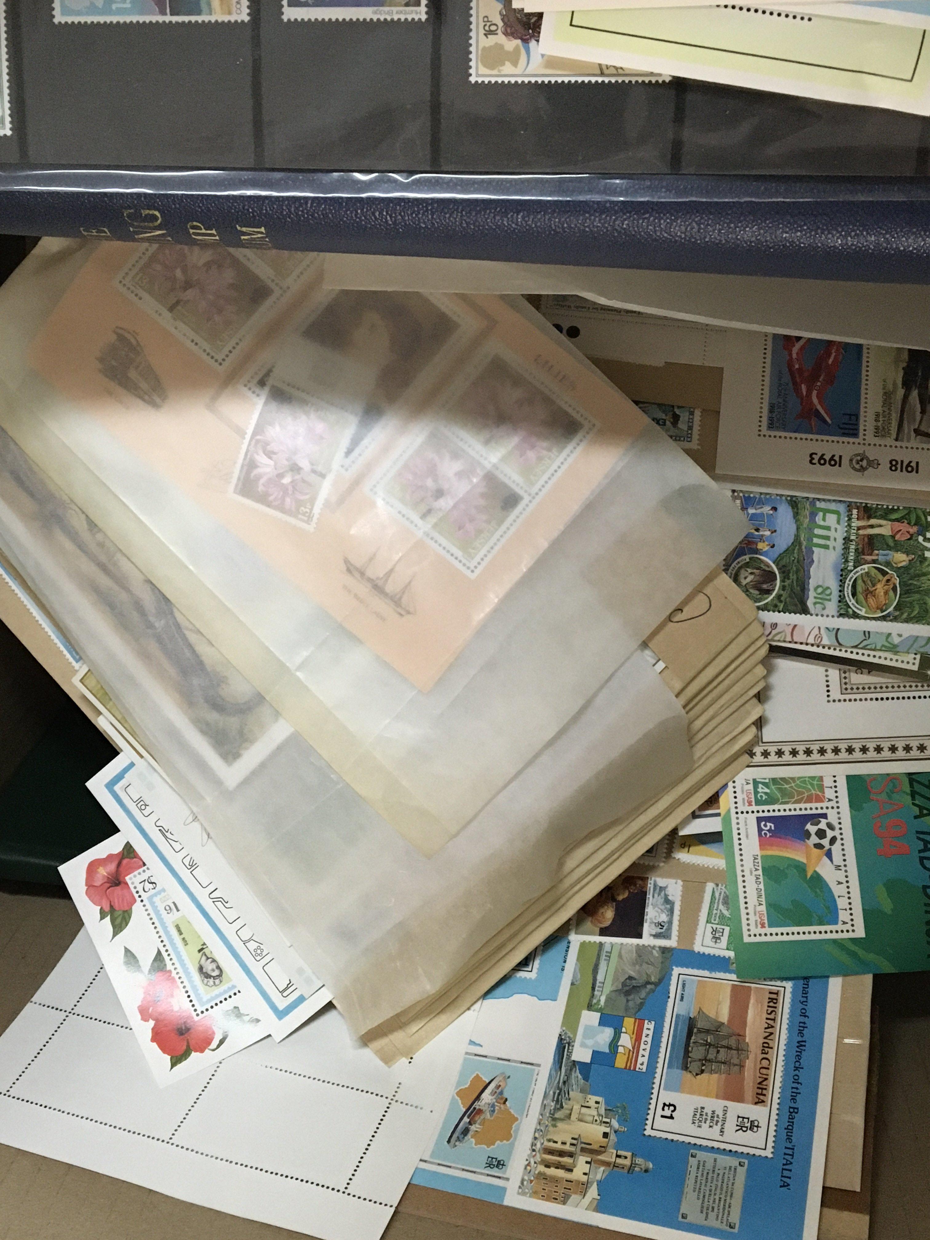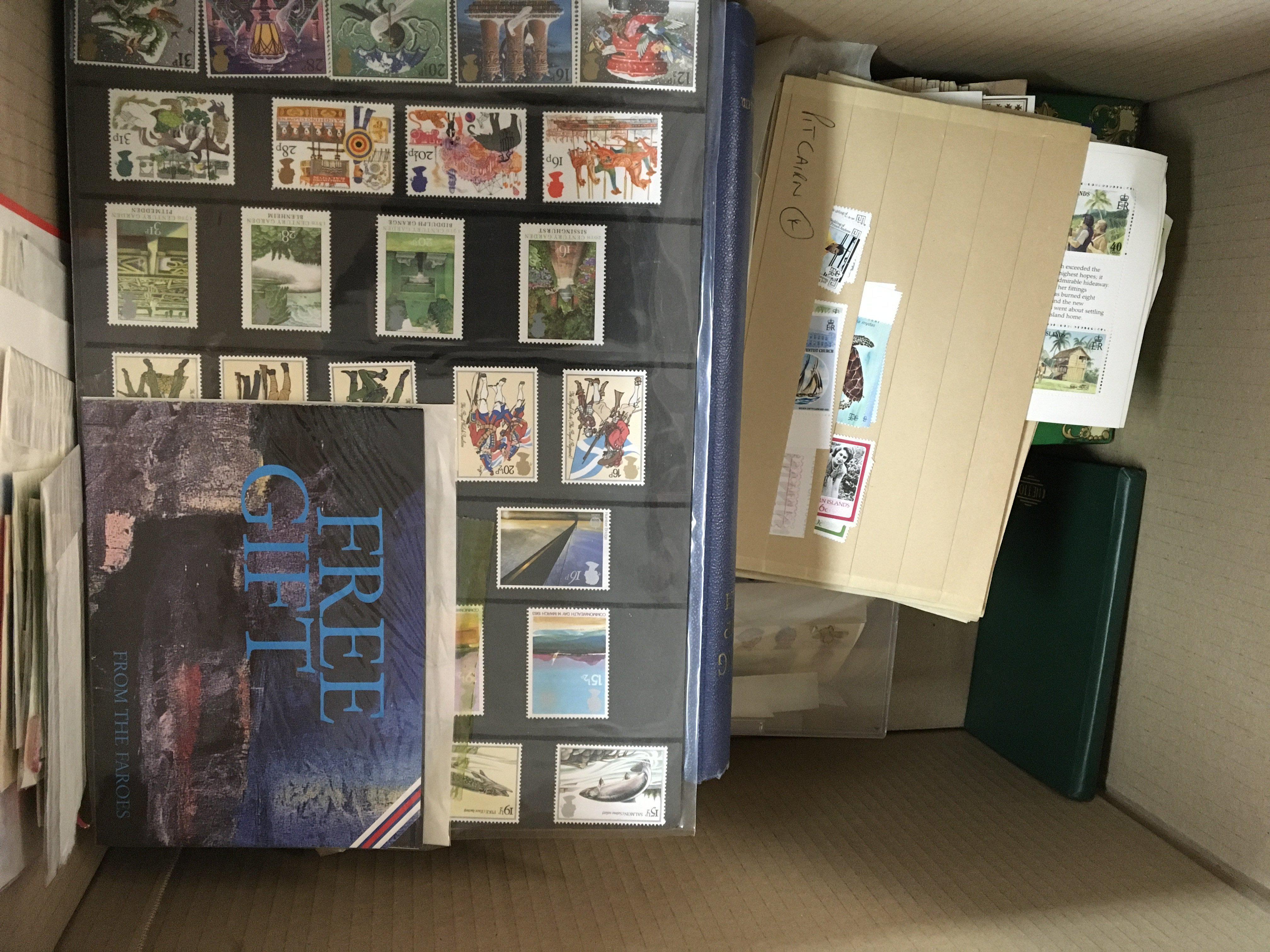 A box containing mixed stamps used and unused British and Commonwealth and an album of world stamps