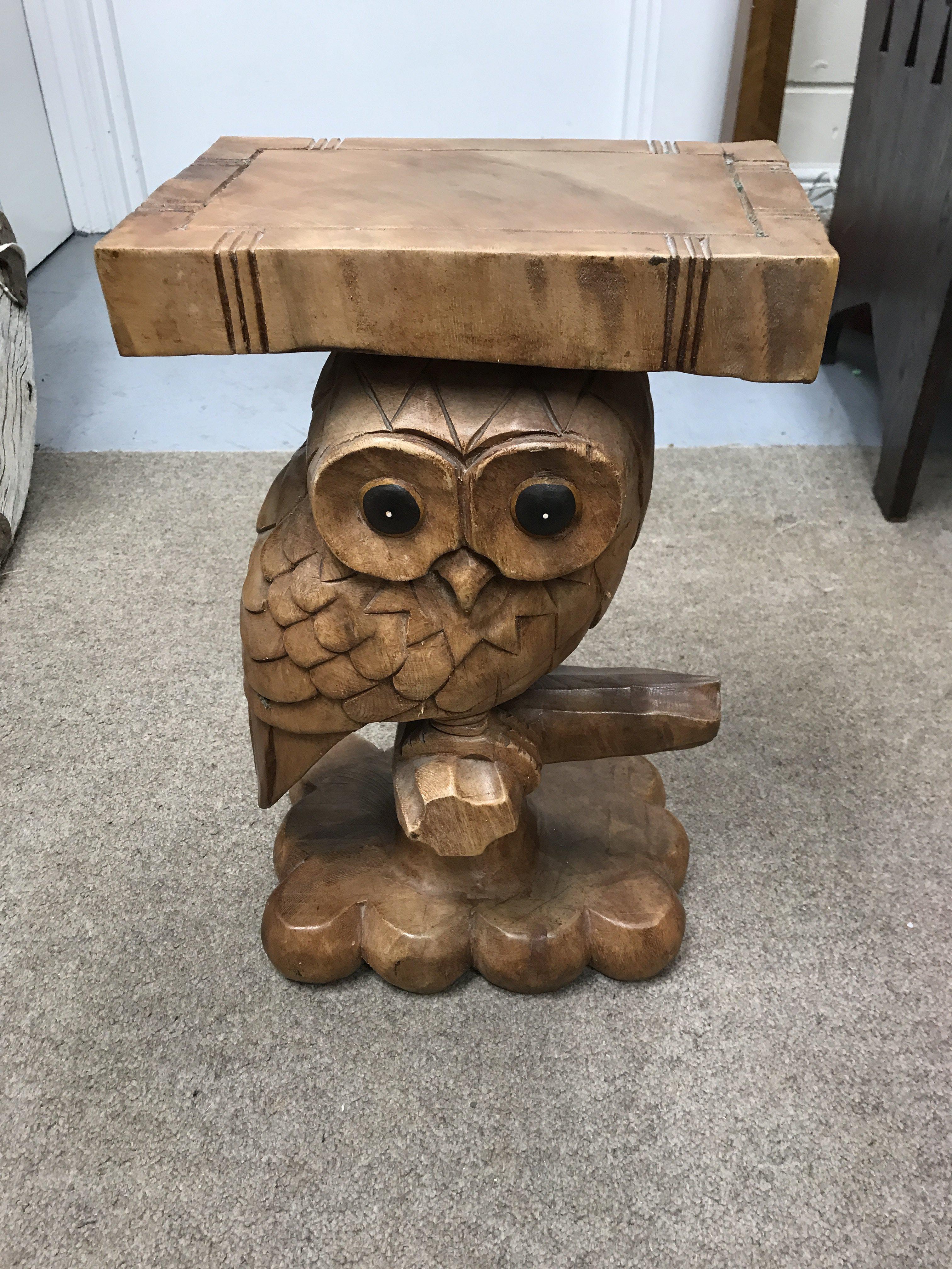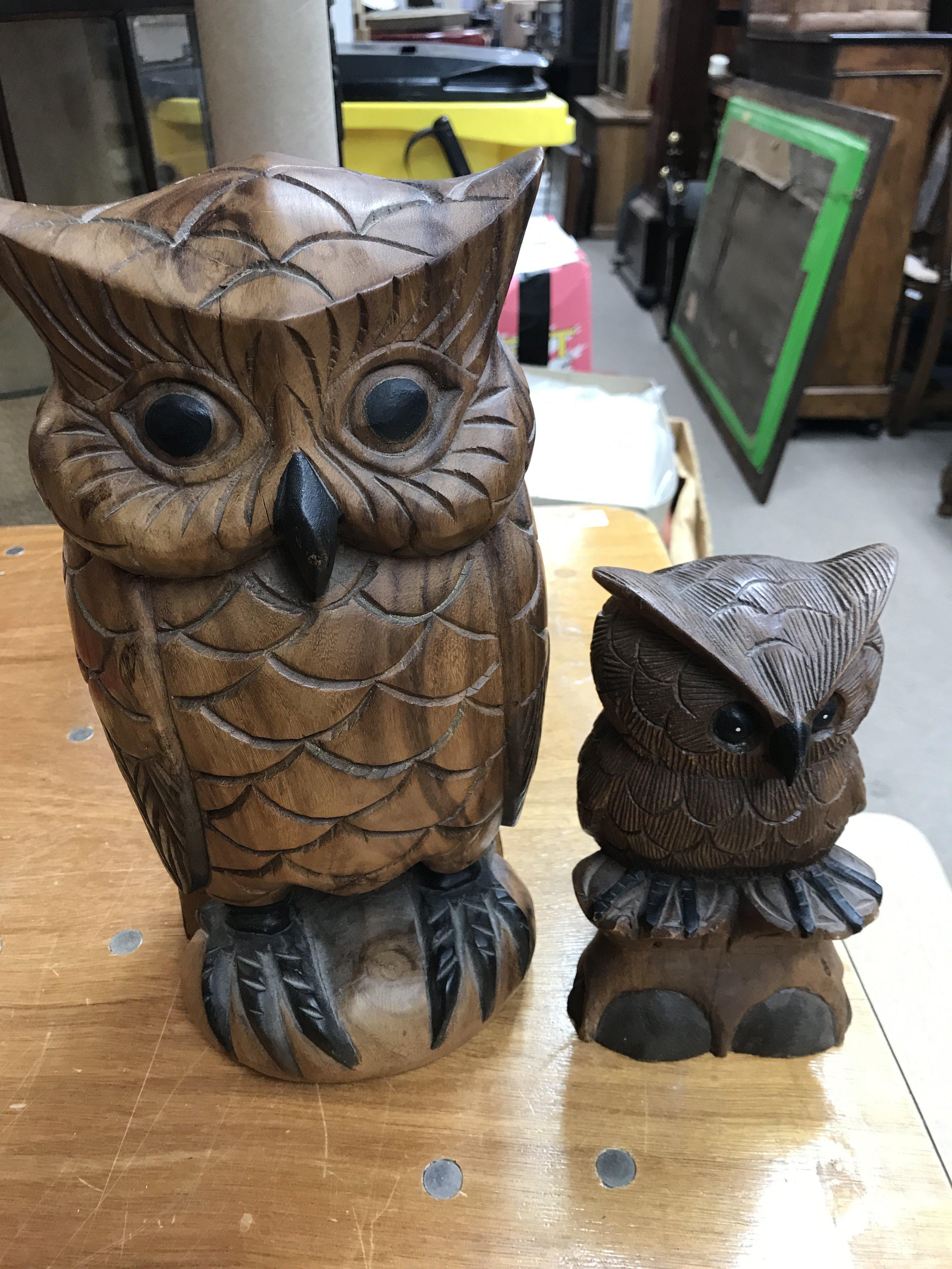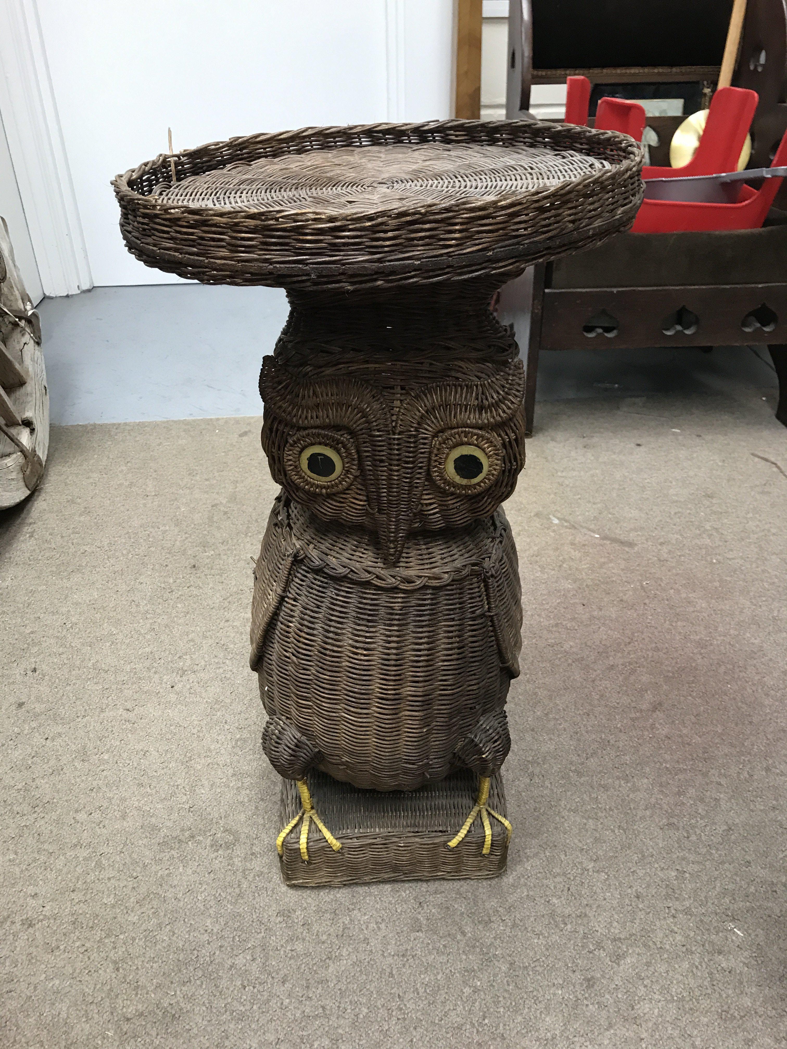 A collection of carved and wicker owl furniture.(no reserve)