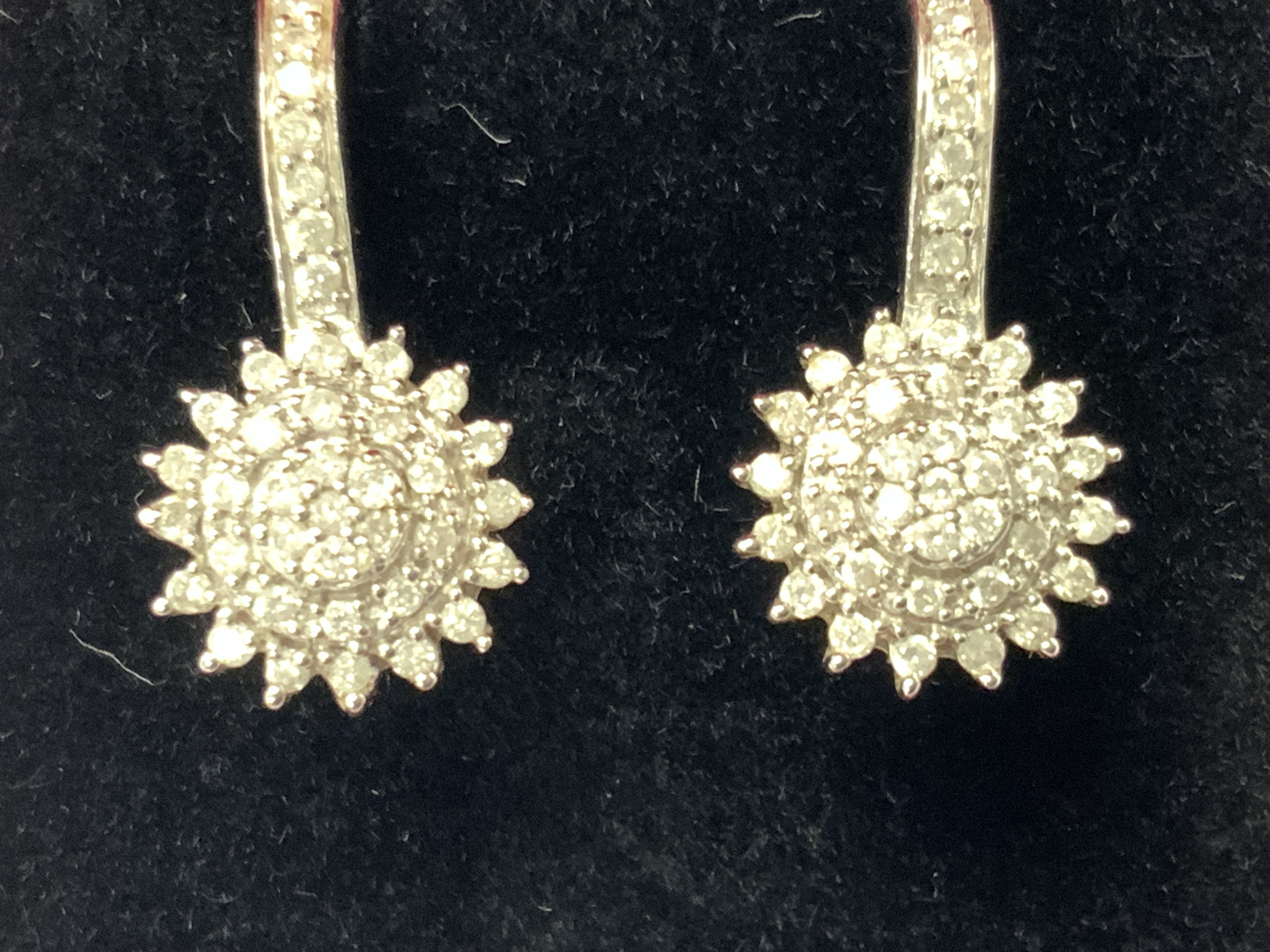 A pair of 9ct white gold diamond earrings. Postage category A.