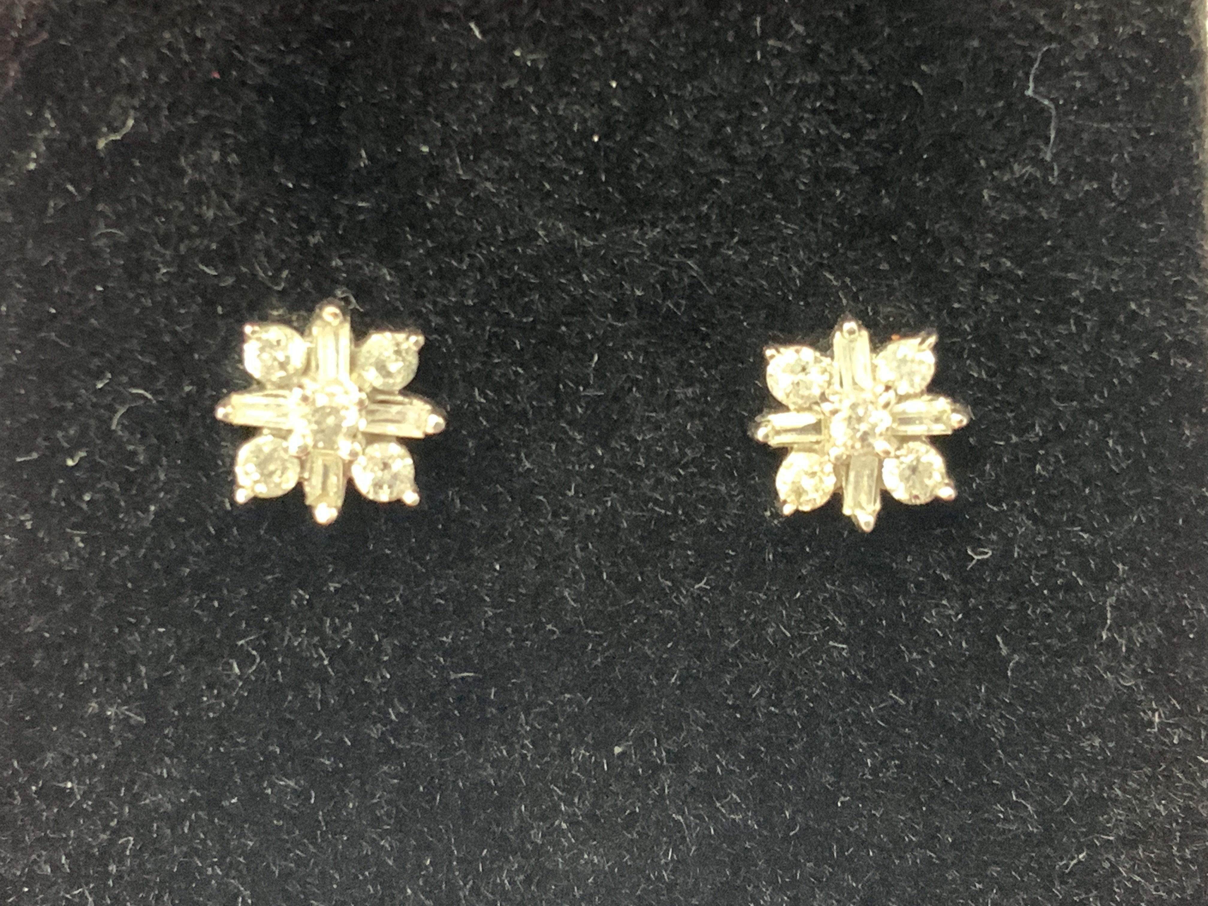 A pair of 9ct white gold diamond earrings. Postage category A.