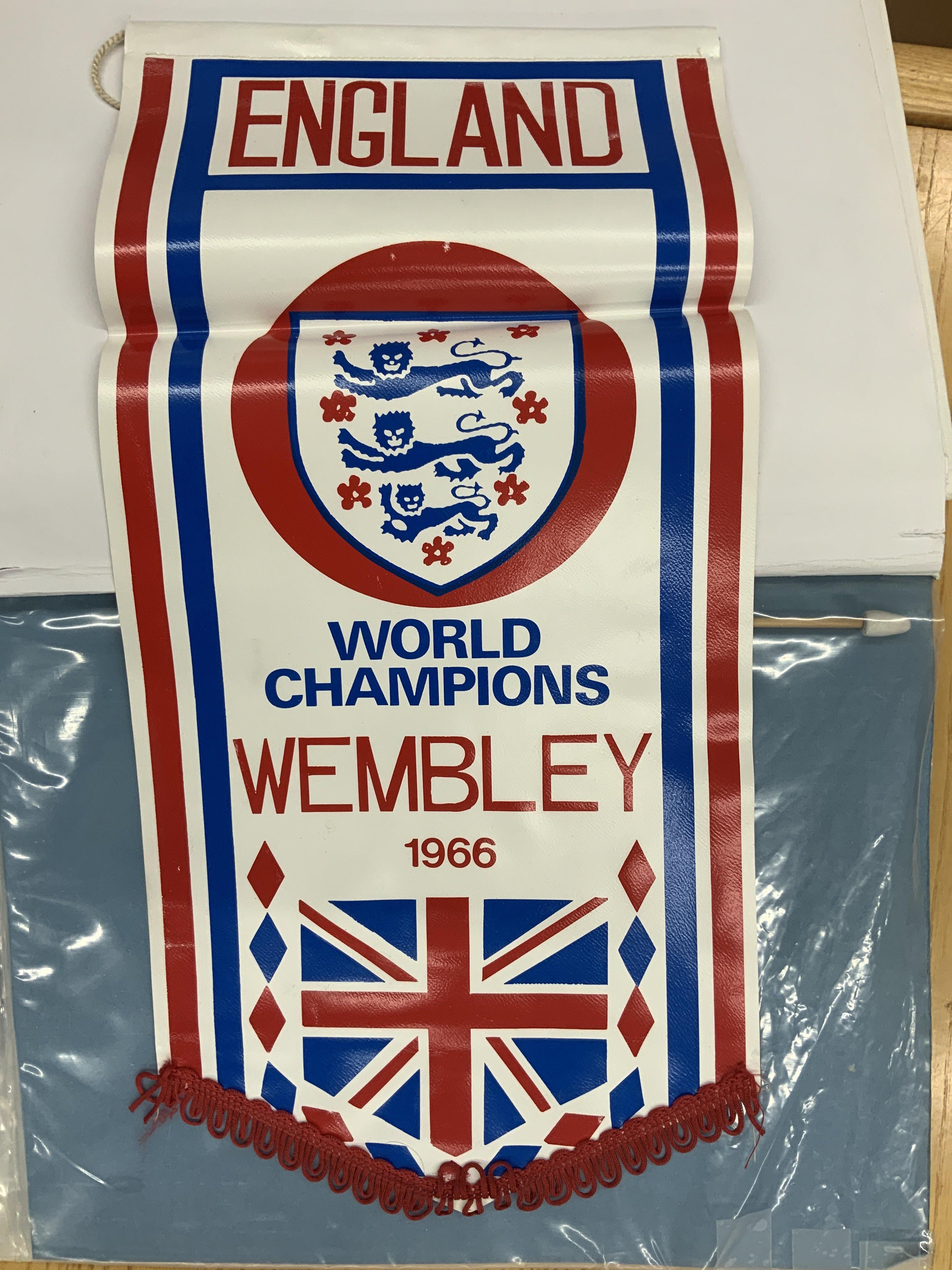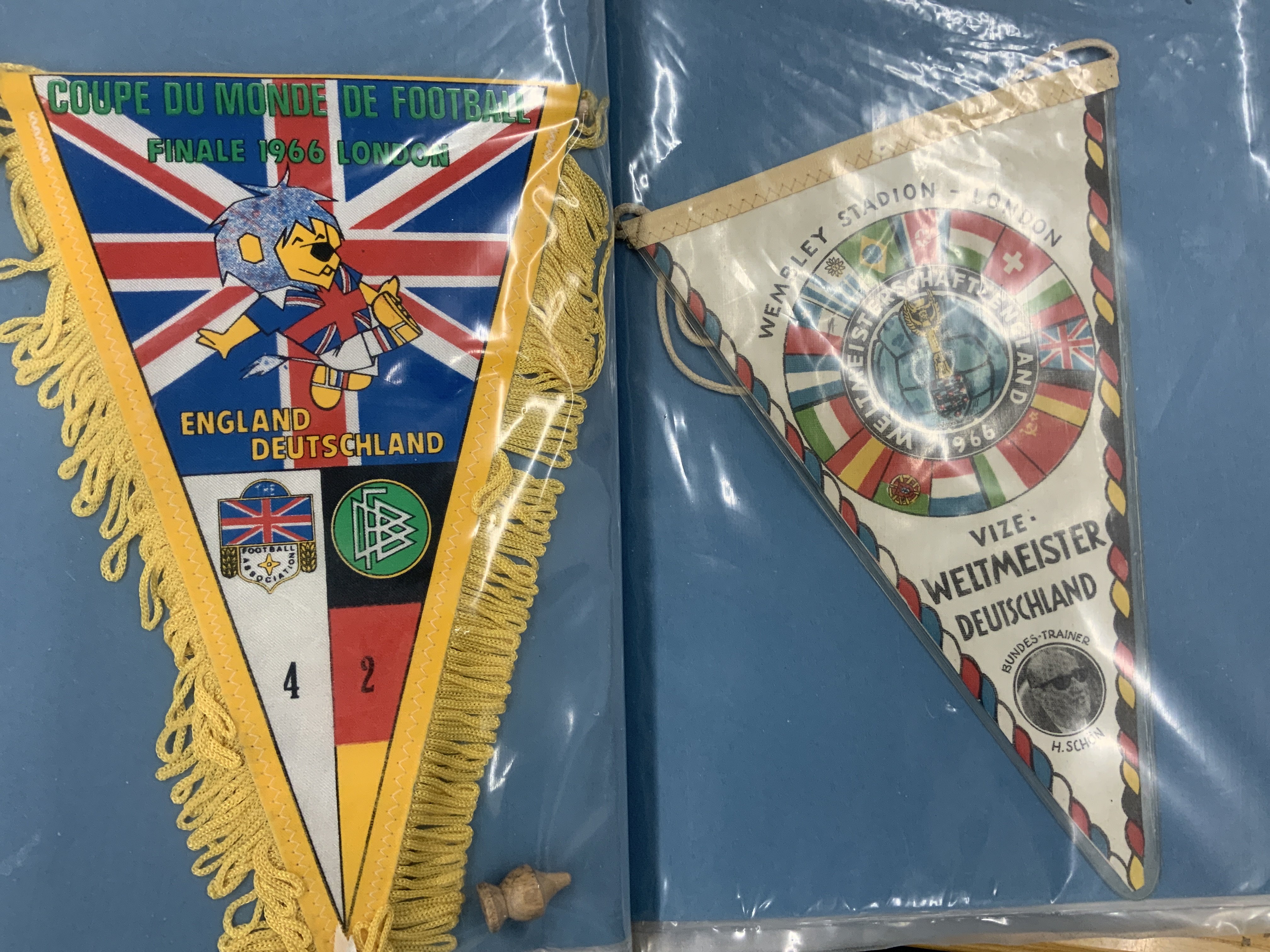 1966 World Cup Football Pennants: All look original in this great collection neatly presented in collectors folder. All different including two German pennants. (10)