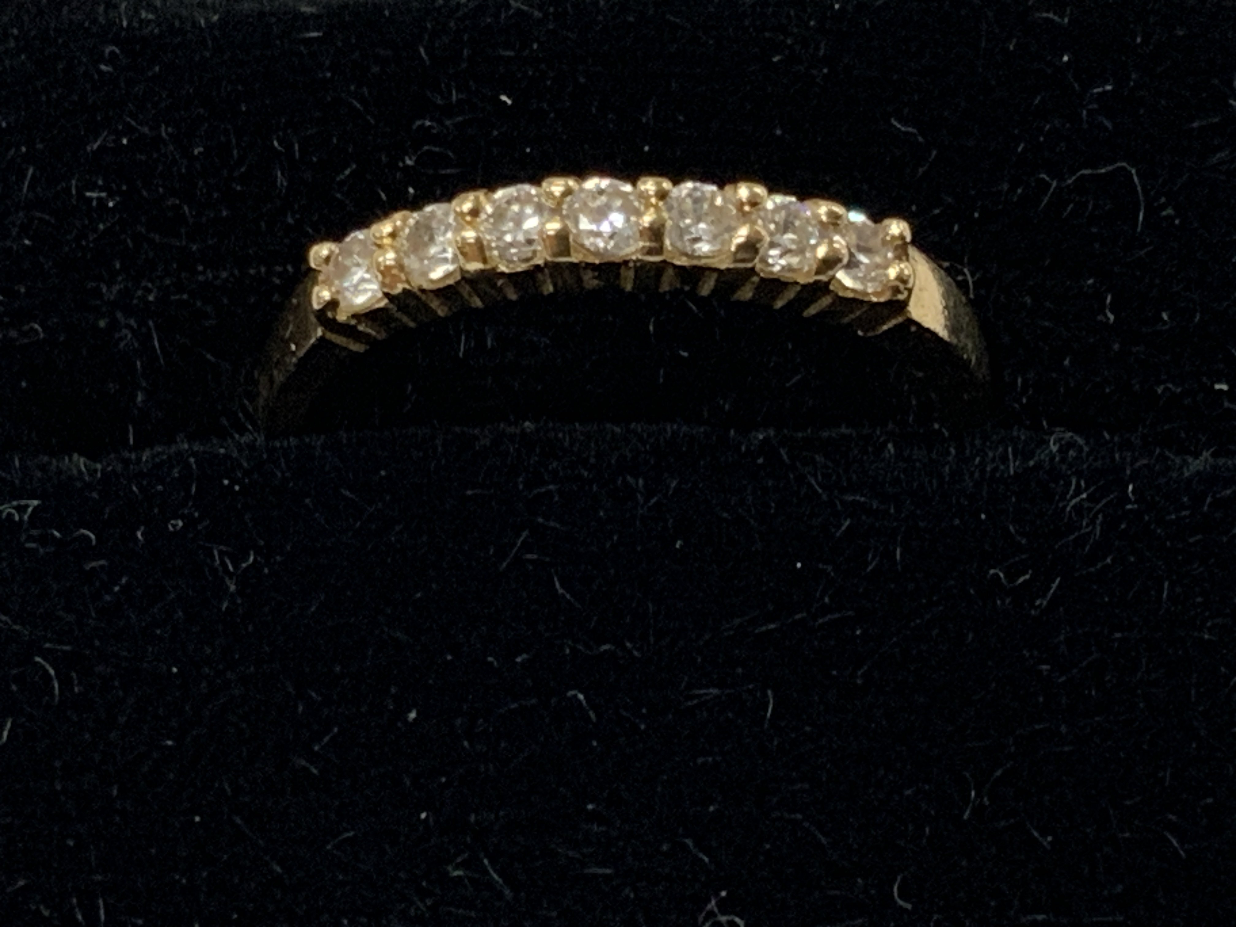 A 14ct gold half maternity ring set with CZ stones. Approximately L/M. Postage category A.