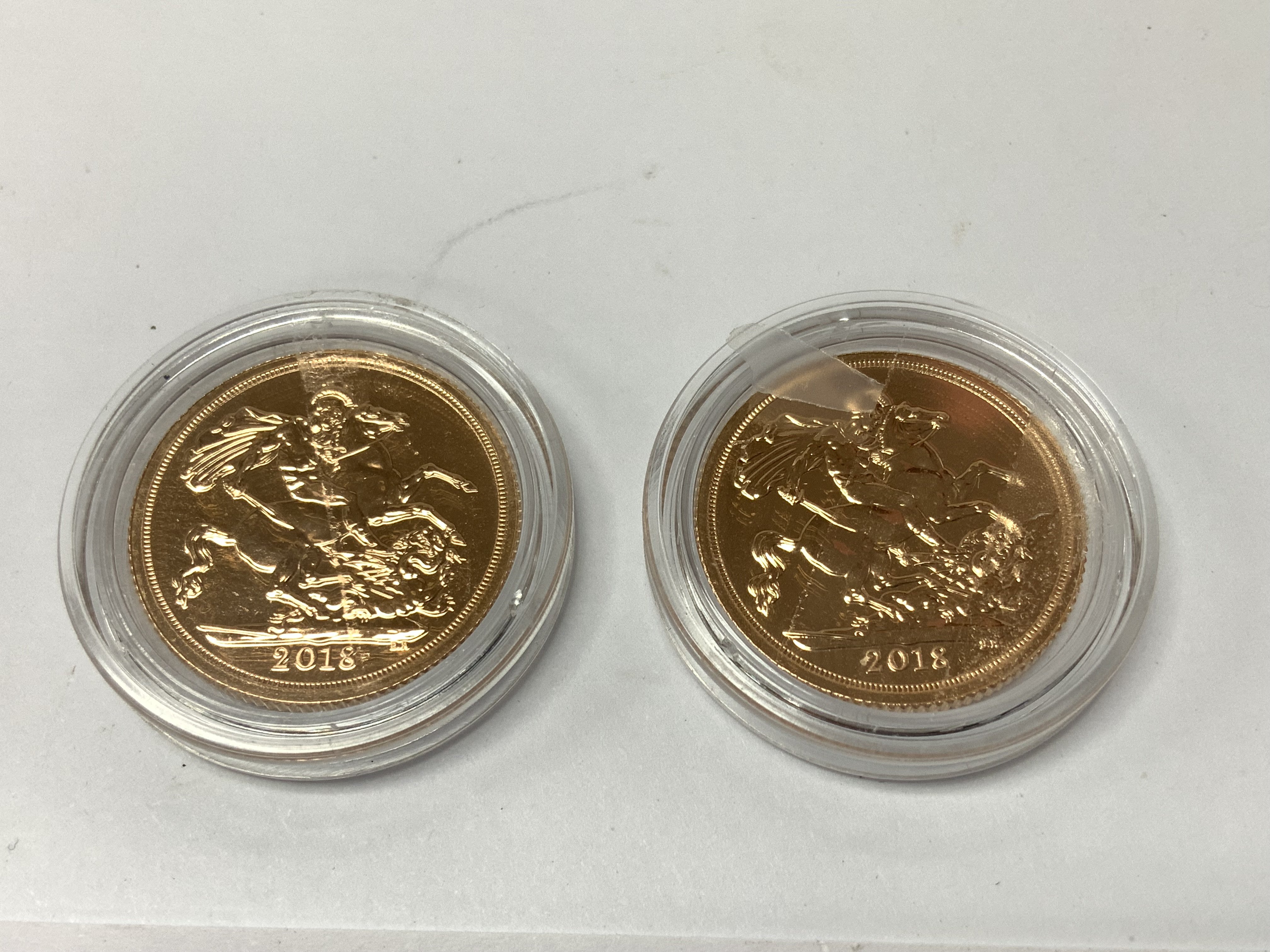 2018 uncirculated Queen Elizabeth II full sovereigns. Postage category A.