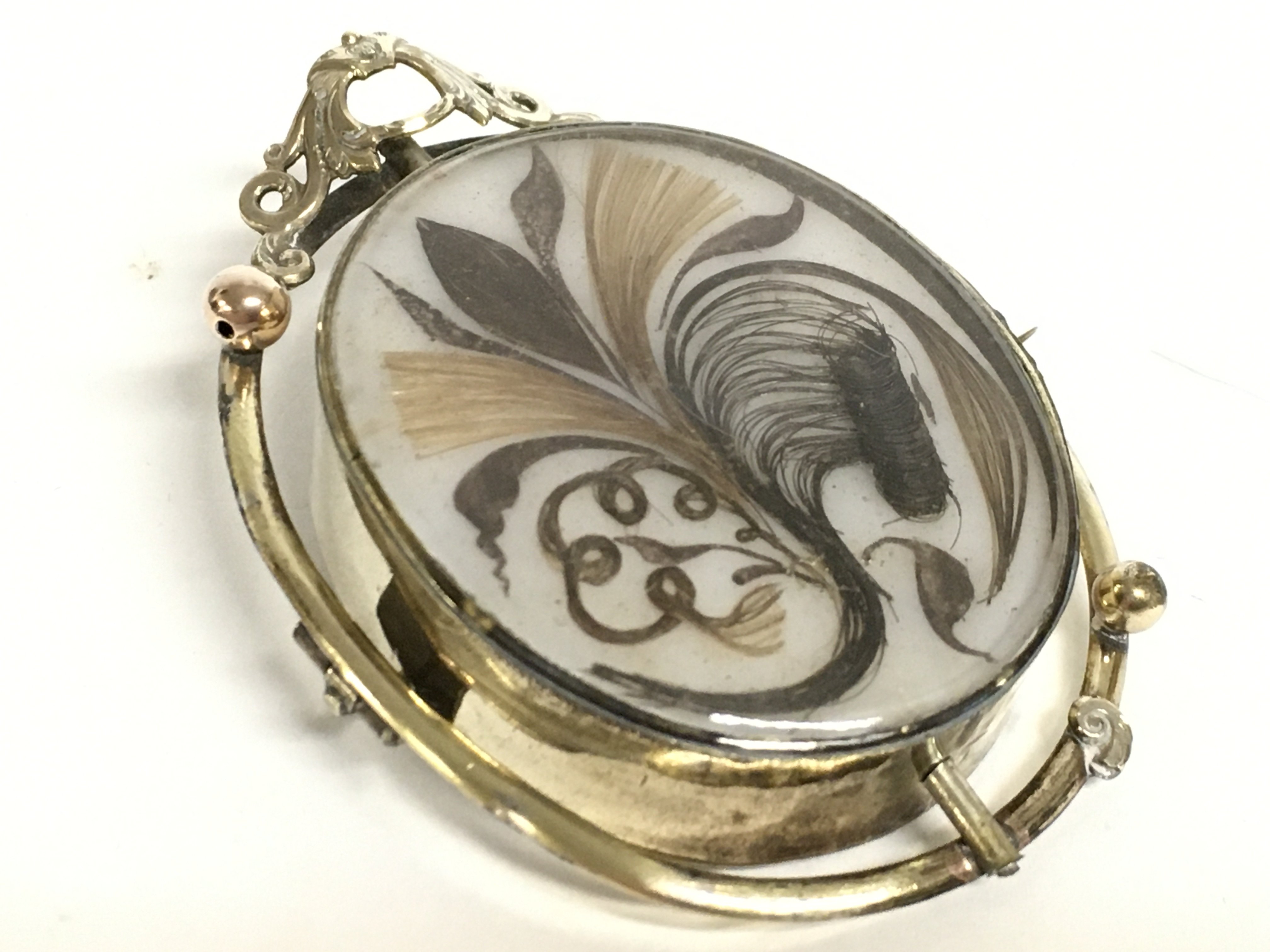 A Victorian swivel mourning brooch with hair design. This lot cannot be posted