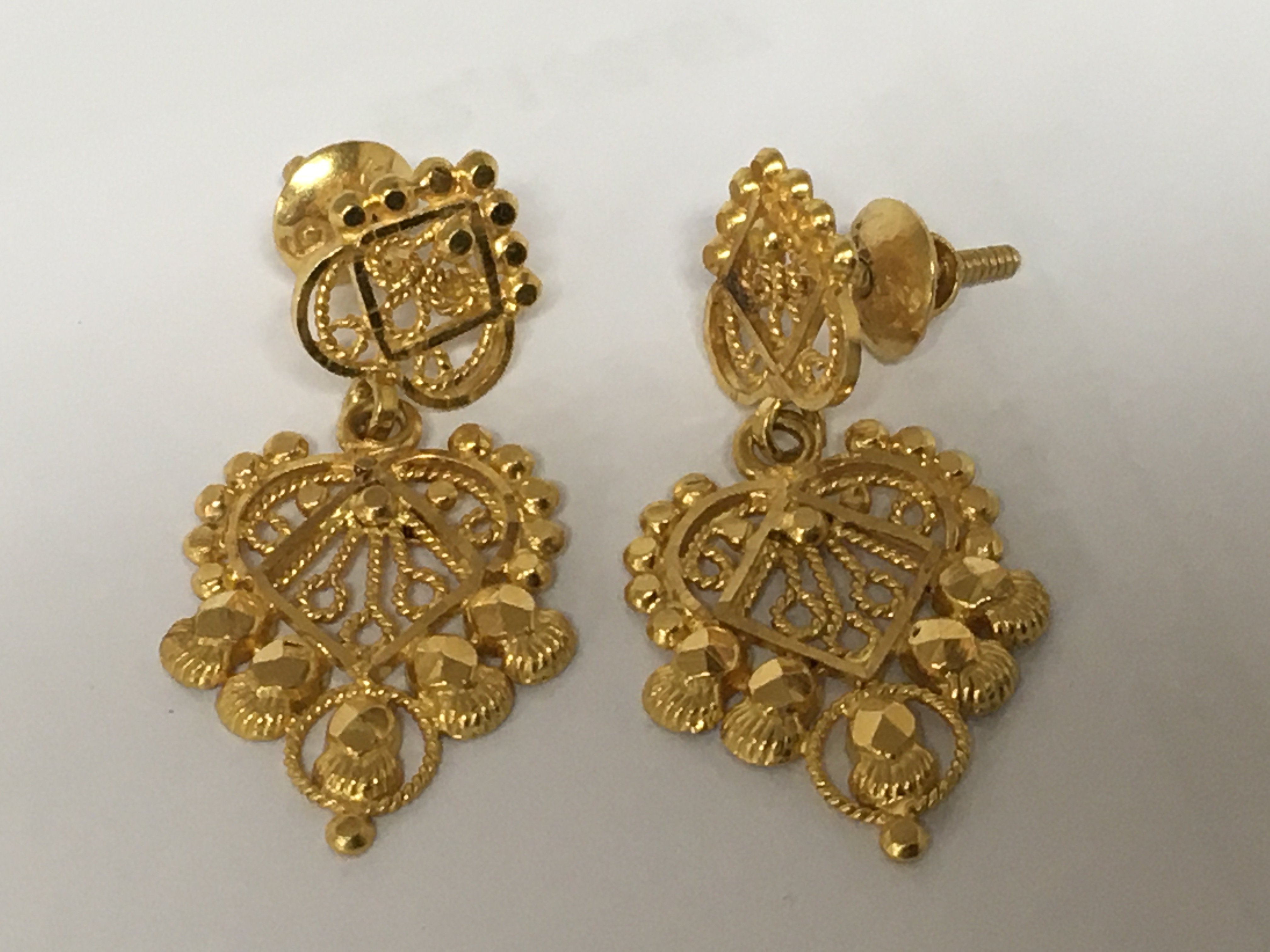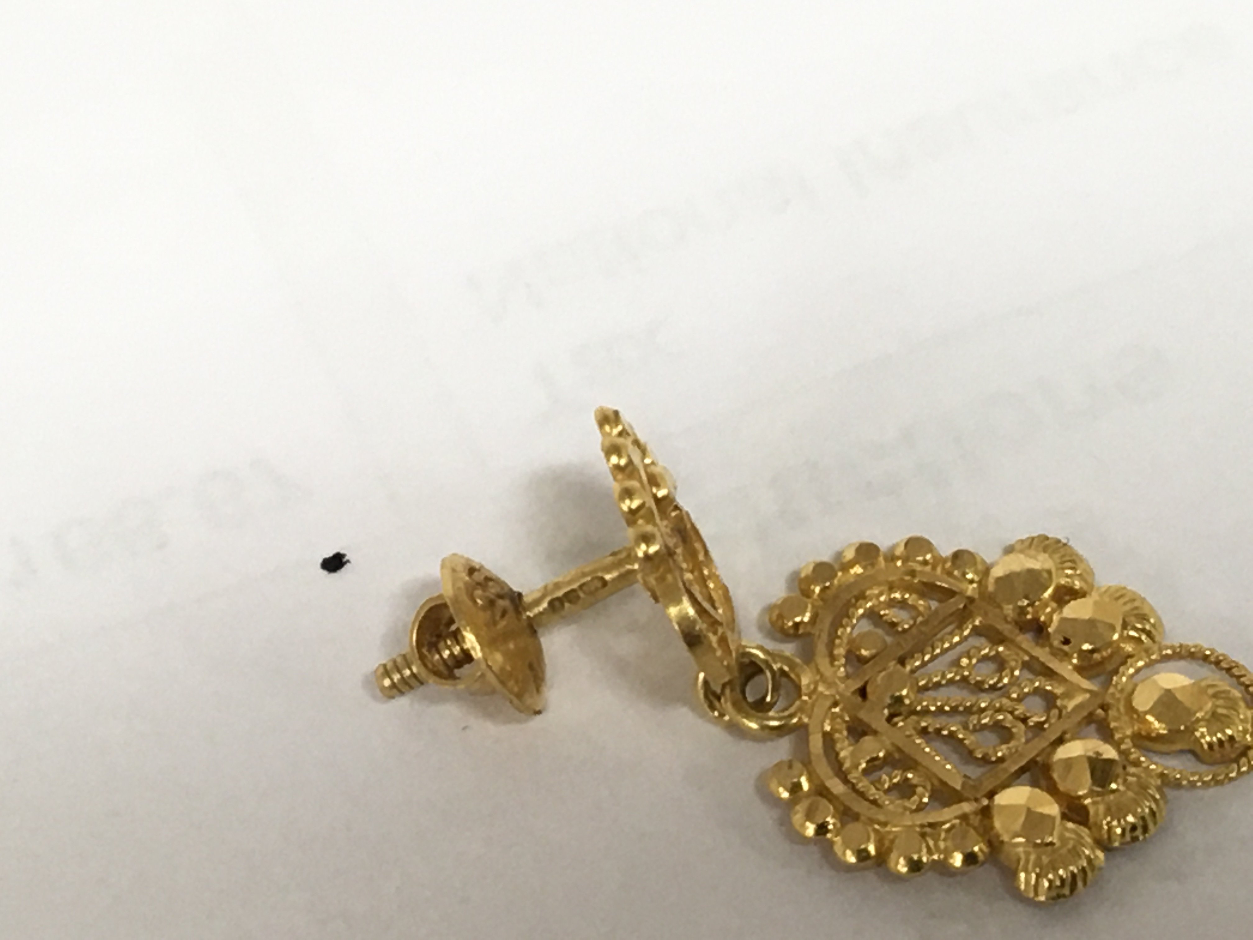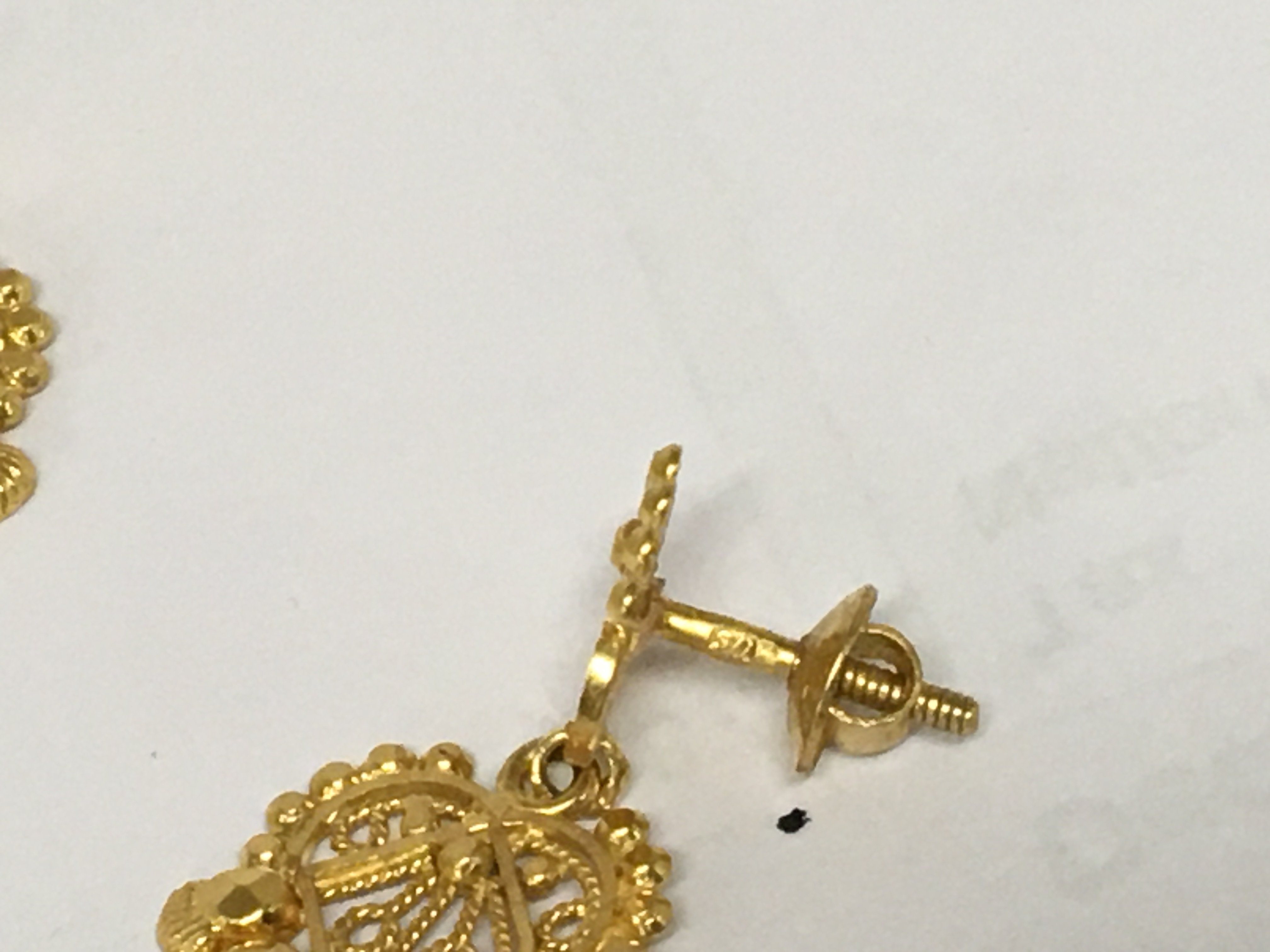 A pair of Indian design high grade 916 gold earrings weight 5.4g