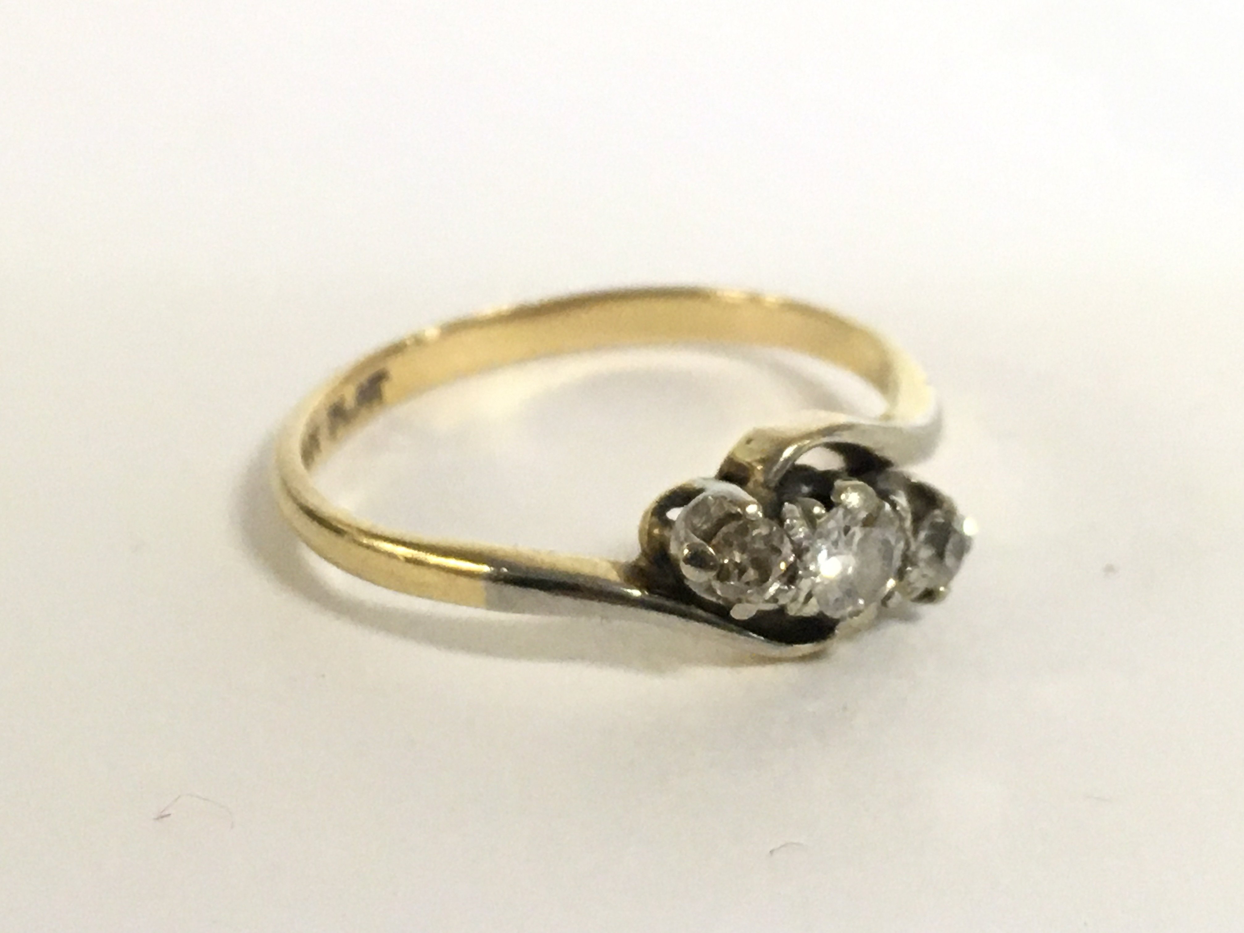 An 18 carat 3 stone platinum and diamond ring. Size M. 2.2g. Postage category A