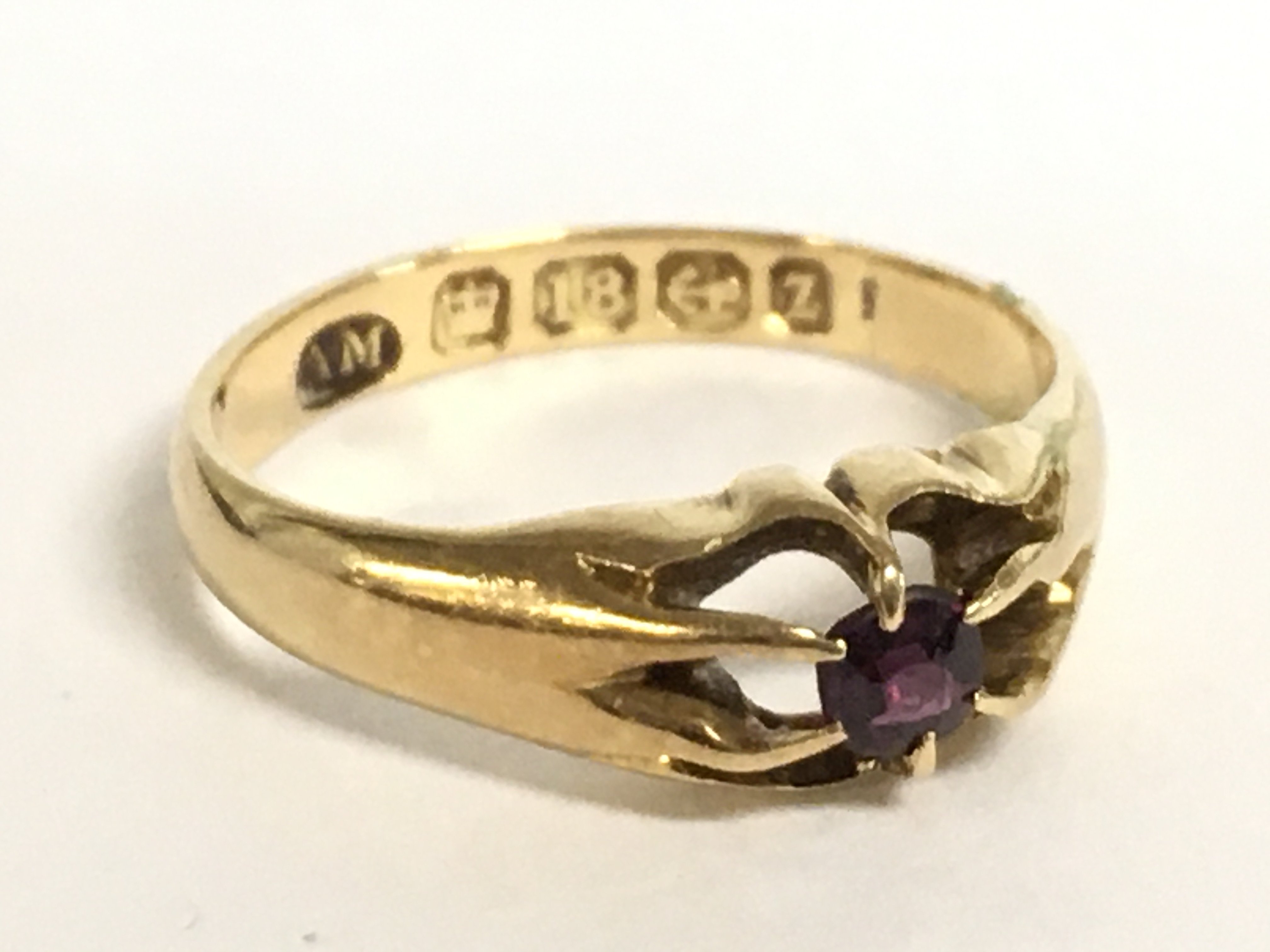An 18 carat gold ring. 2.8g. size J. Postage category A