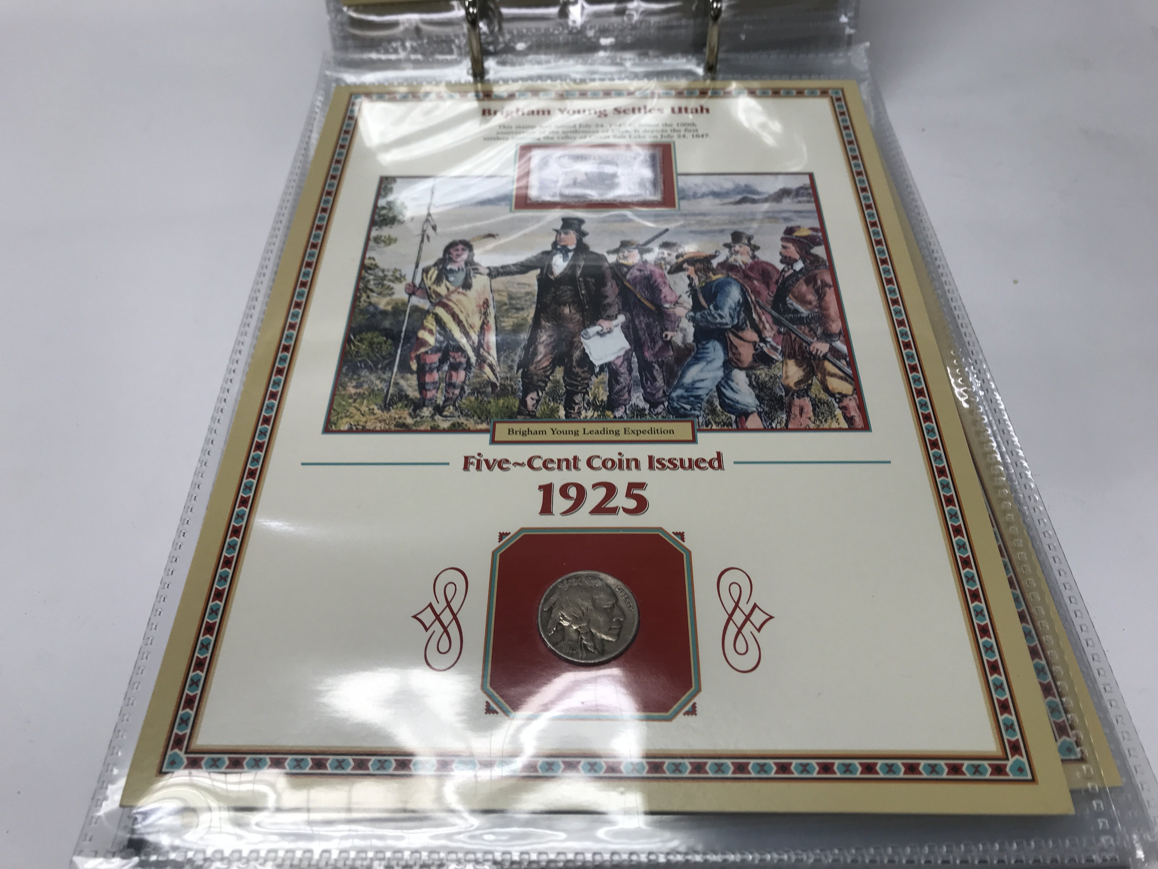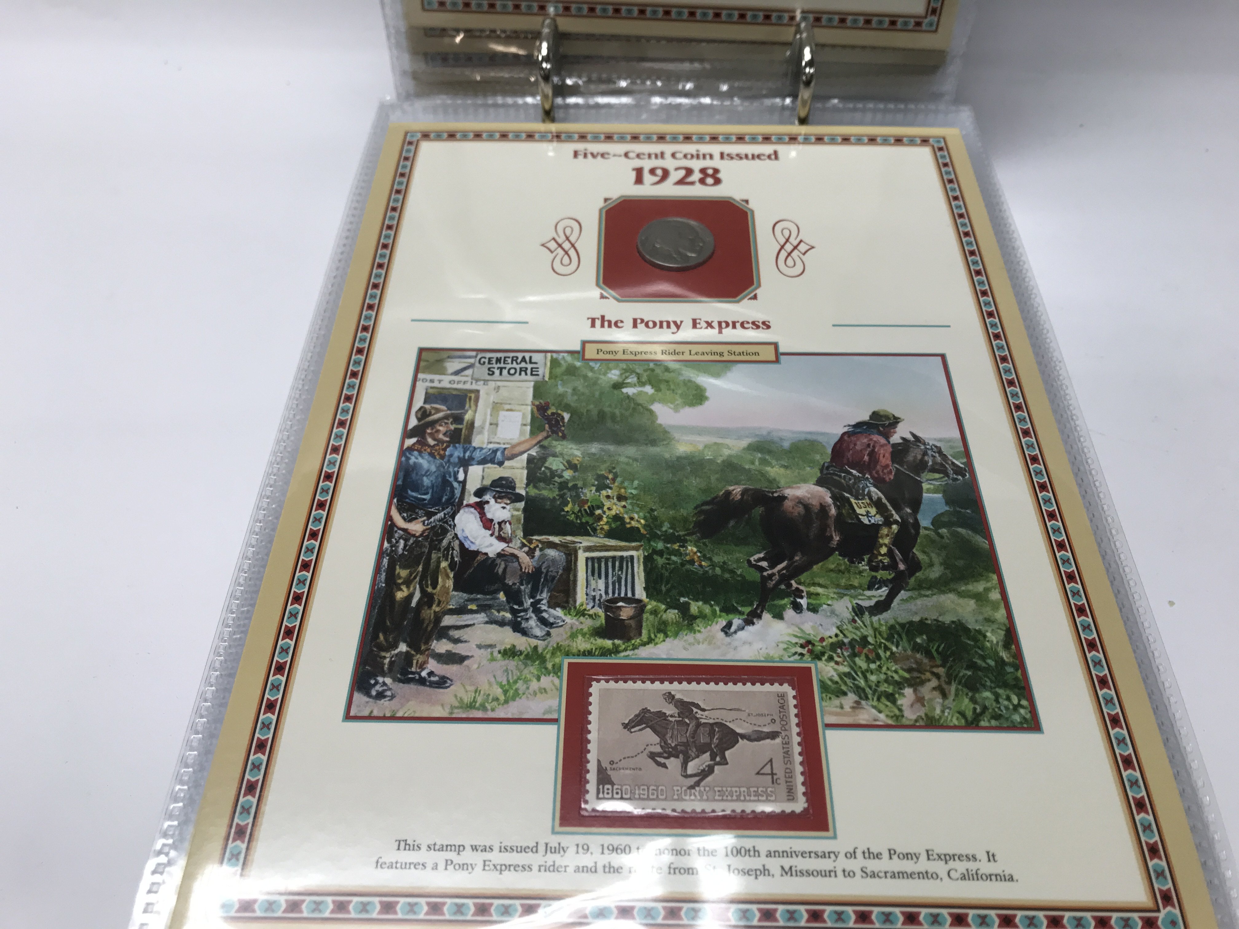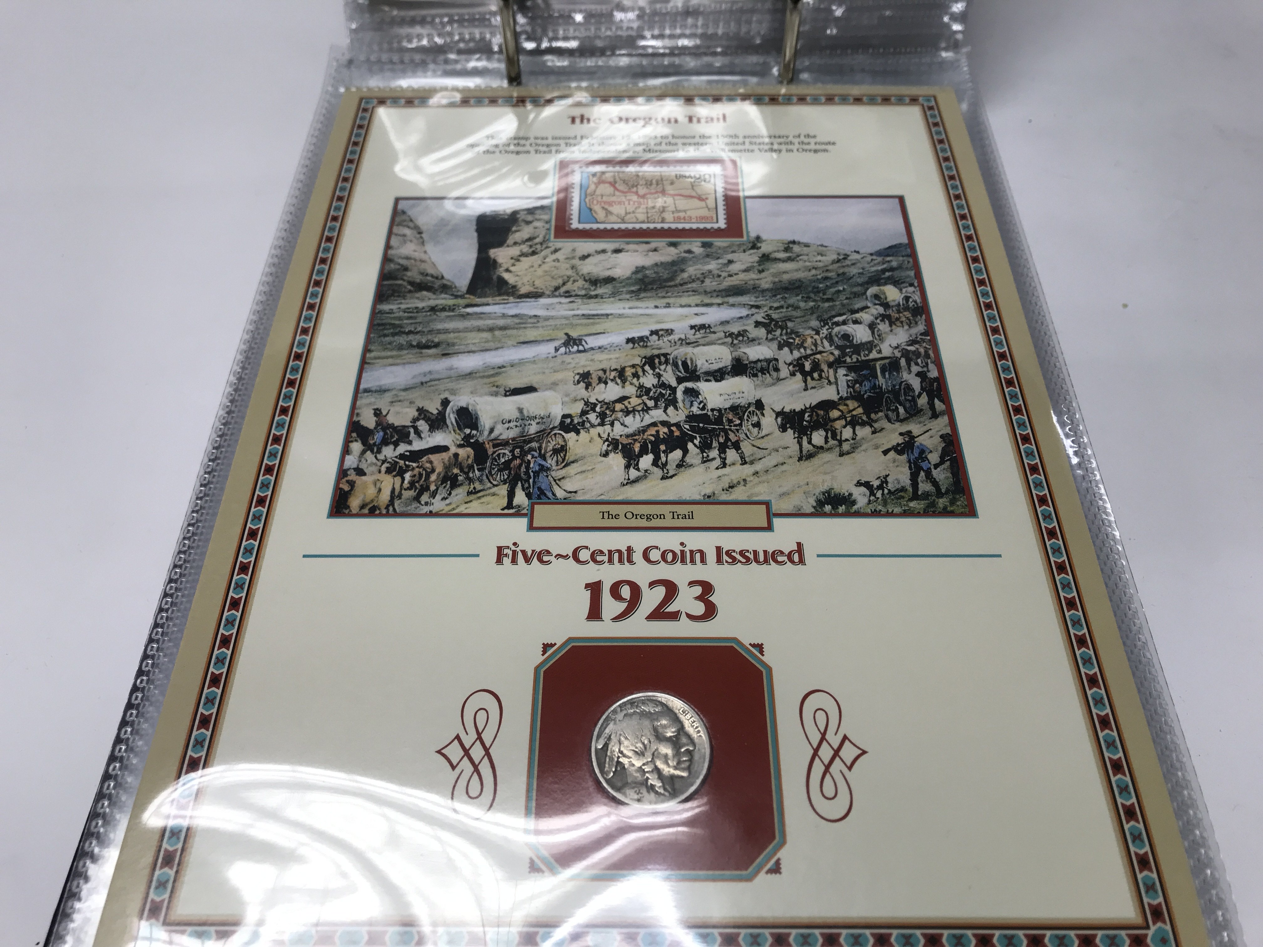 20 years of buffalo nickels combined with US commemorative stamps and artwork honouring the American west.