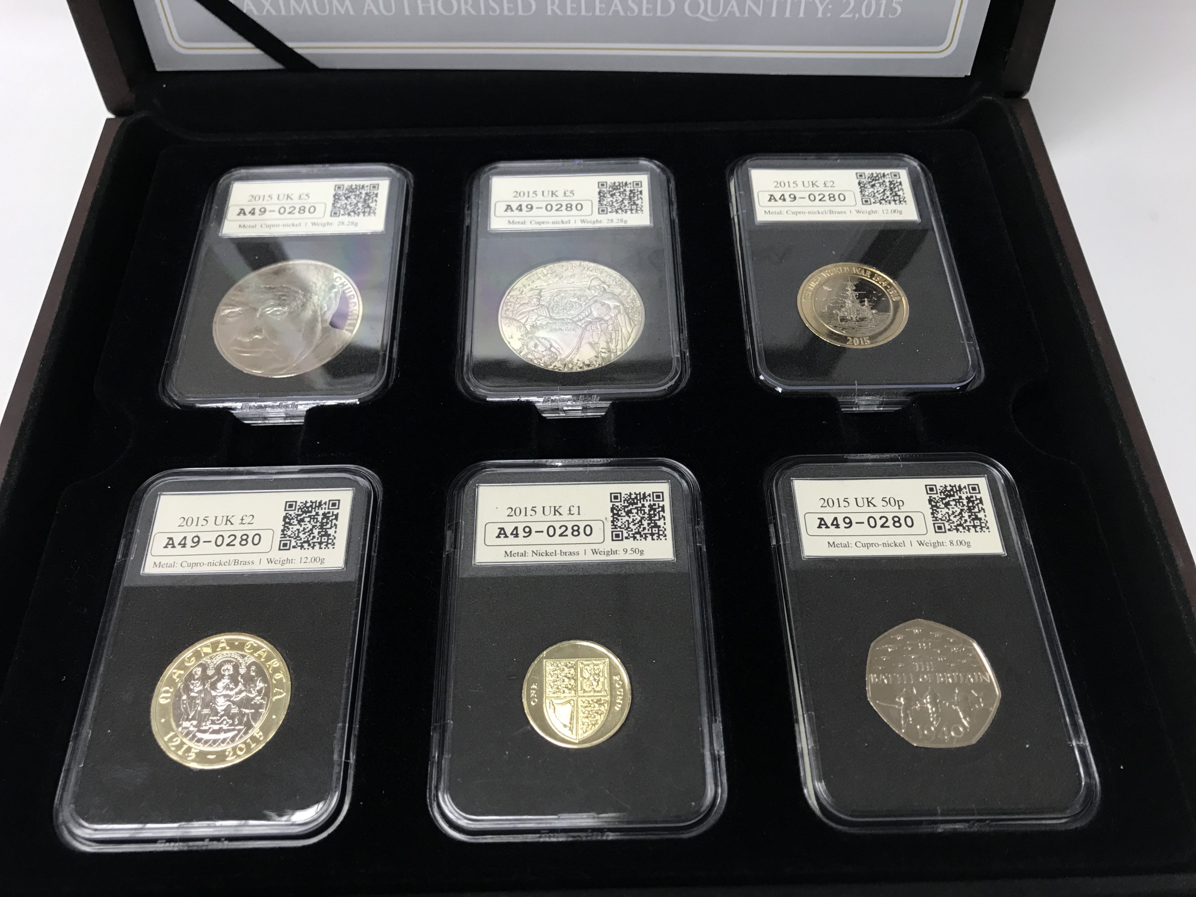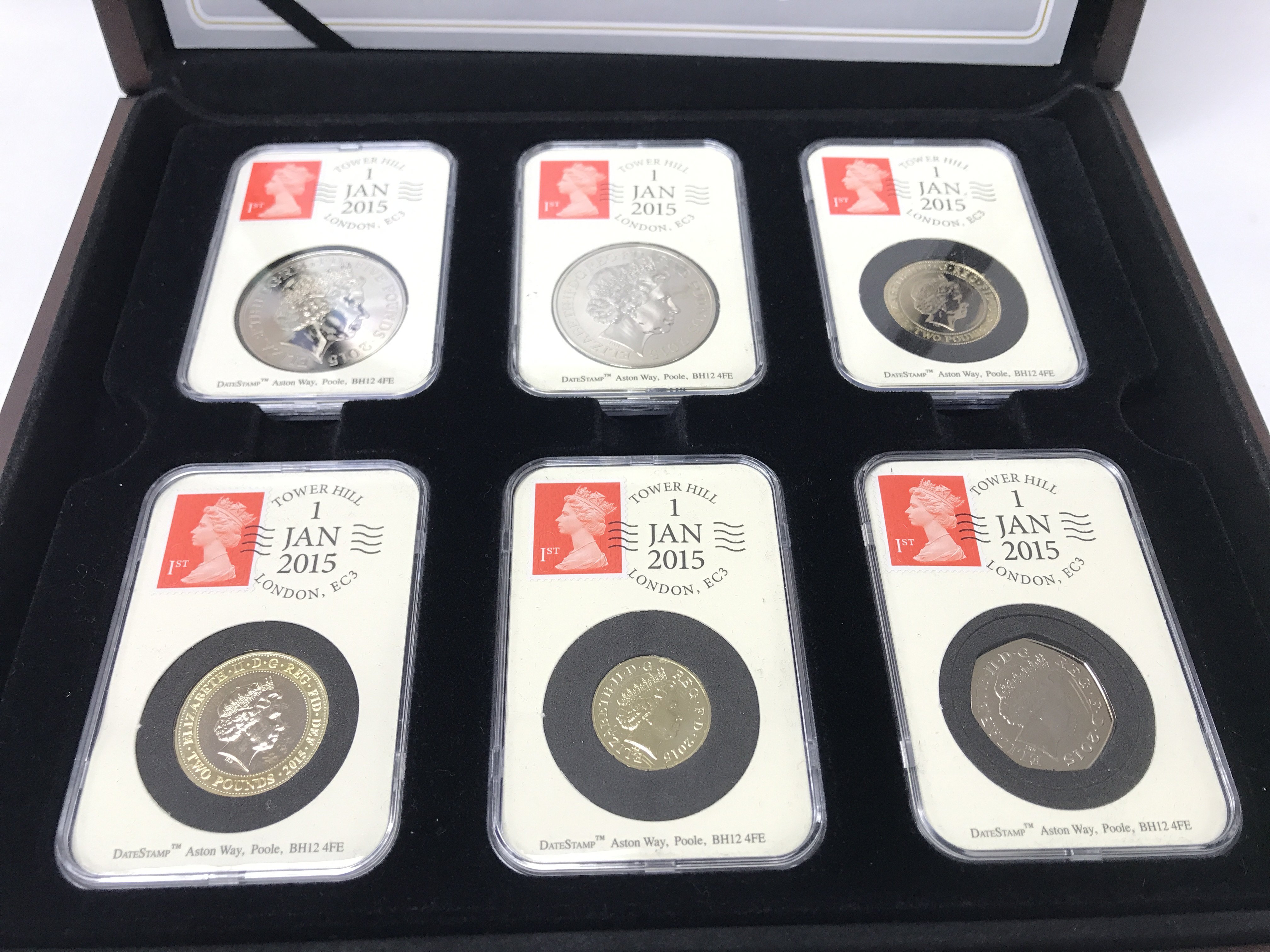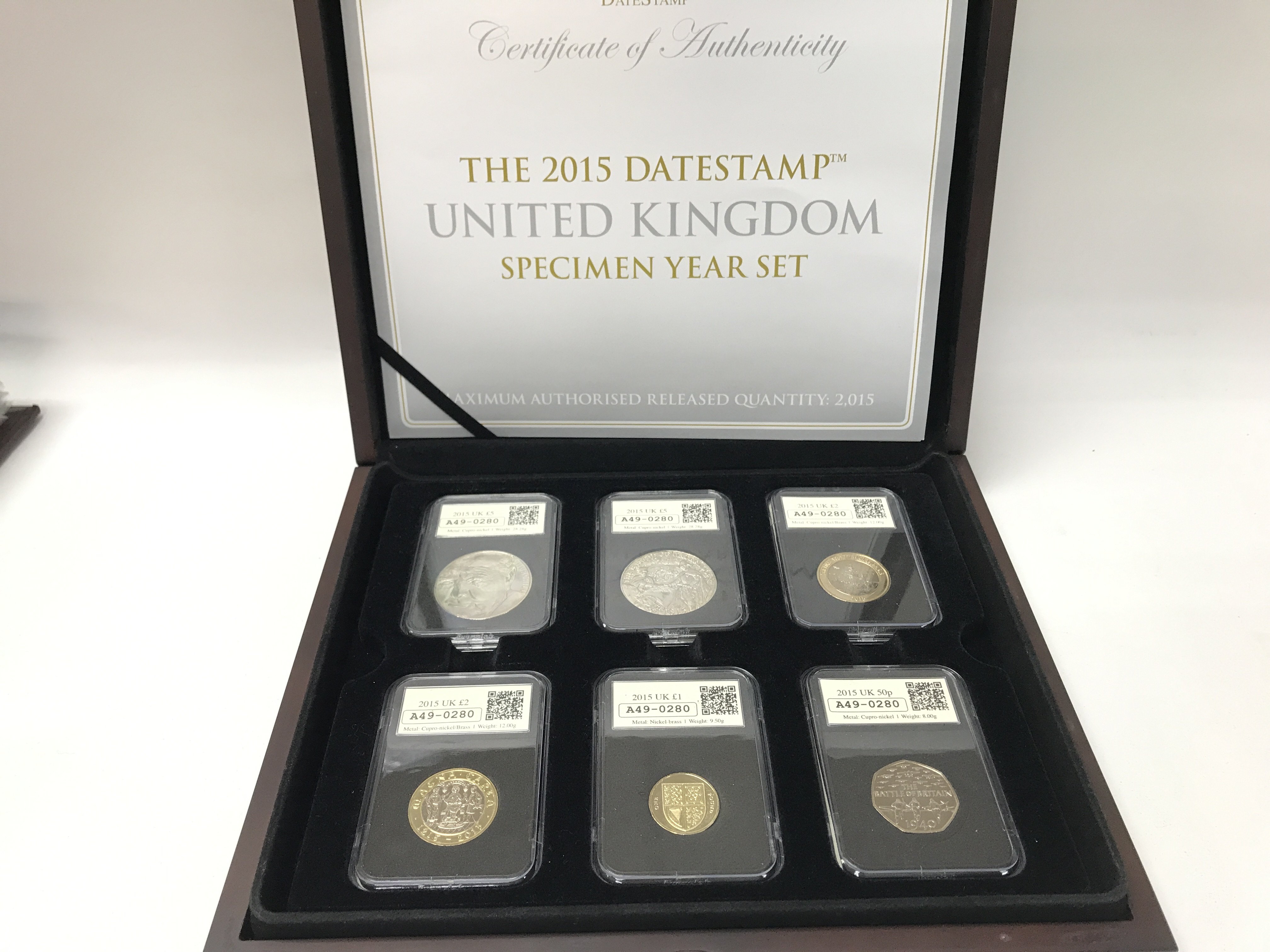 A 2015 date stamp United Kingdom specimen year set in wooden case.