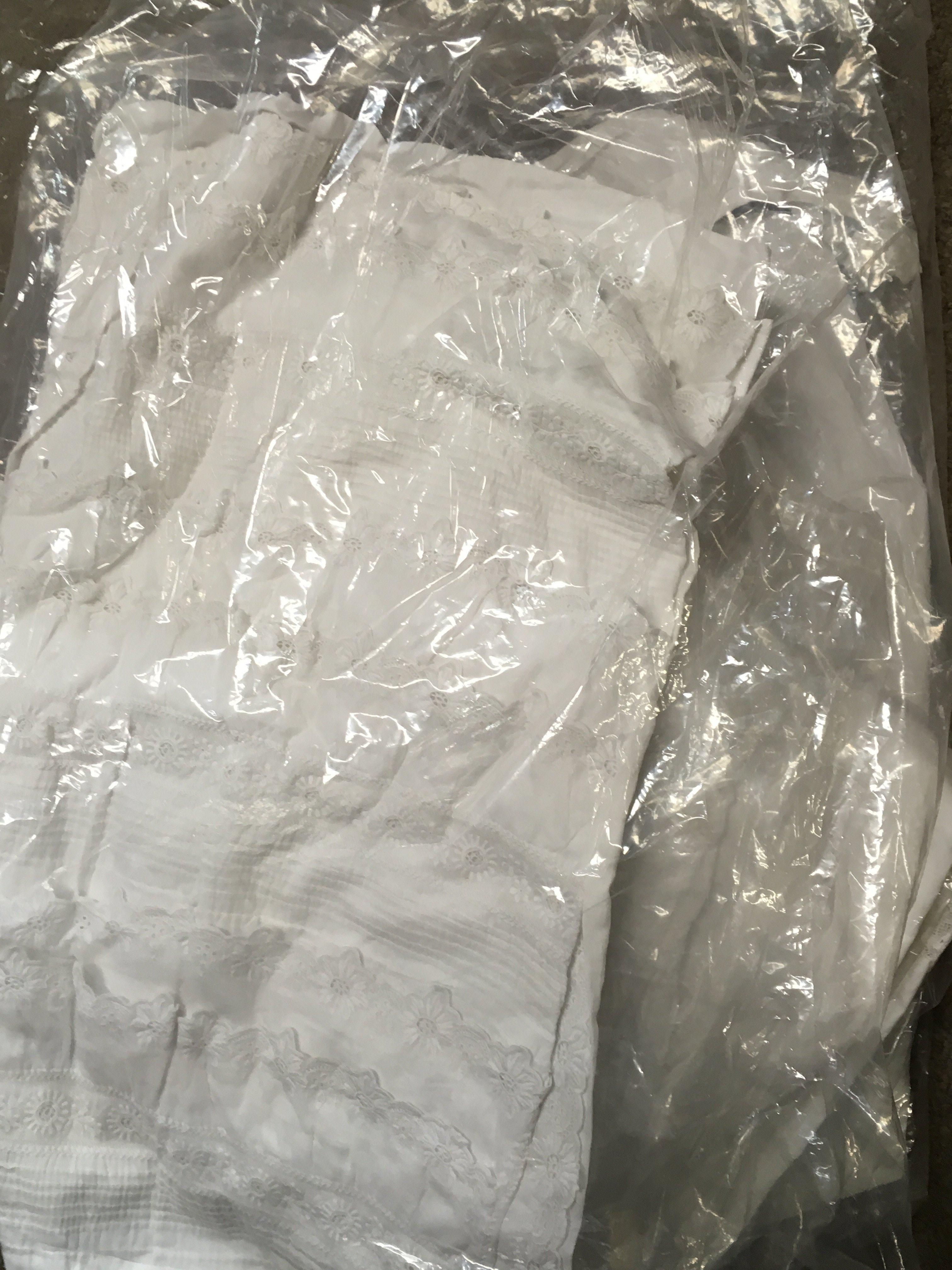 A collection of lace embroidered white late Victorian childrens dresses. Postage category B