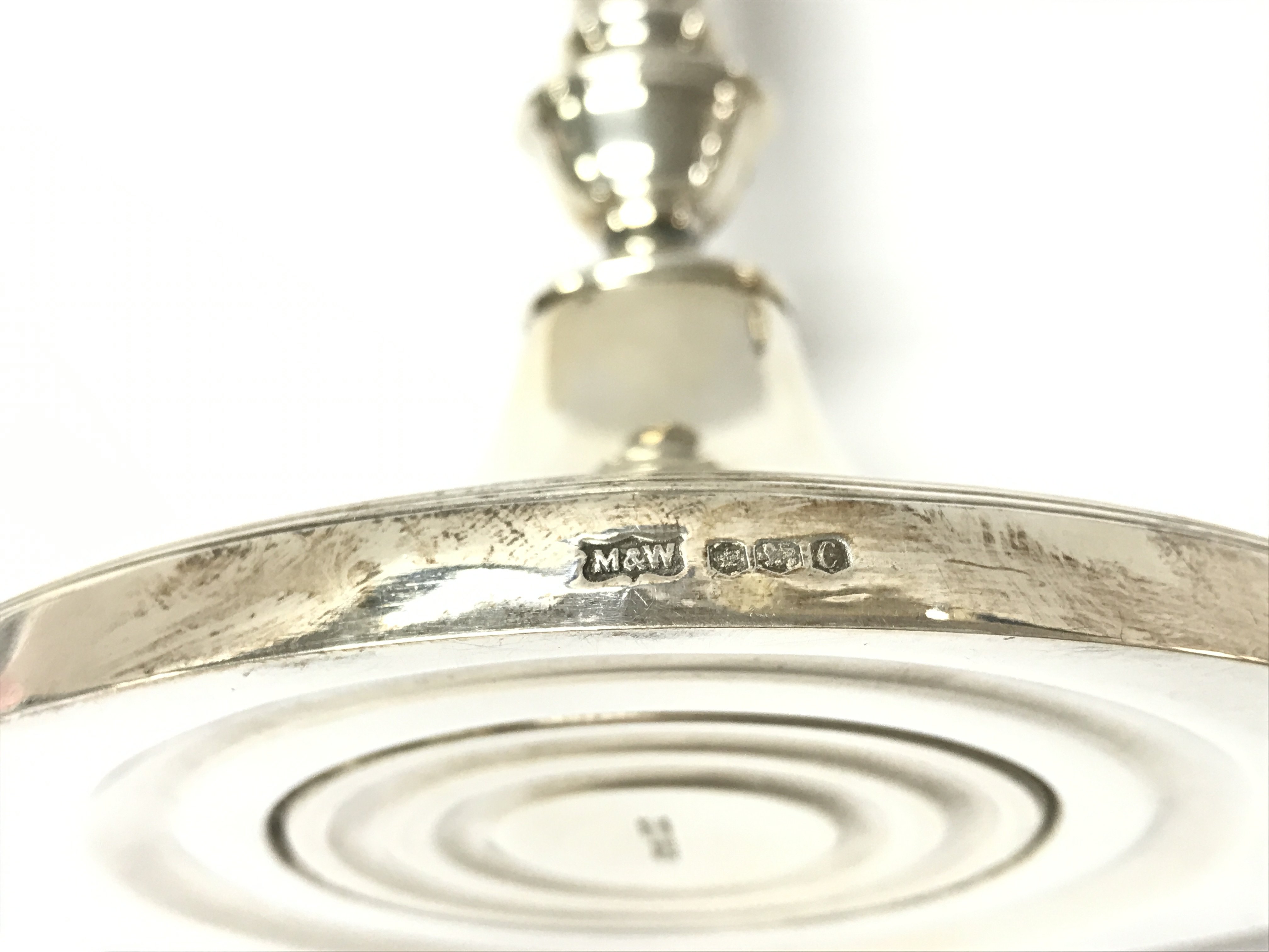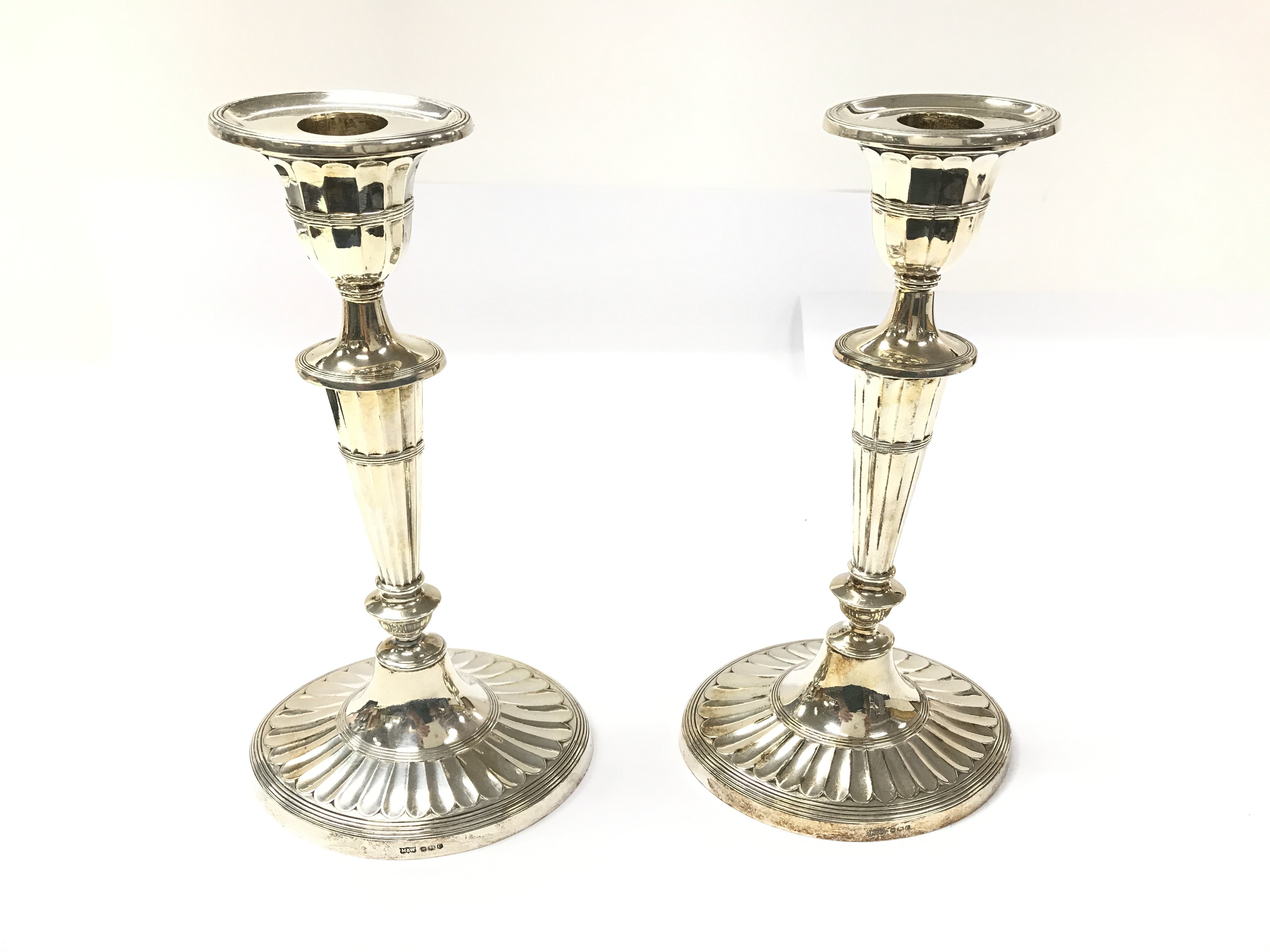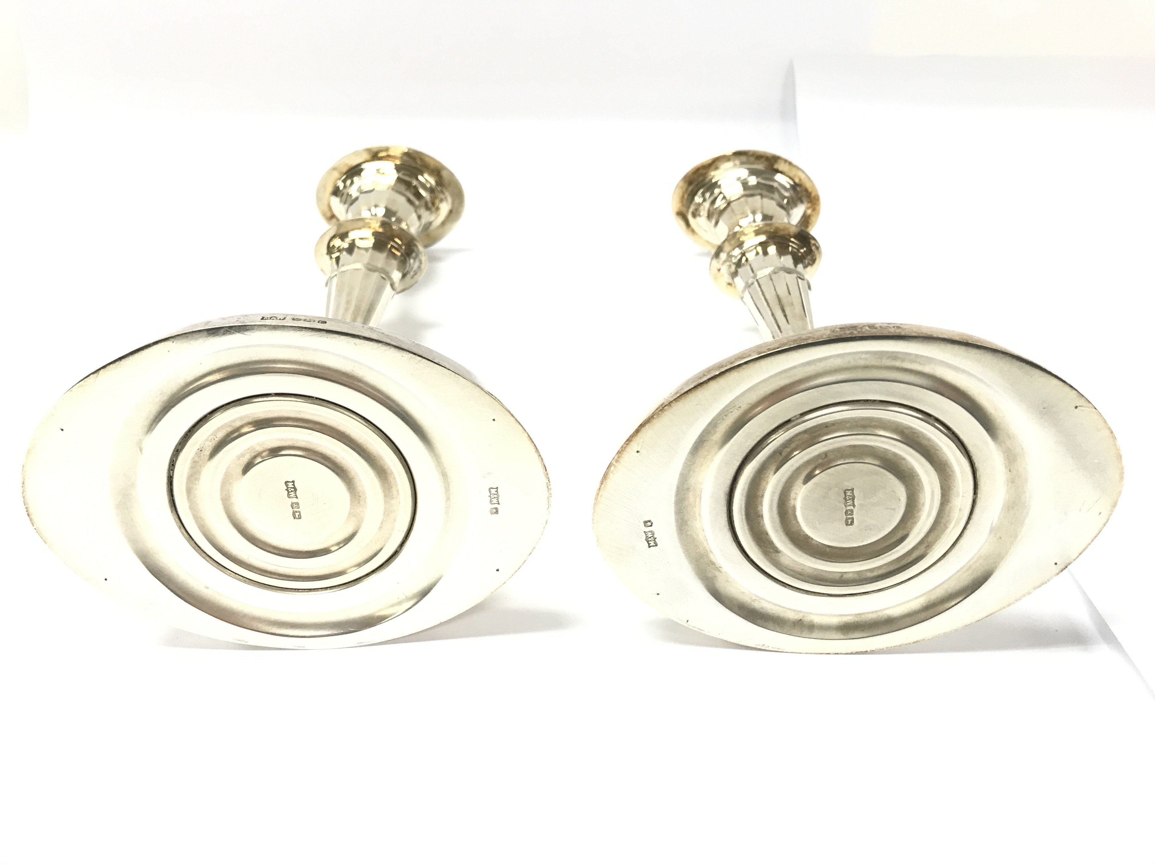 A pair of silver candlesticks by Mappin and Webb. Sheffield hallmarks 1970. 22cm high. Total weight 710g