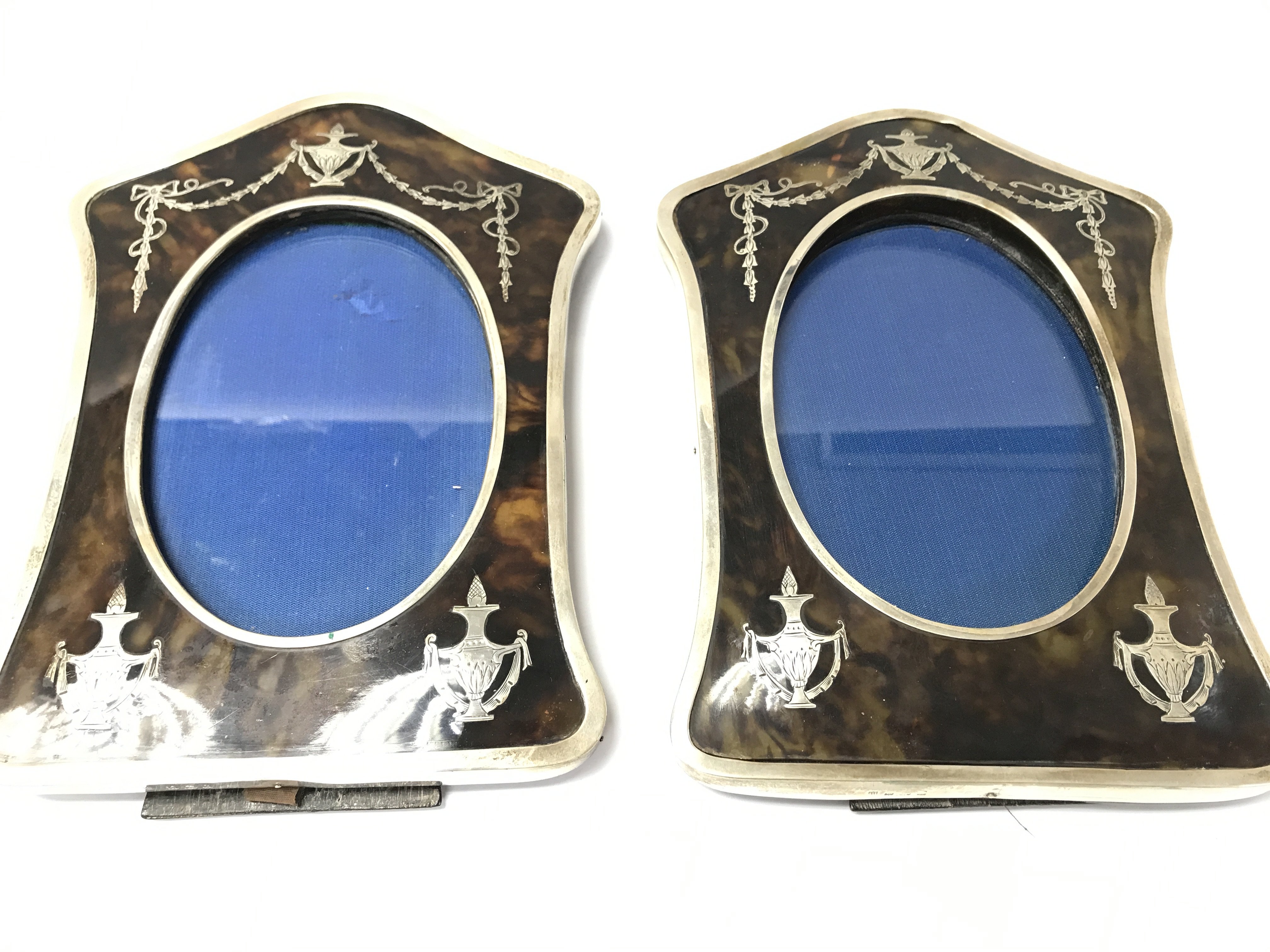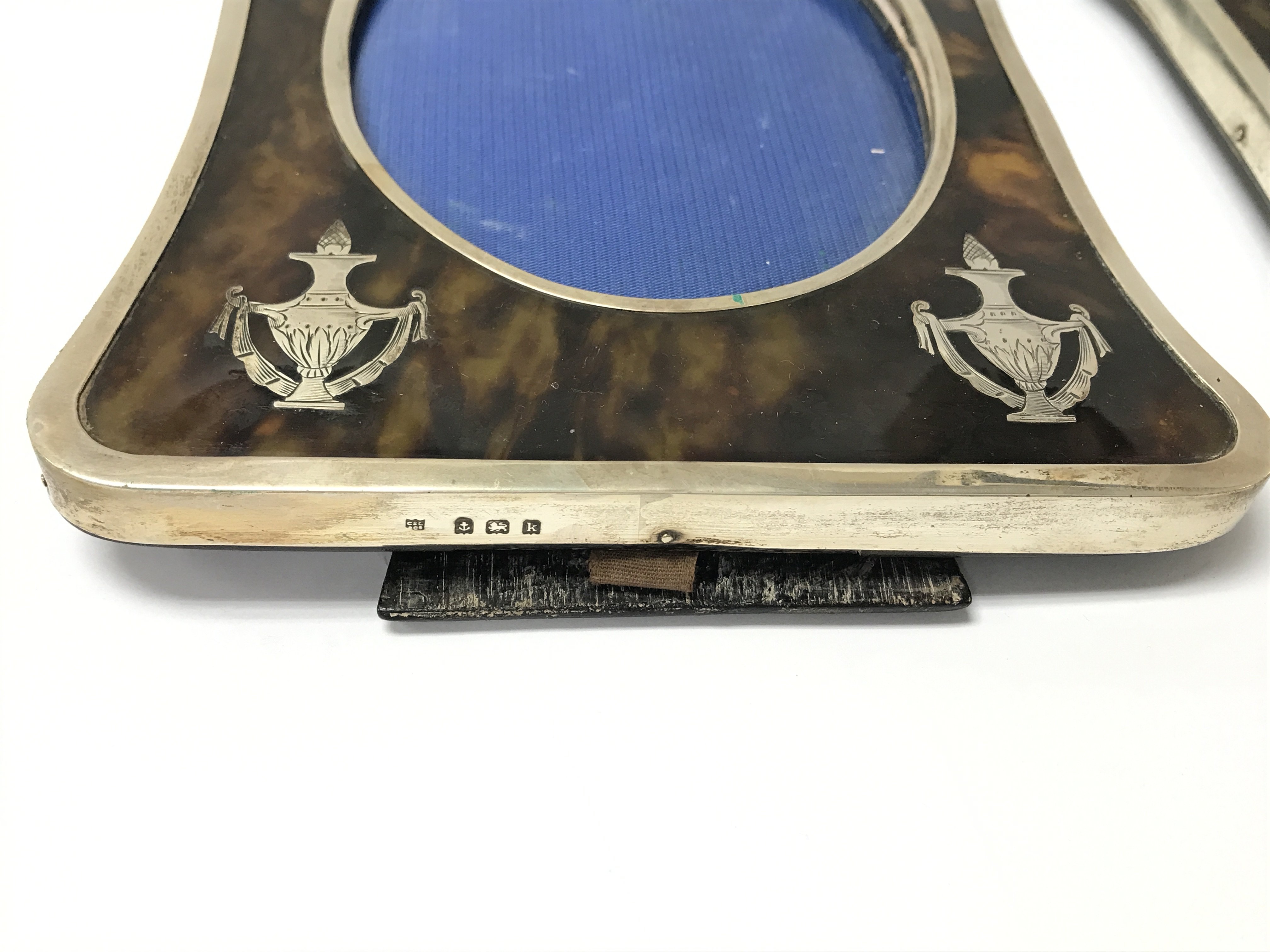 A pair of tortoise shell and silver frames. Birmingham hallmark 1909. 22cm by 16cm