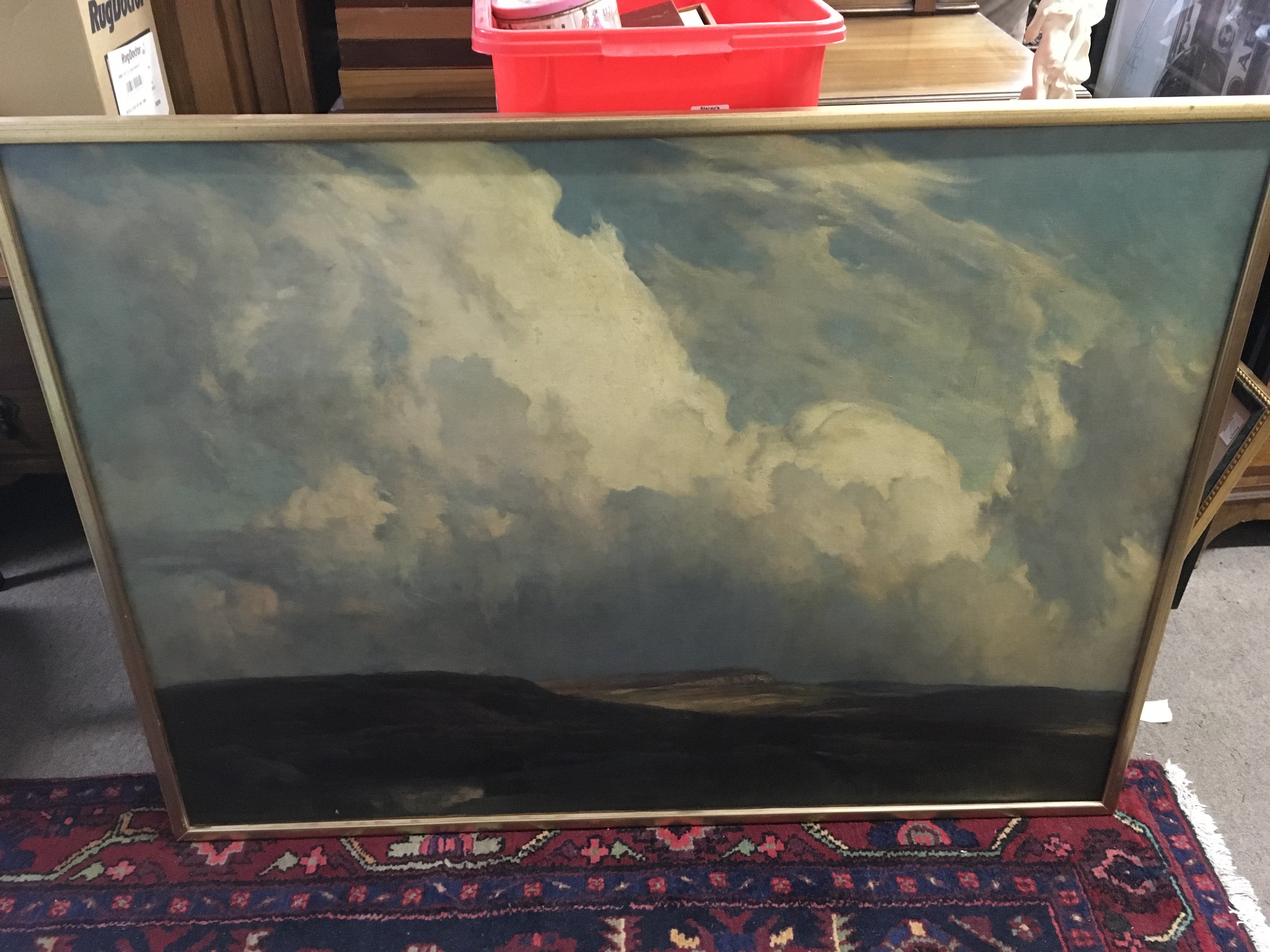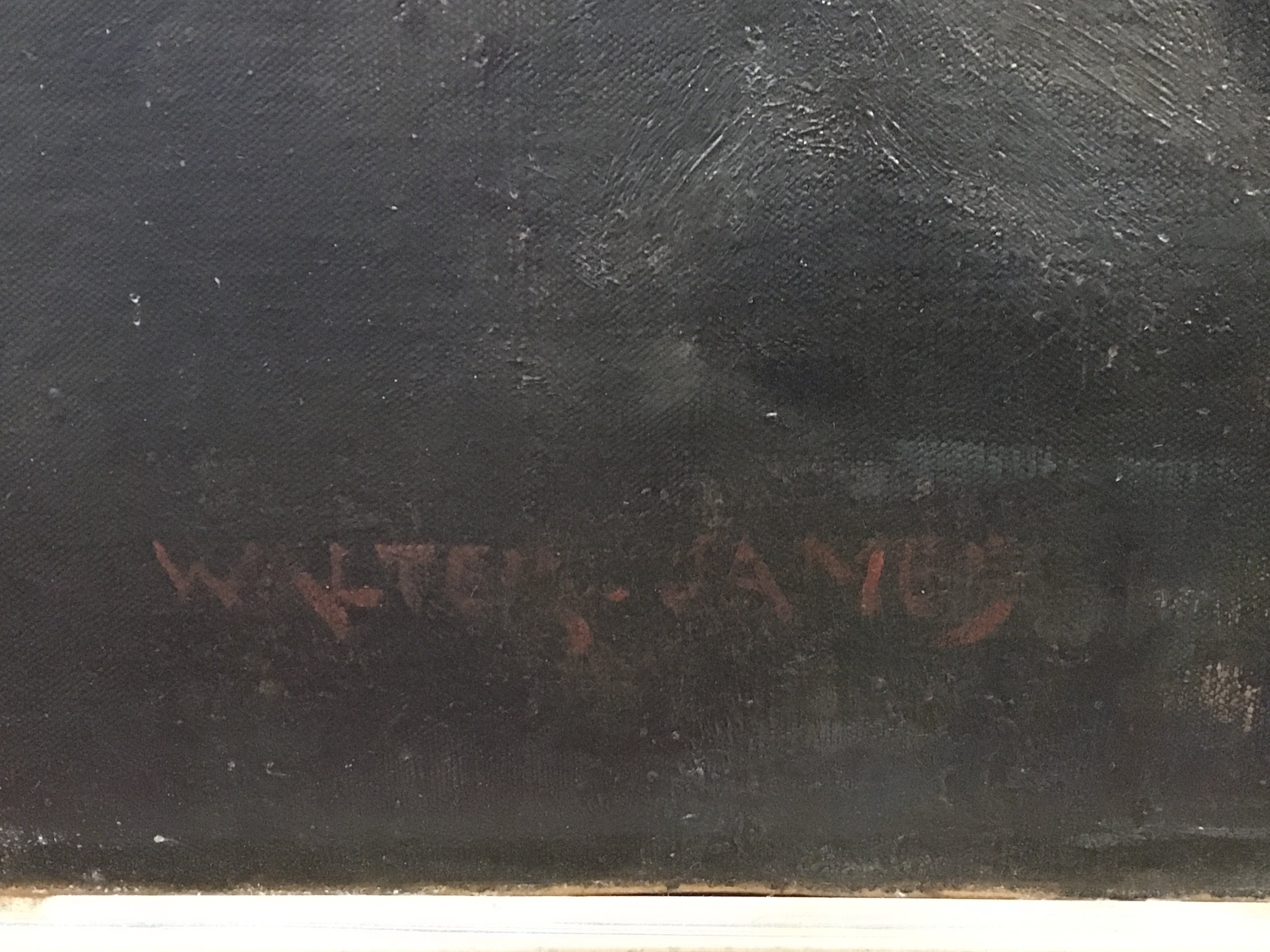 A large framed watercolour painting of a coastal view signed Walter James. Dimensions 125x92cm