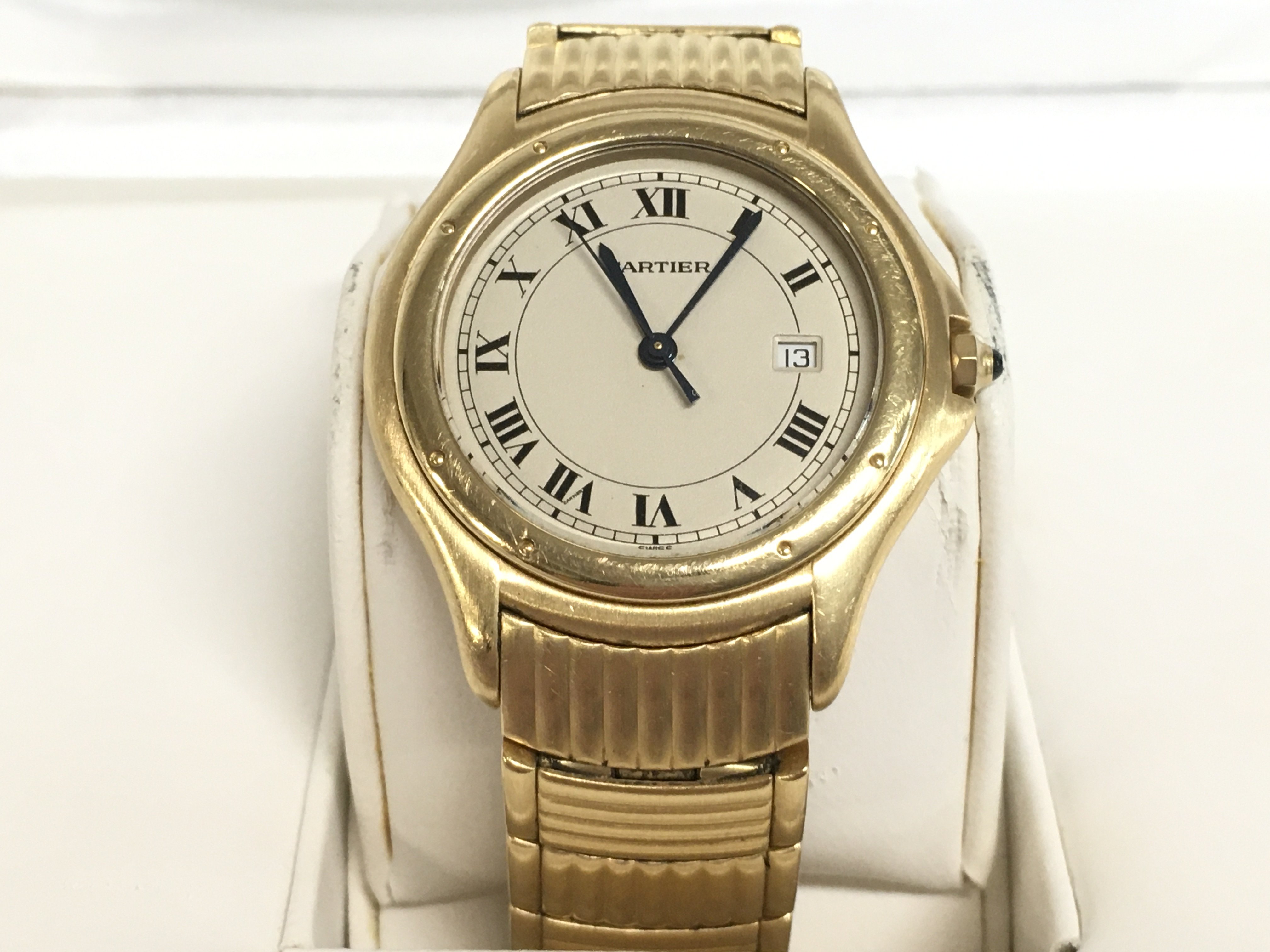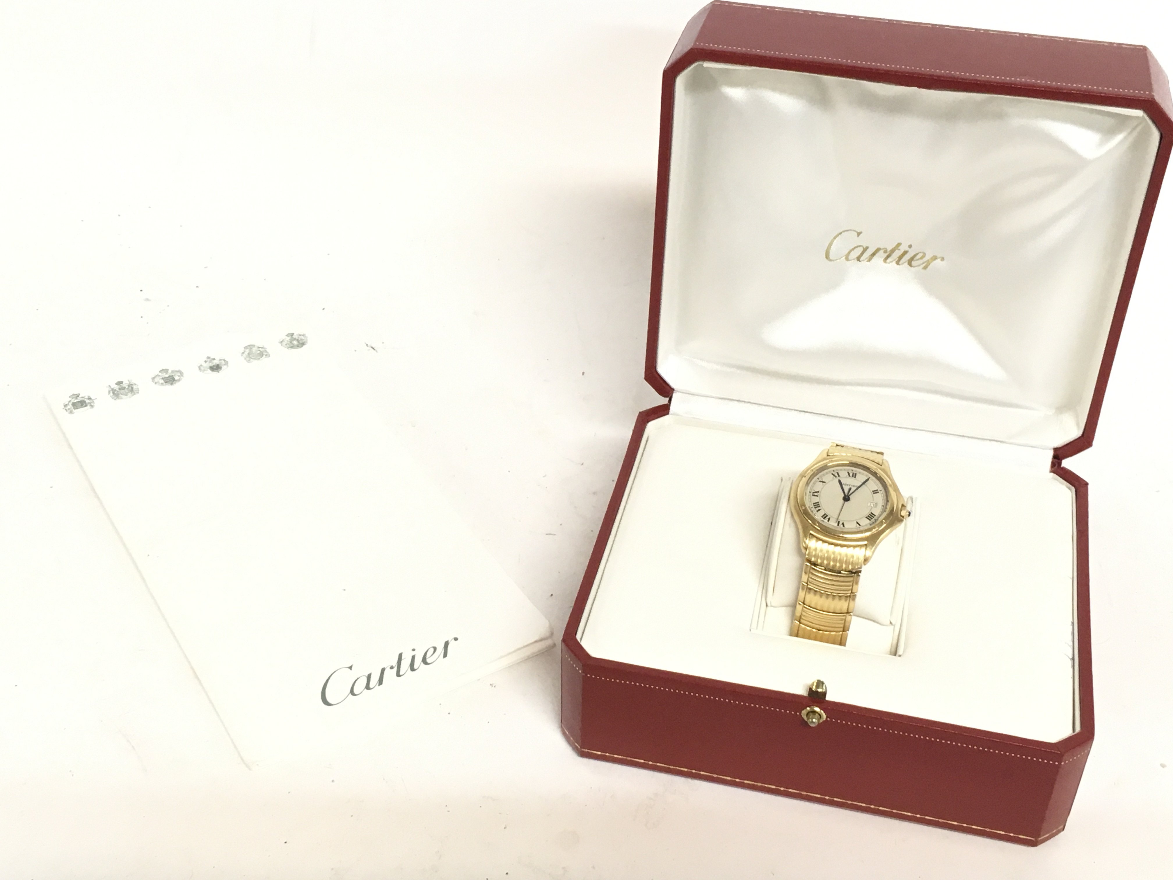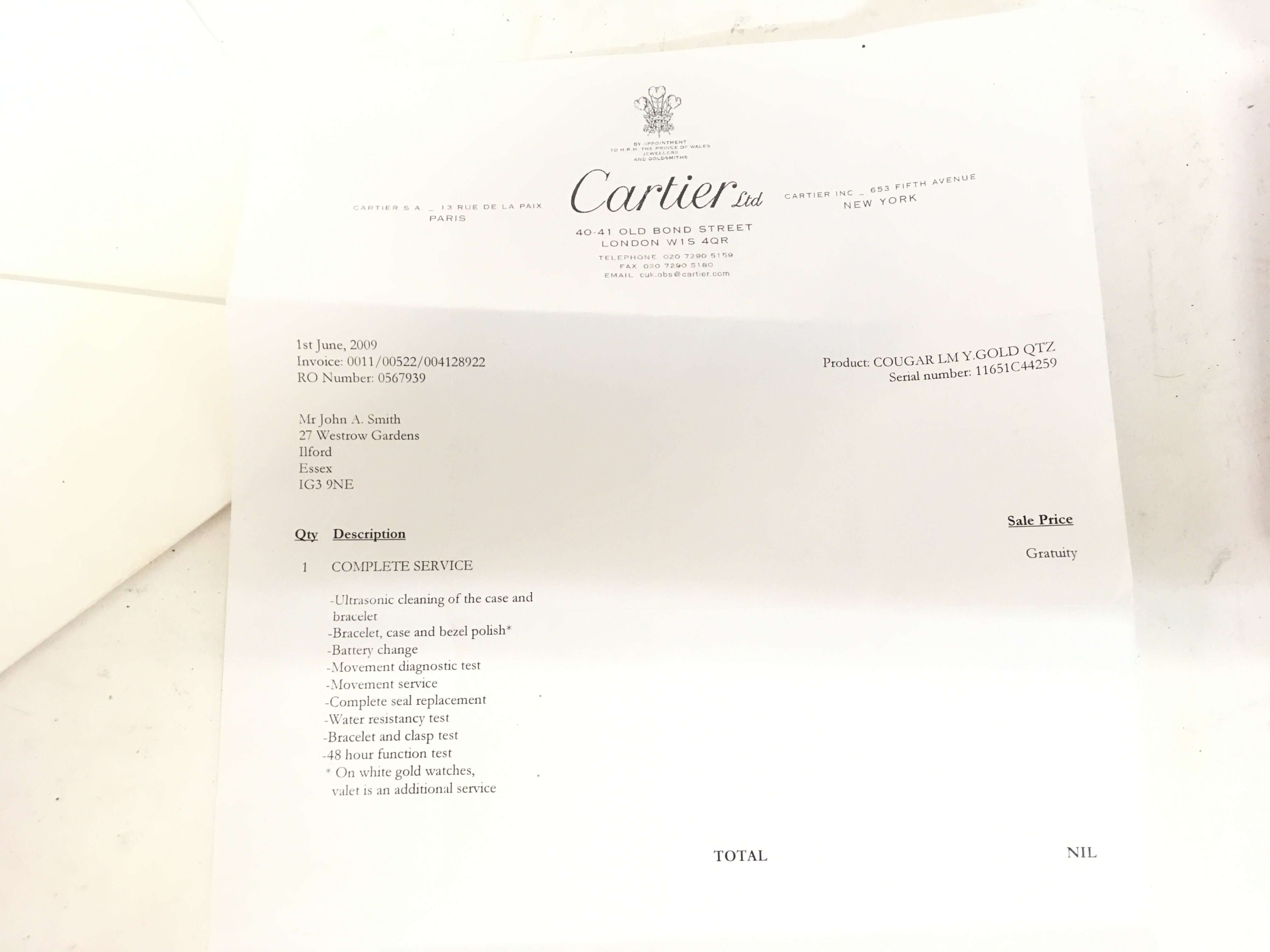 A cased Cartier Cougar yellow metal 18ct watch, Serial number 11651C44259. (seen working)