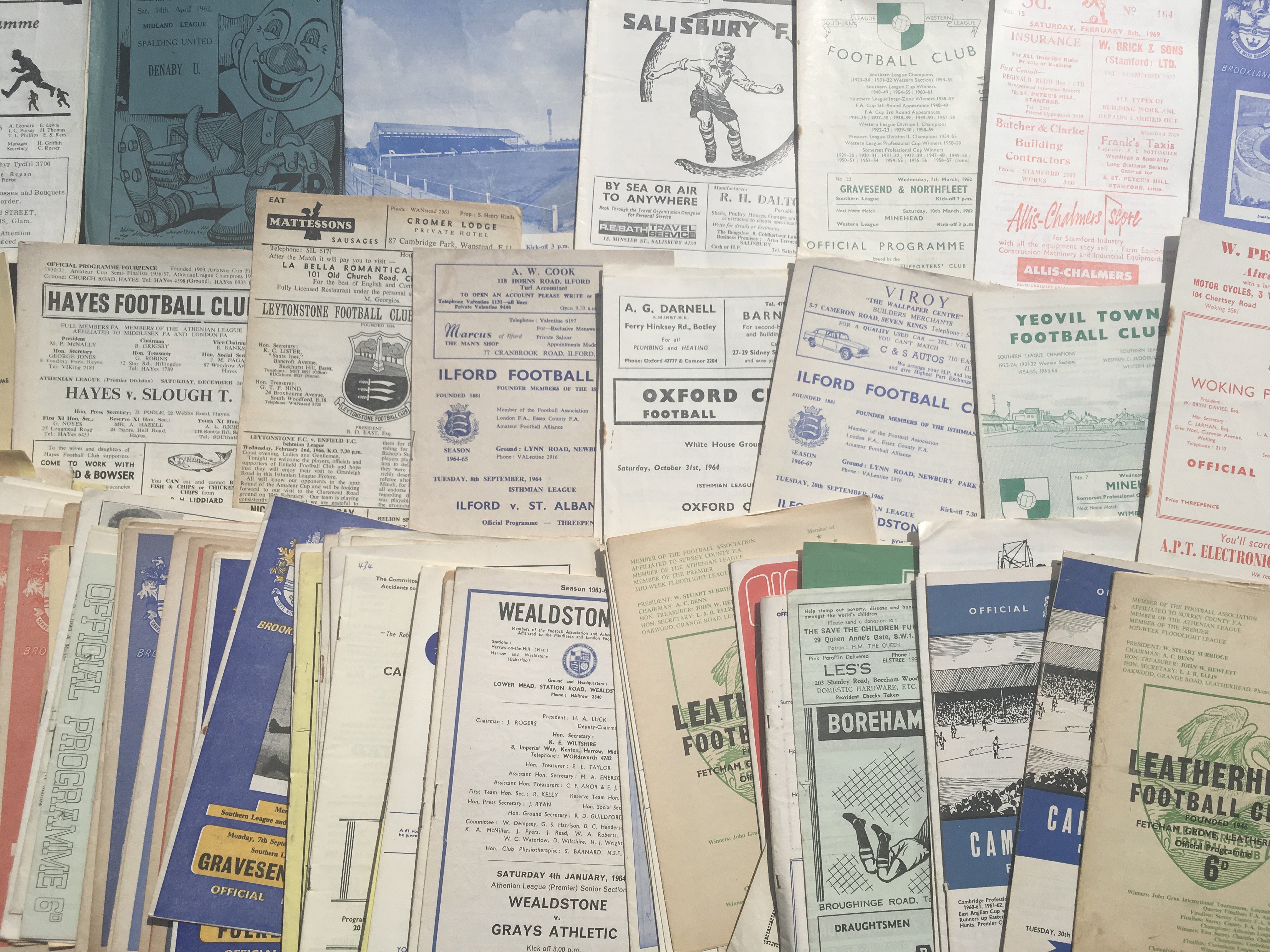 Non League 1960s Football Programmes: Good selection of Romford and a wide variety of other clubs from the 60s or earlier. Good condition spanning the whole decade. (Est 140+)