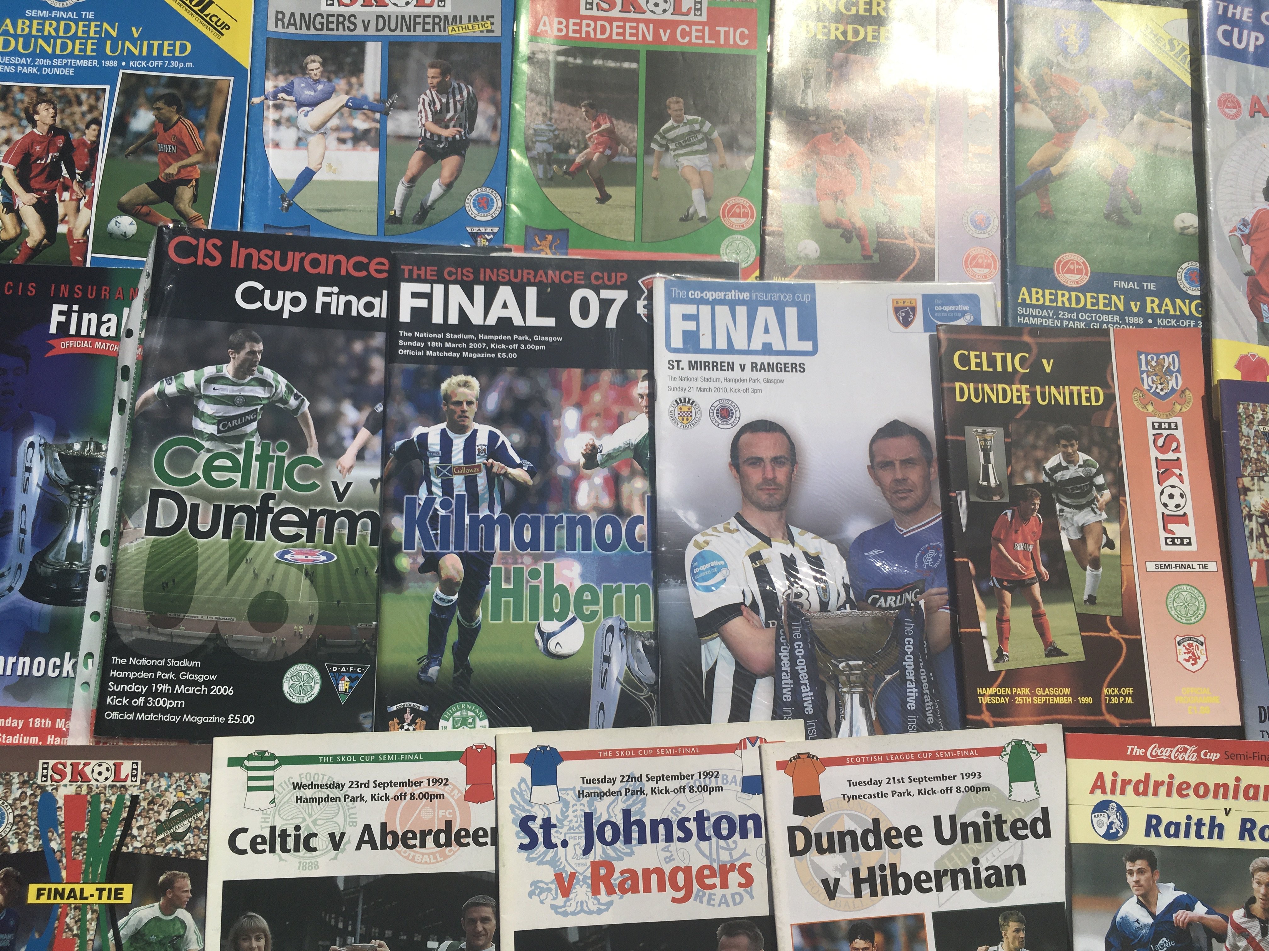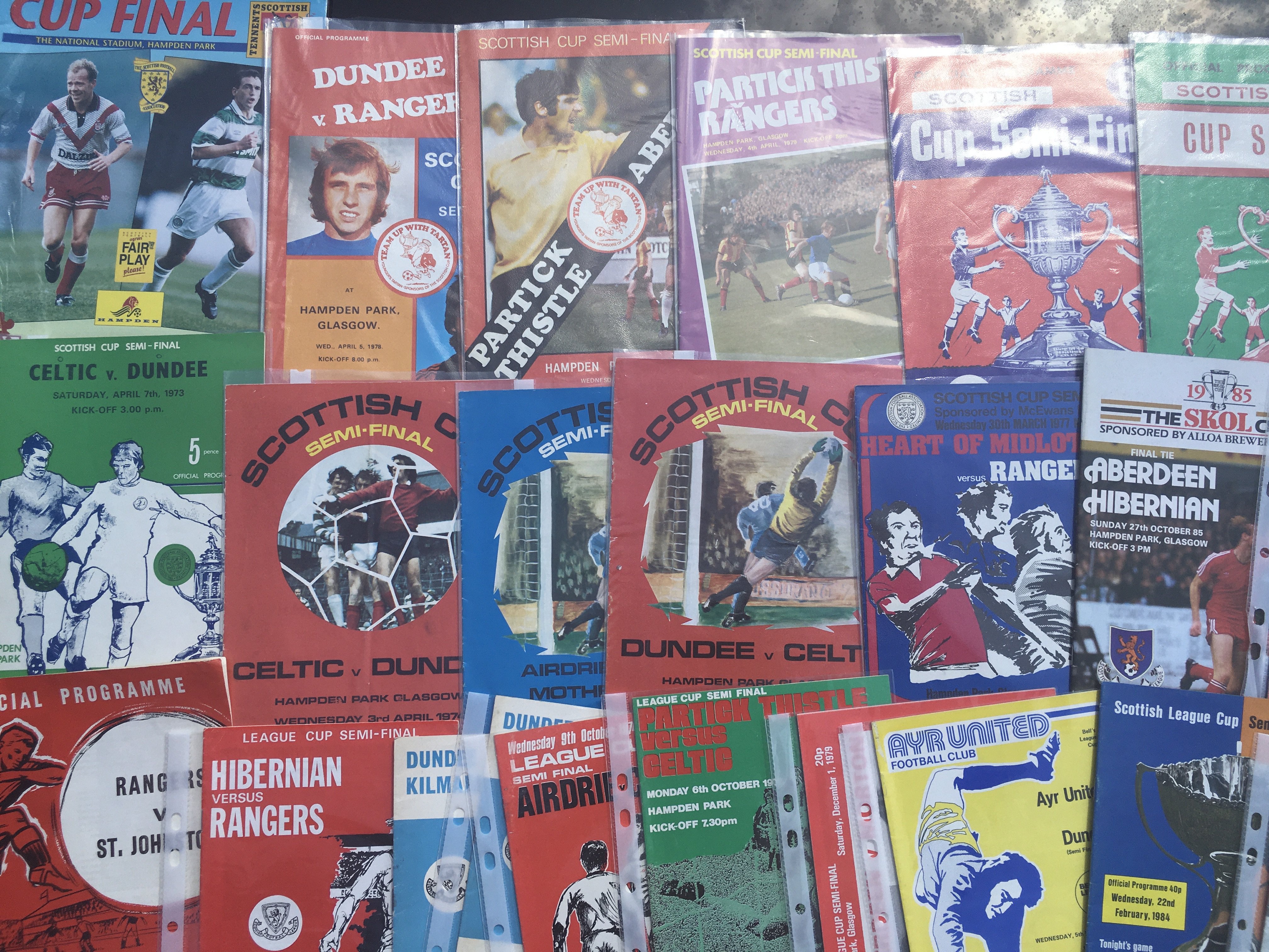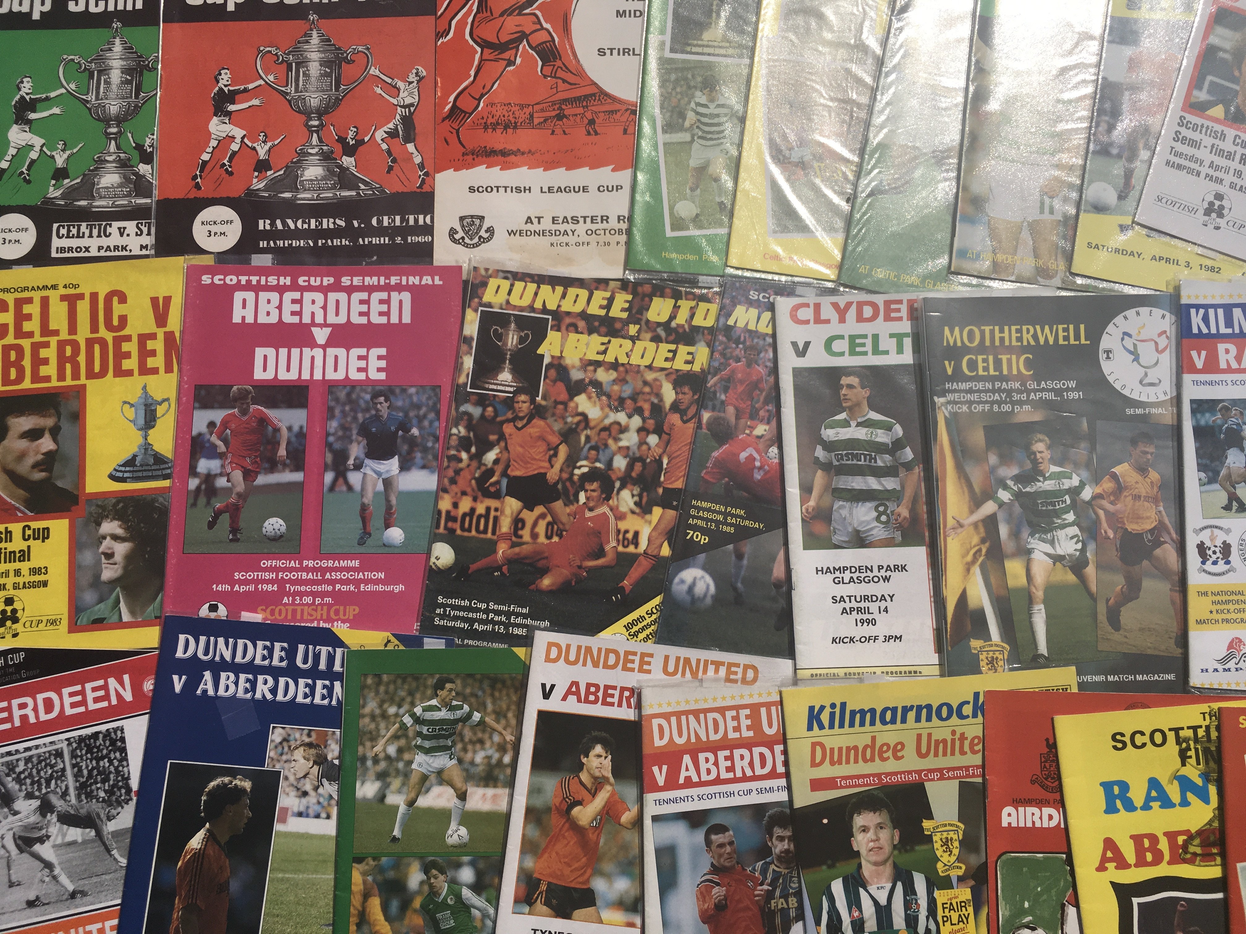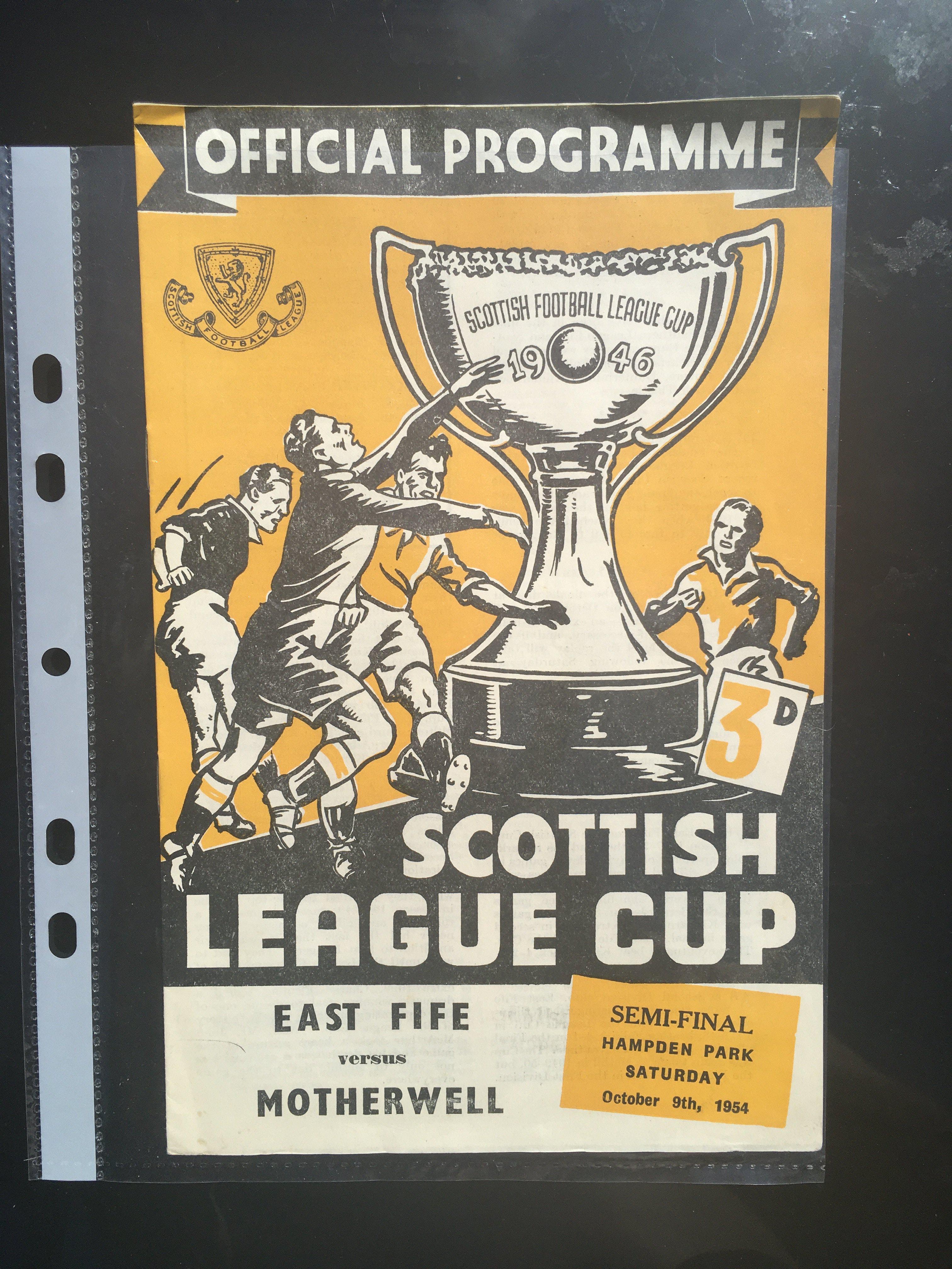 Scottish Big Match Football Programmes: From the 60s onwards to include semi finals and finals from the Scottish Cup and Scottish League Cup. Includes 1954 East Fife v Motherwell. Very good. (67)