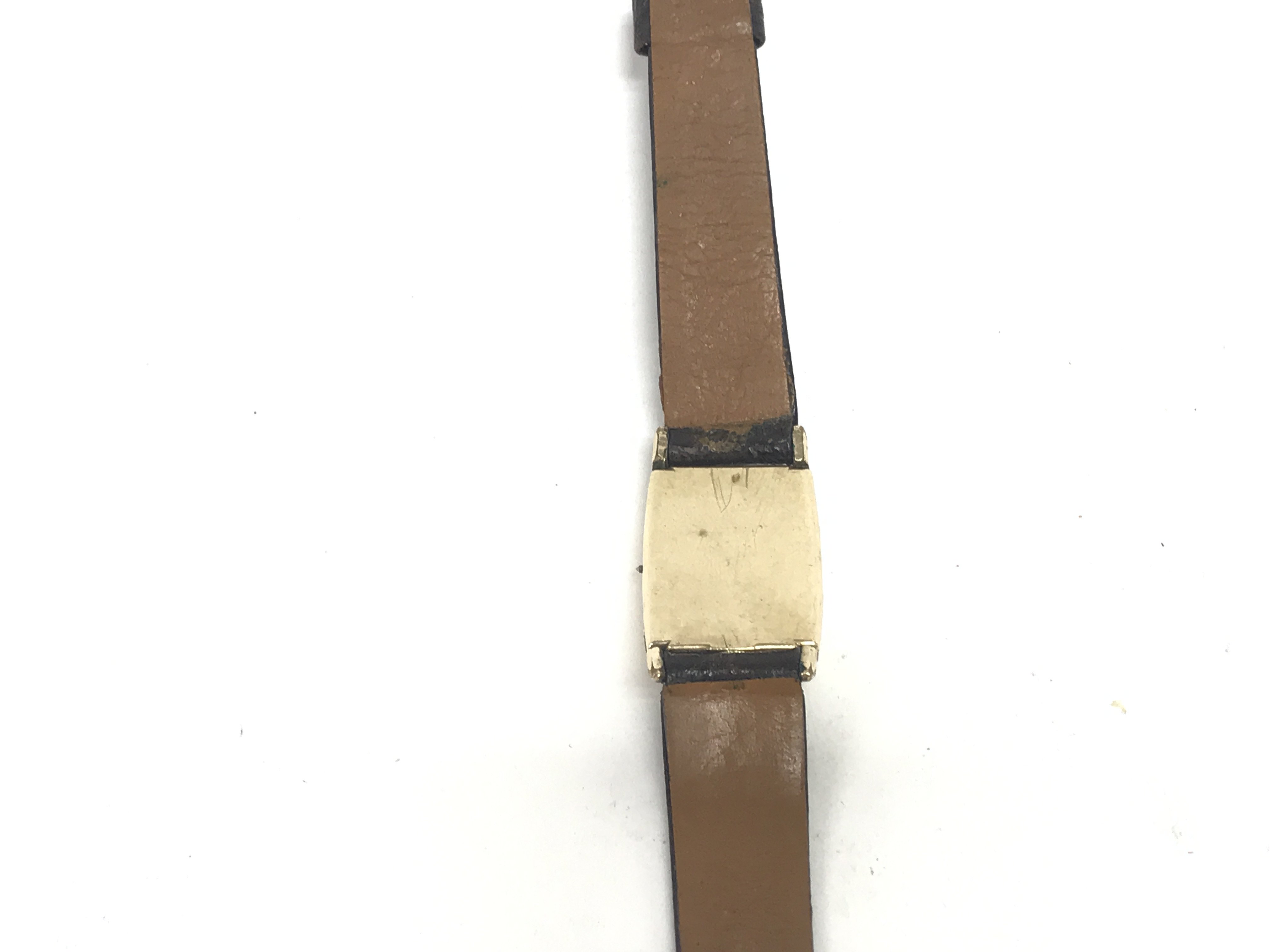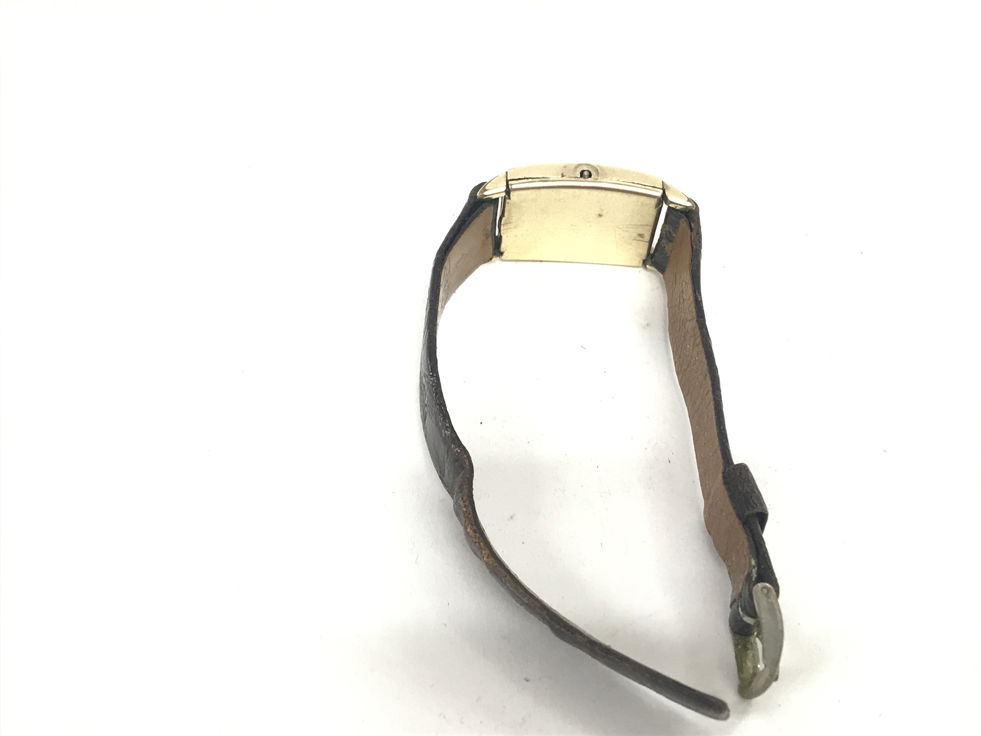 A 10ct gold filled vintage Rolex watch on brown leather strap. In need of repair. Postage B