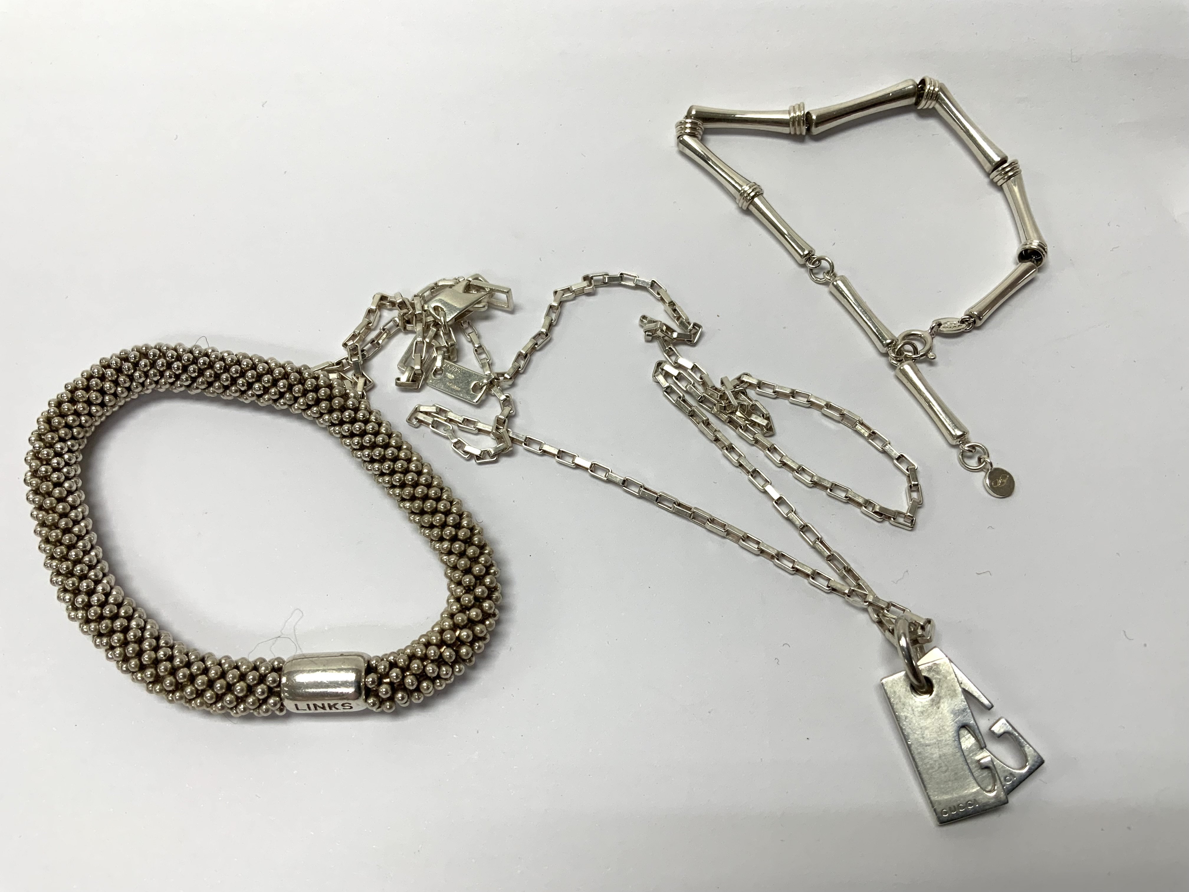 A Genuine Gucci Double G sterling silver pendant and chain together with 2 sterling silver Links of London bracelets (A)