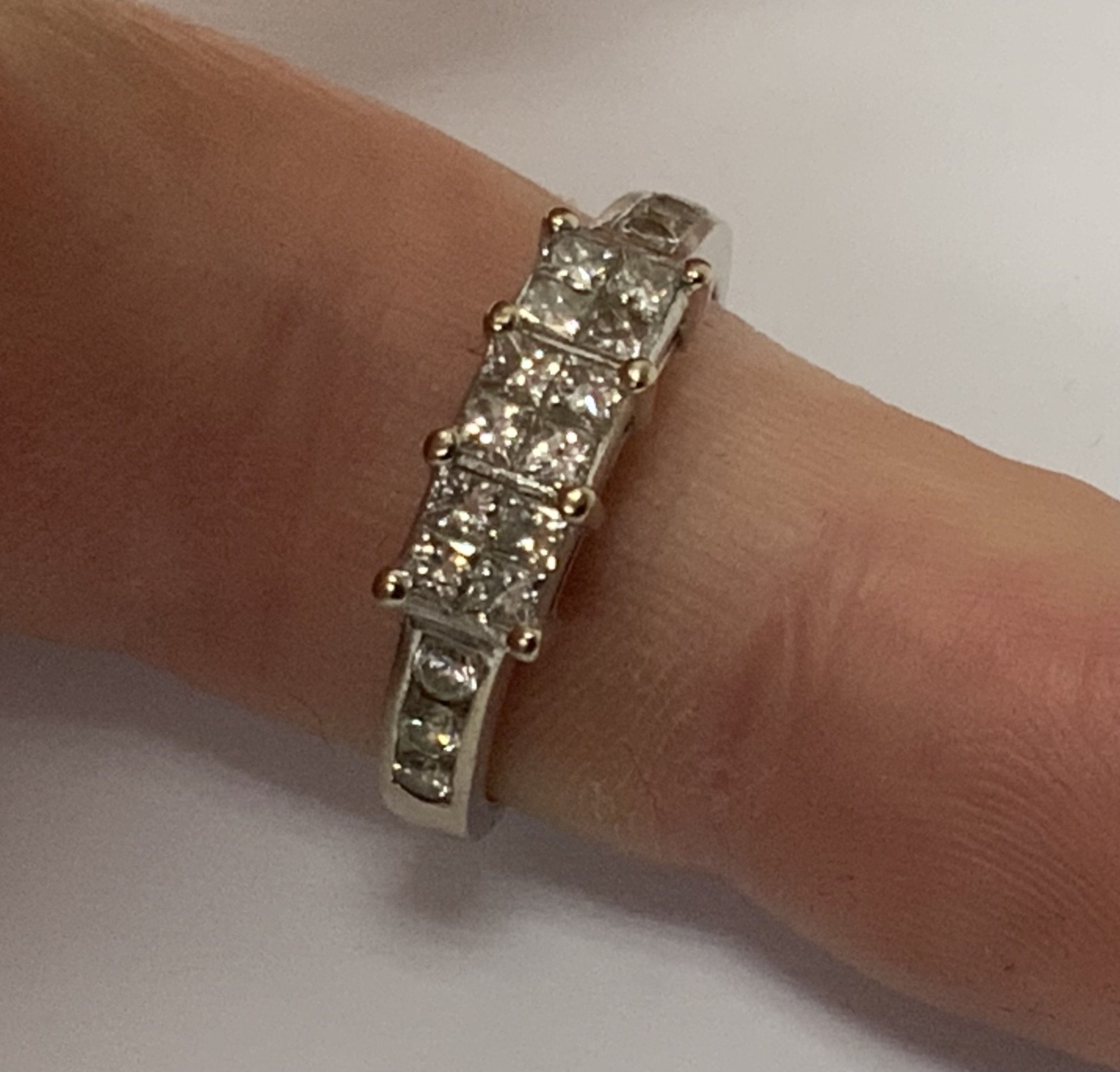 An 18ct white gold illusion set diamond ring, Size L, (A)