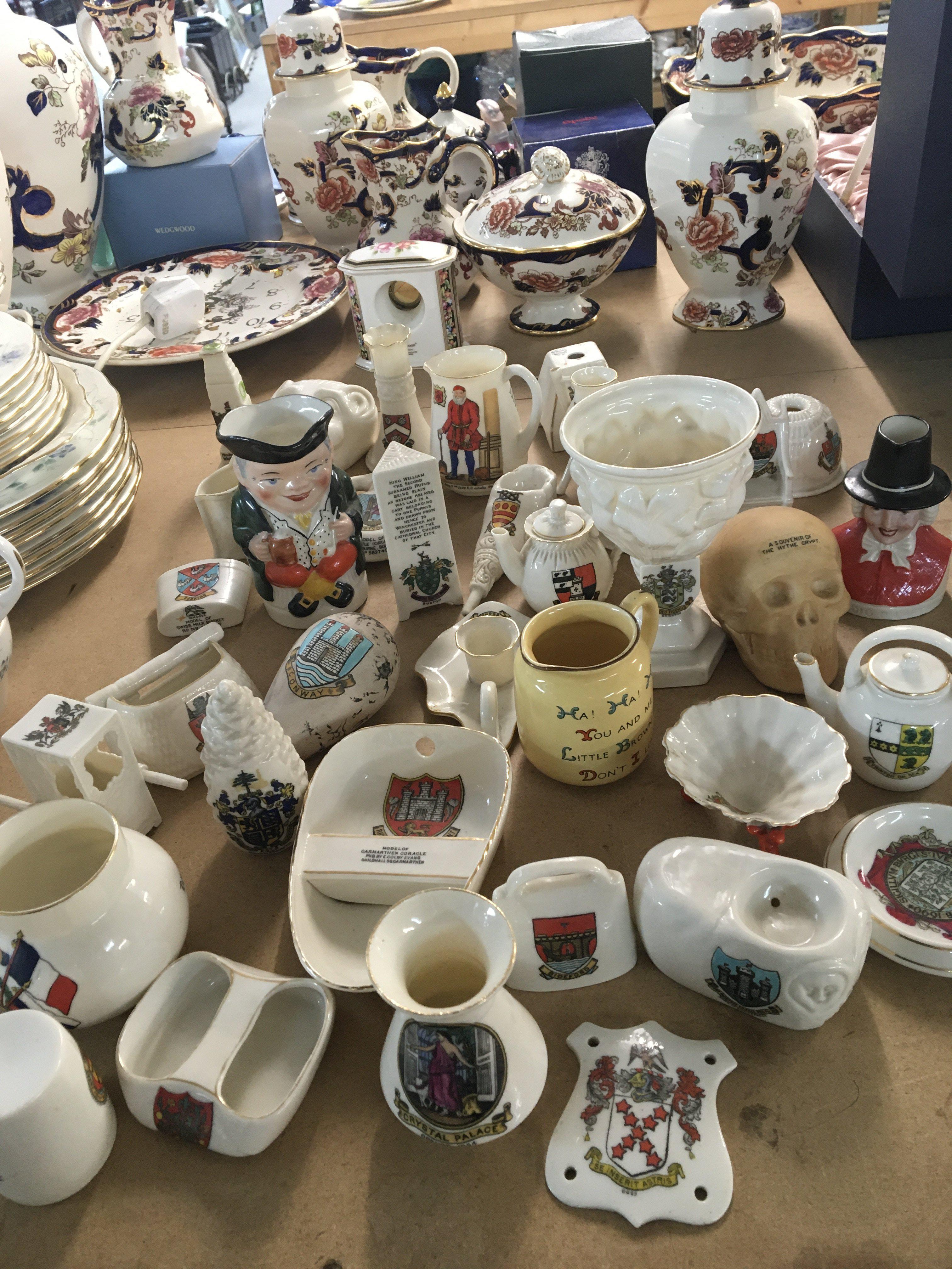 A collection of Rare and unusual Goss ornaments including a skull a matt finished egg unusual painted Toby jug and other Goss no obvious damage or restoration.