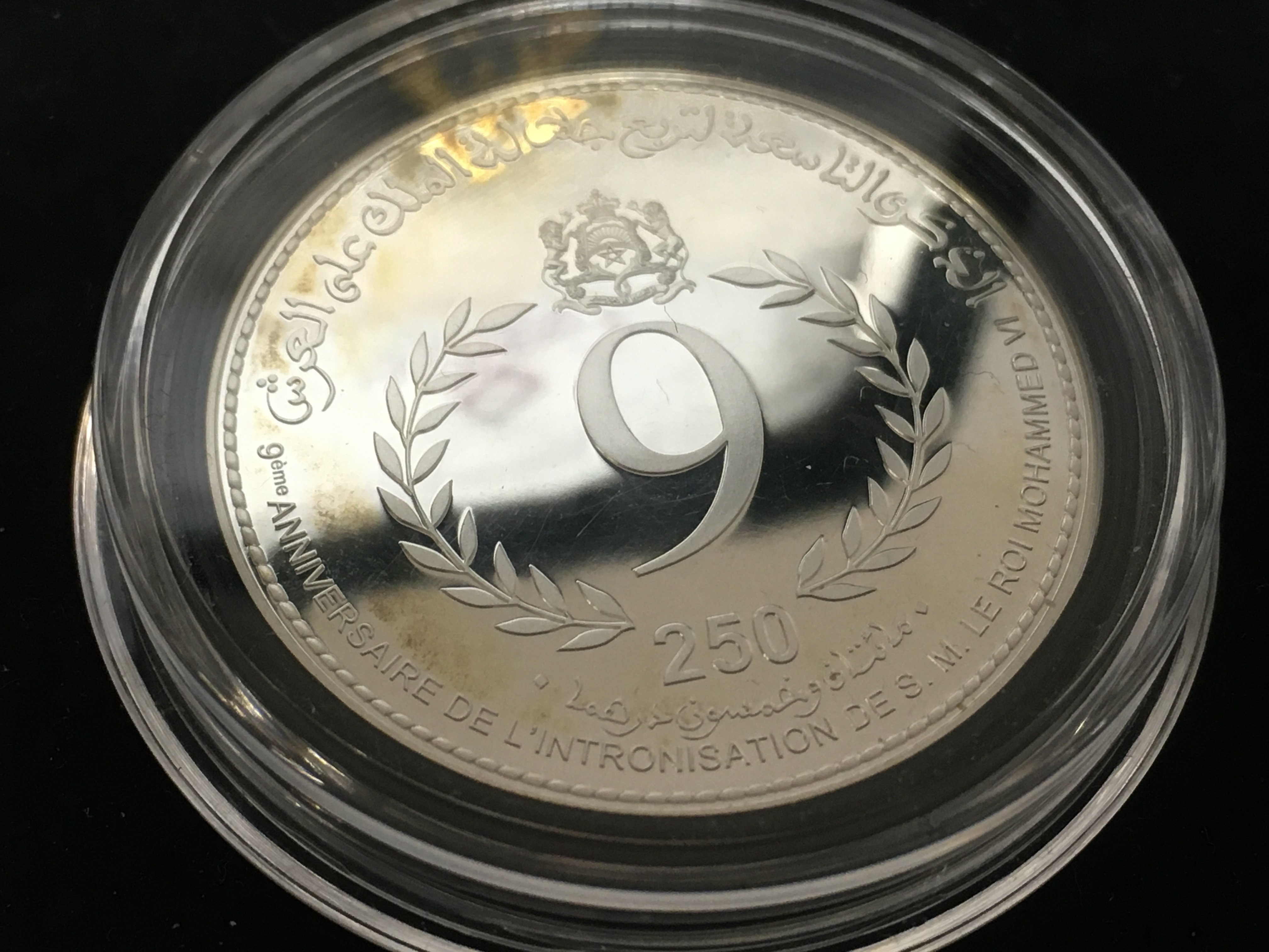 A cased Moroccan silver 250 Dirham coin. Postage category A- NO RESERVE