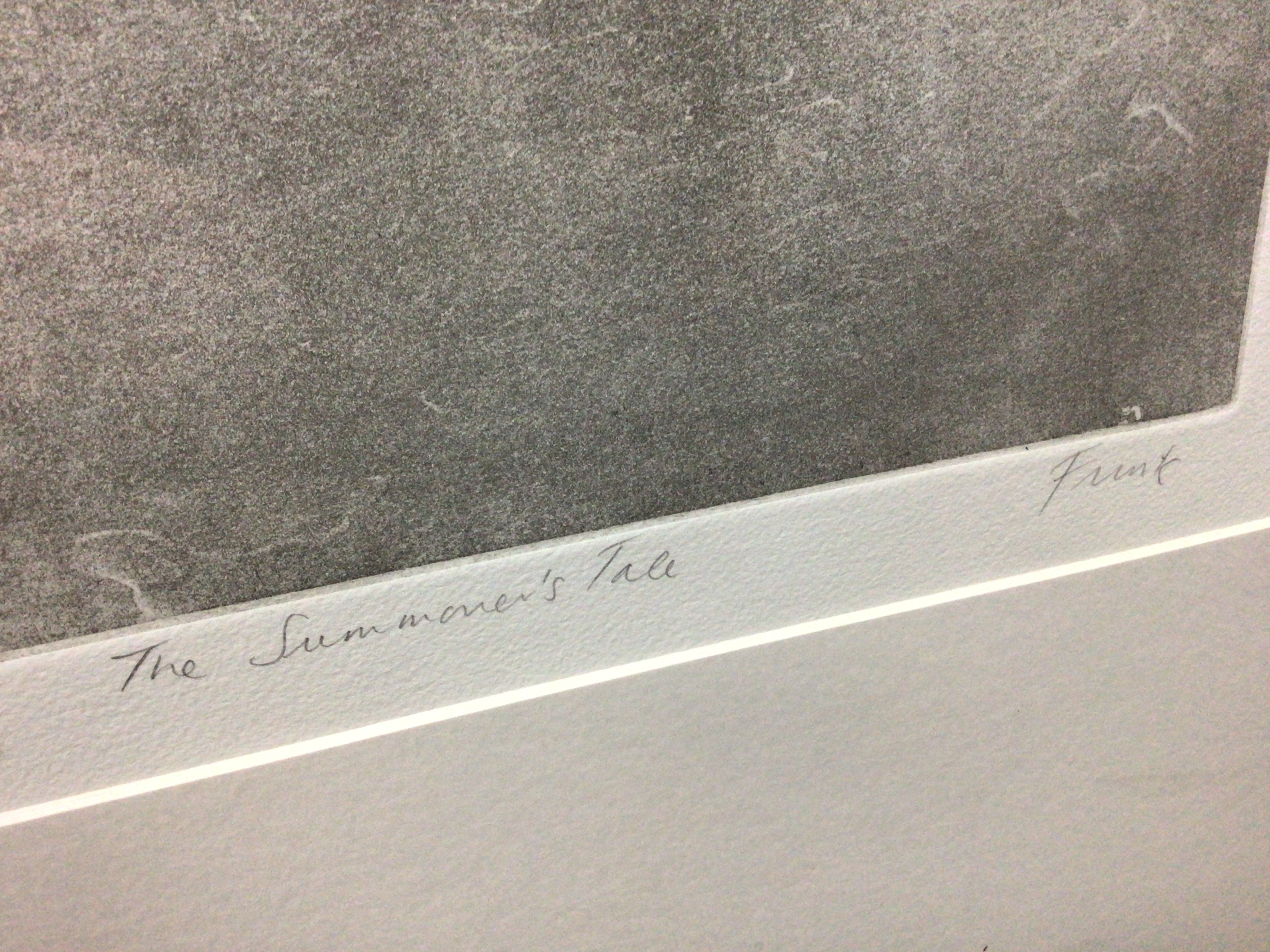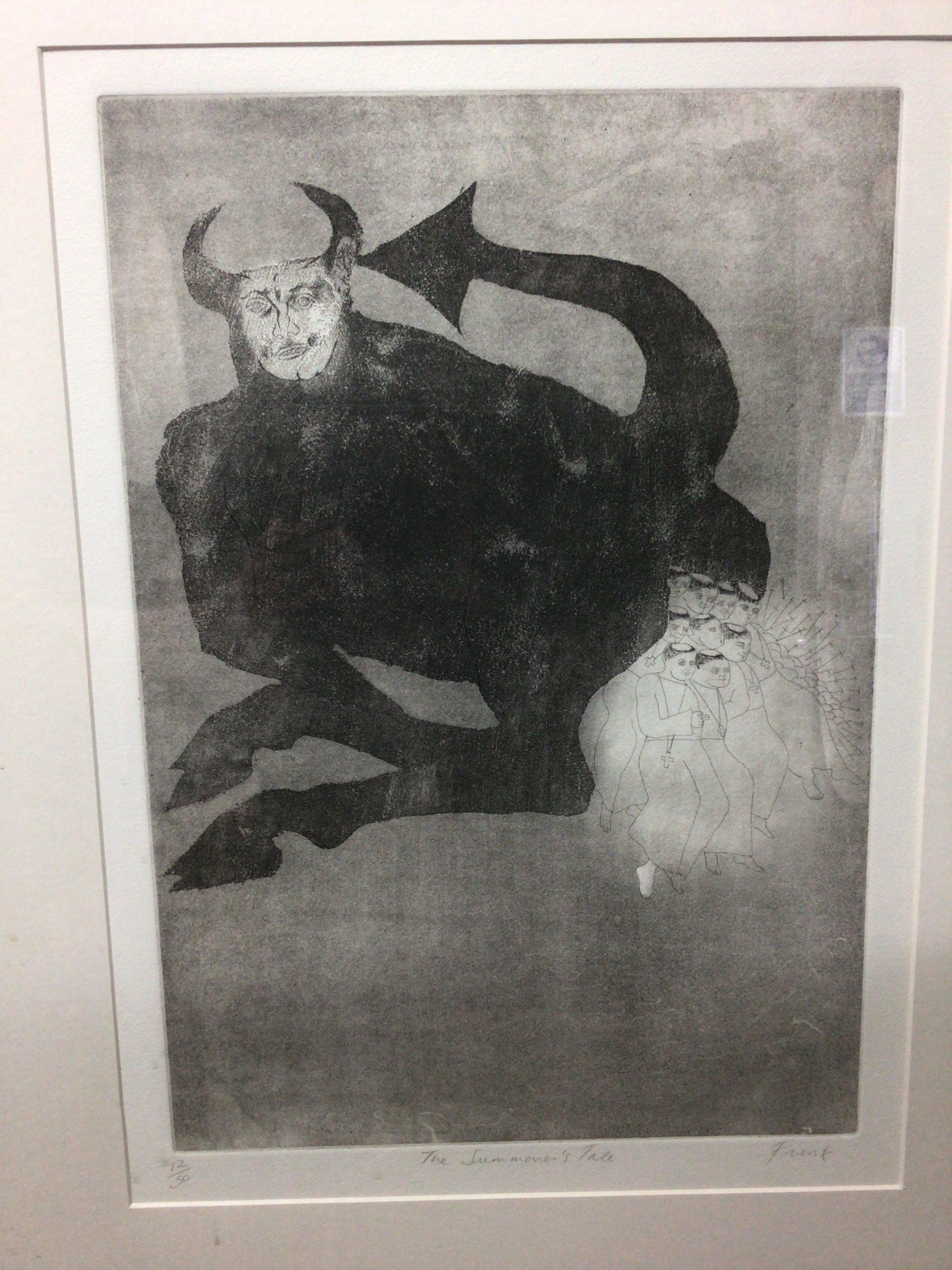A Limited Edition 12/50 Elizabeth Frink print entitled The Summoners Tale. Measuring 34cm x 50- not including frame