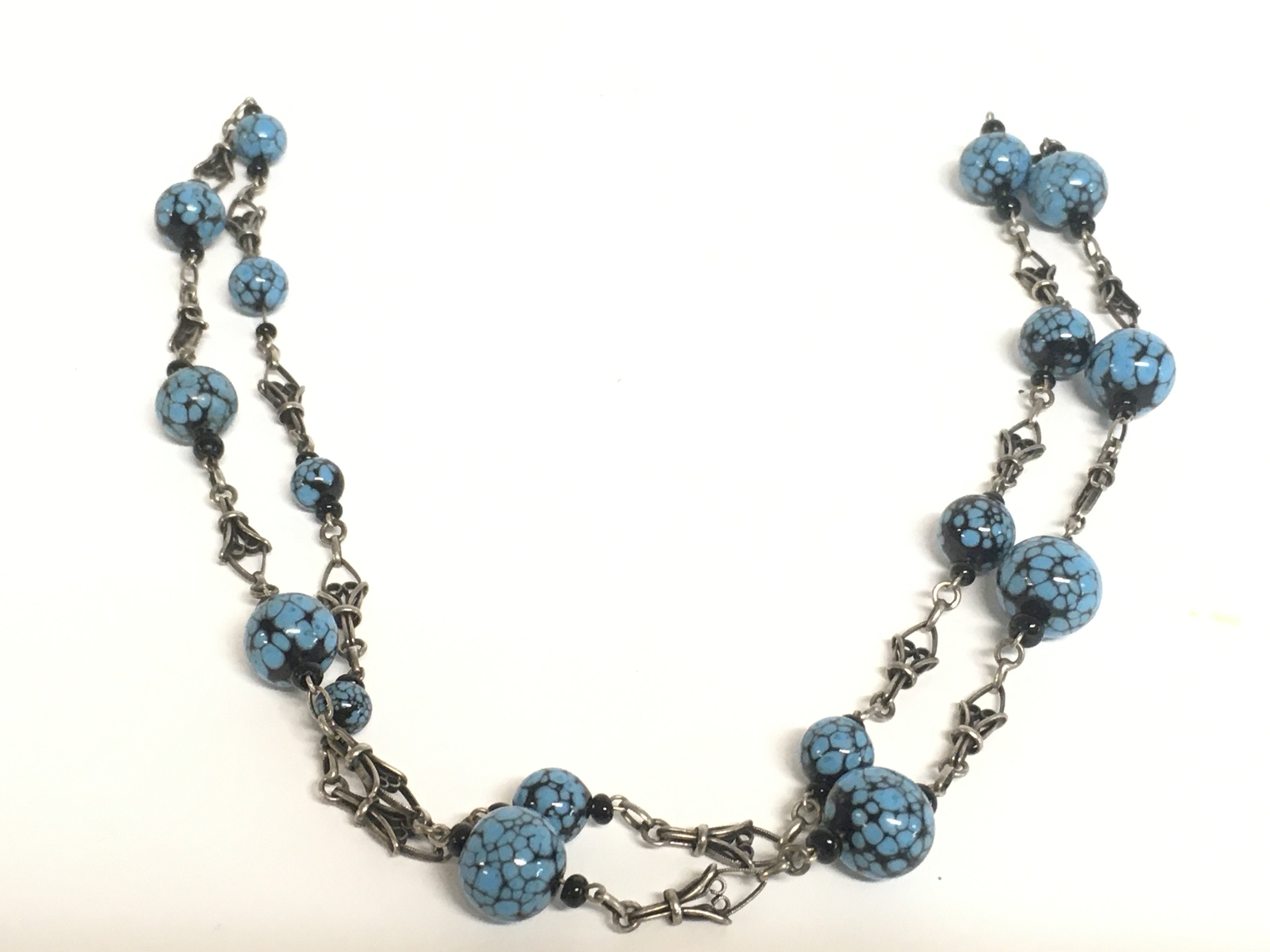 An Egyptian revival silver bead necklace, postage category A- NO RESERVE