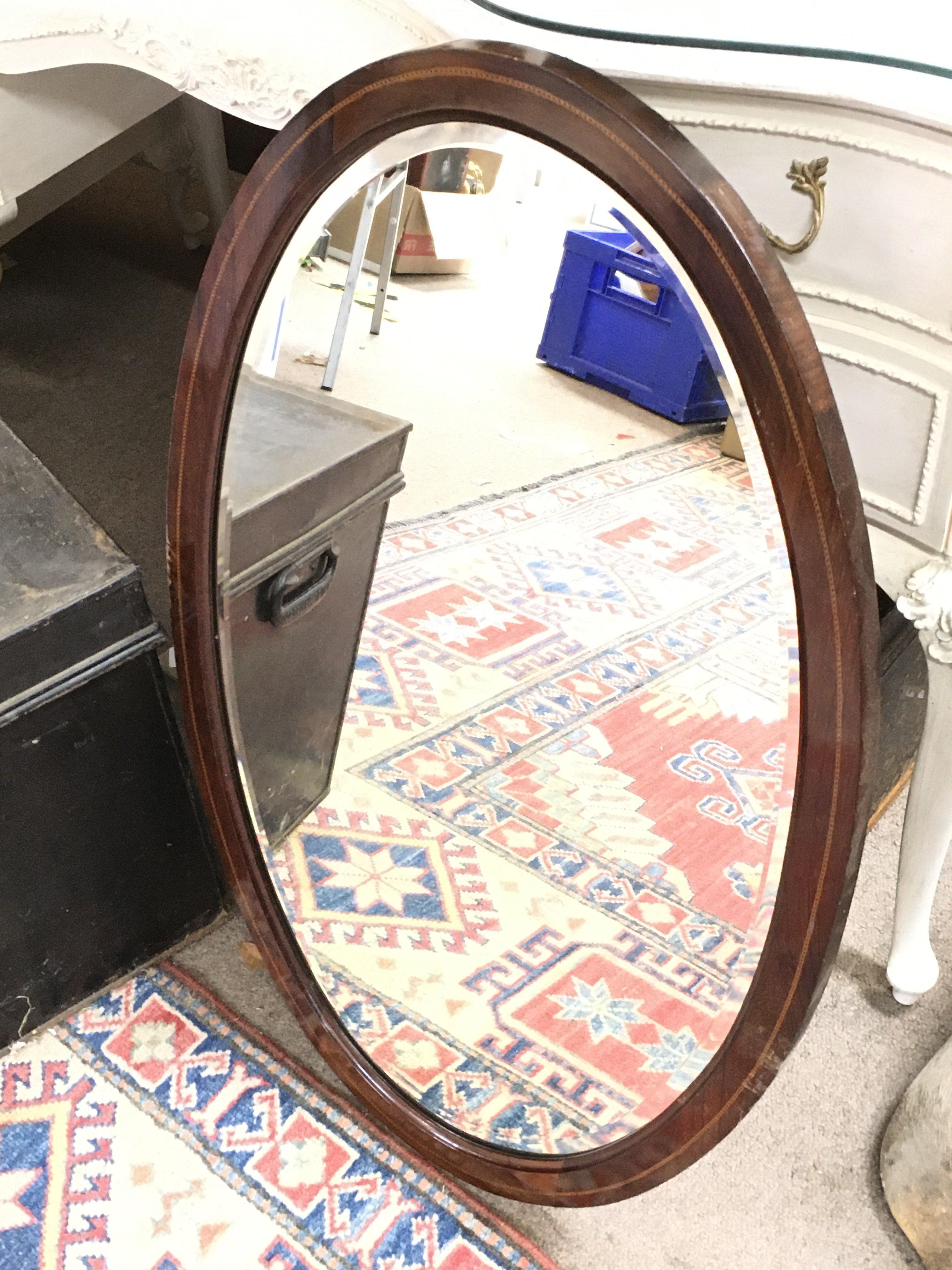 A wooden inlaid oval mirror,80cm tall 50cm wide. NO RESERVE