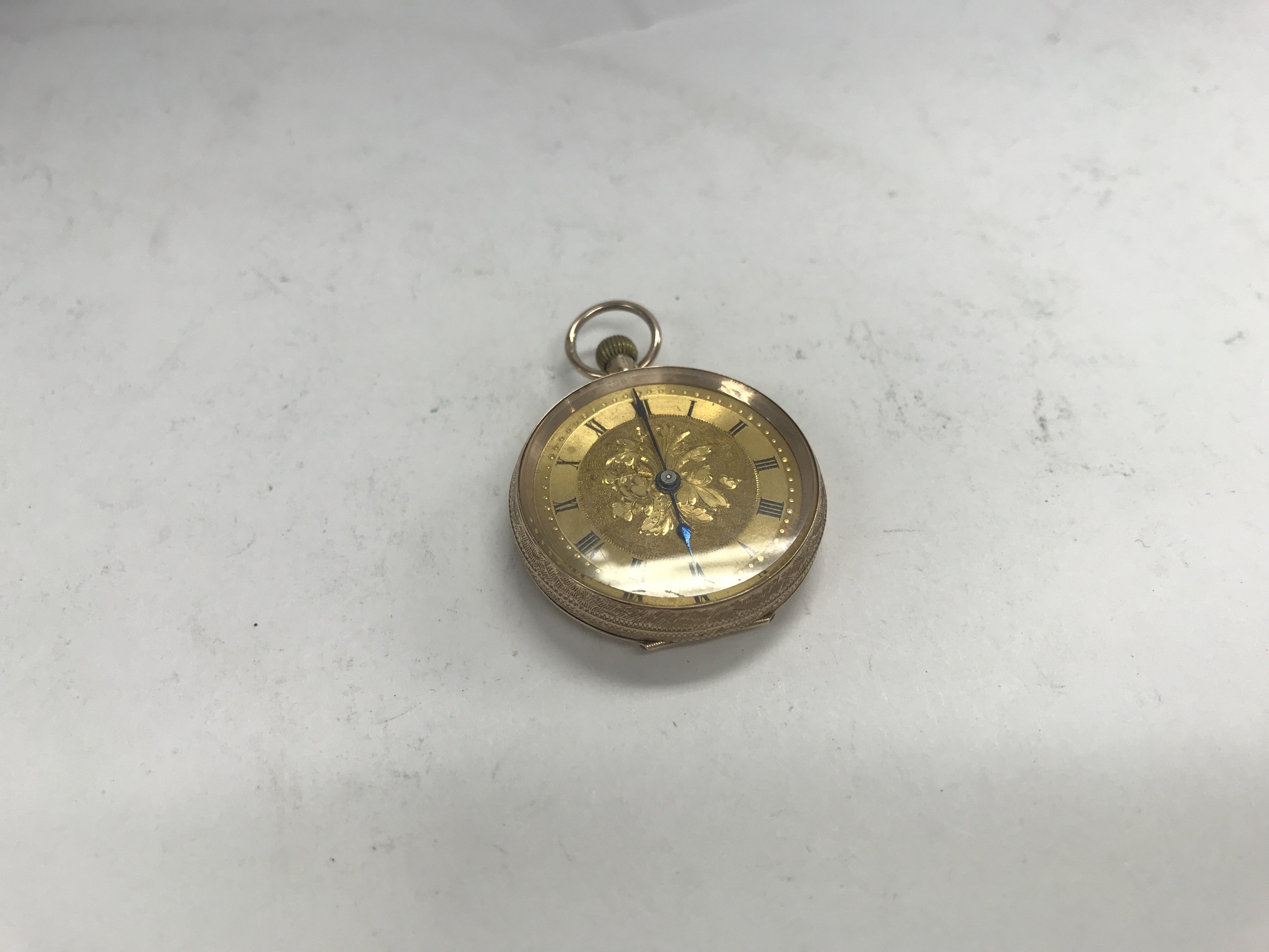 A 9ct gold ladies fob watch. Approx weight 28.17 grams.
