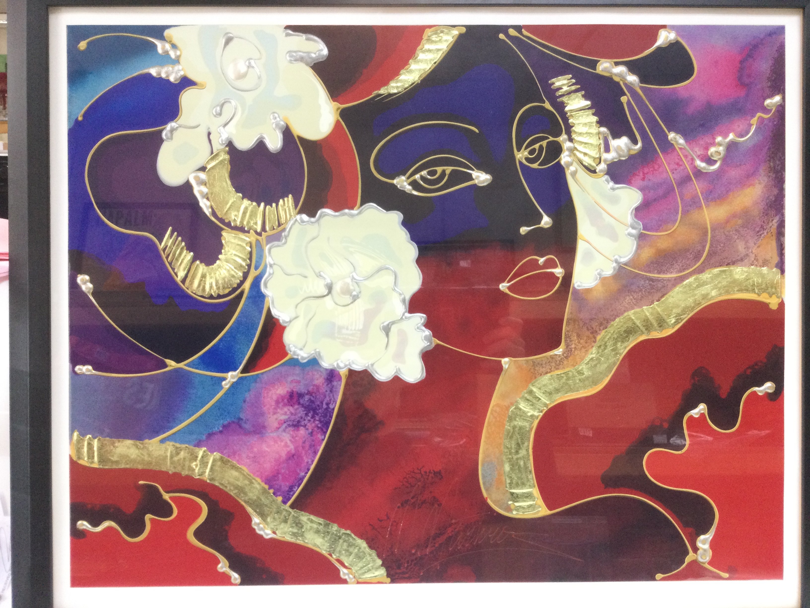 A frame and glazed mixed media portrait painting by Martiros Manoukian, approx 83cm x 68.5cm. Shipping category D.