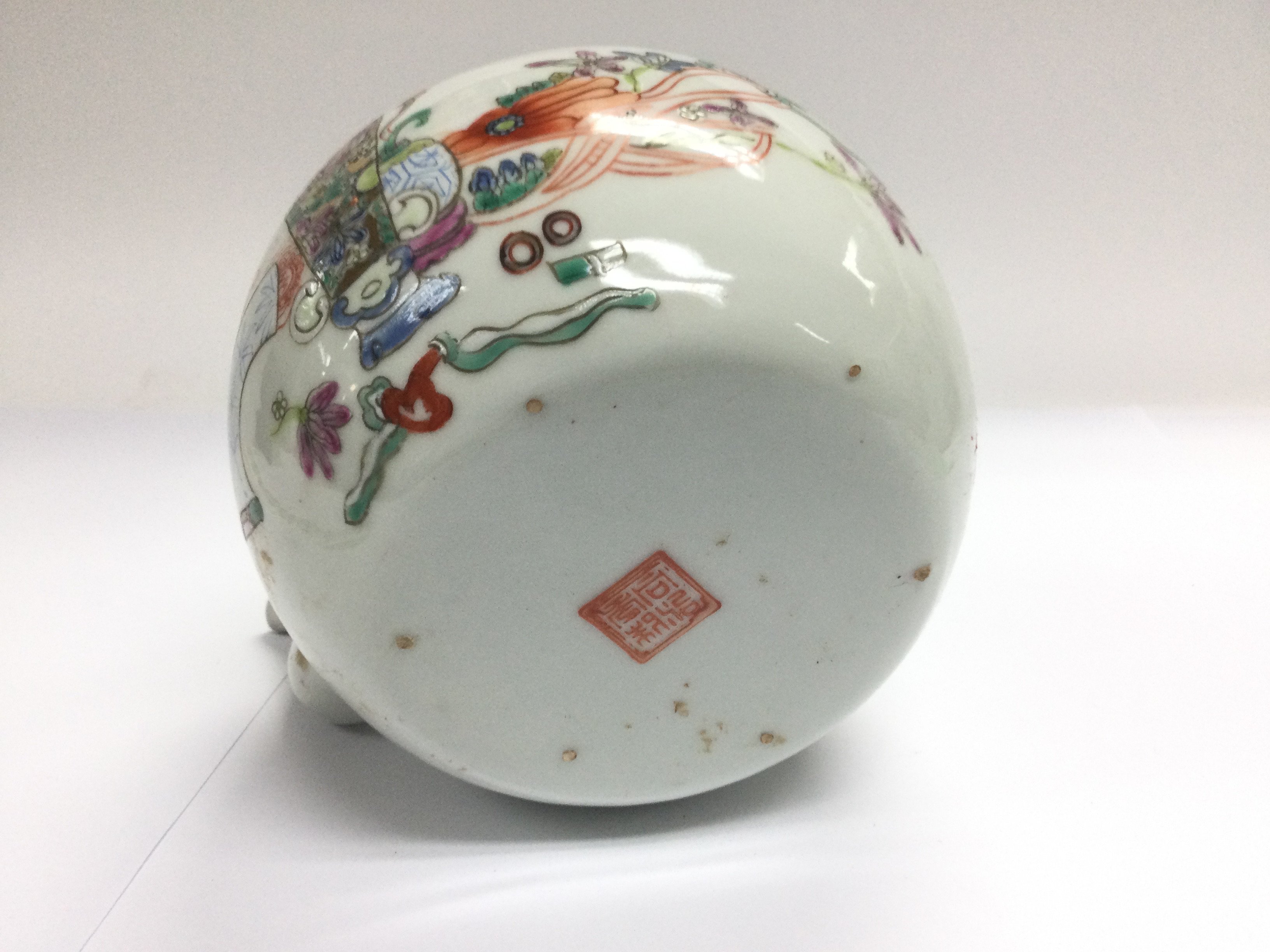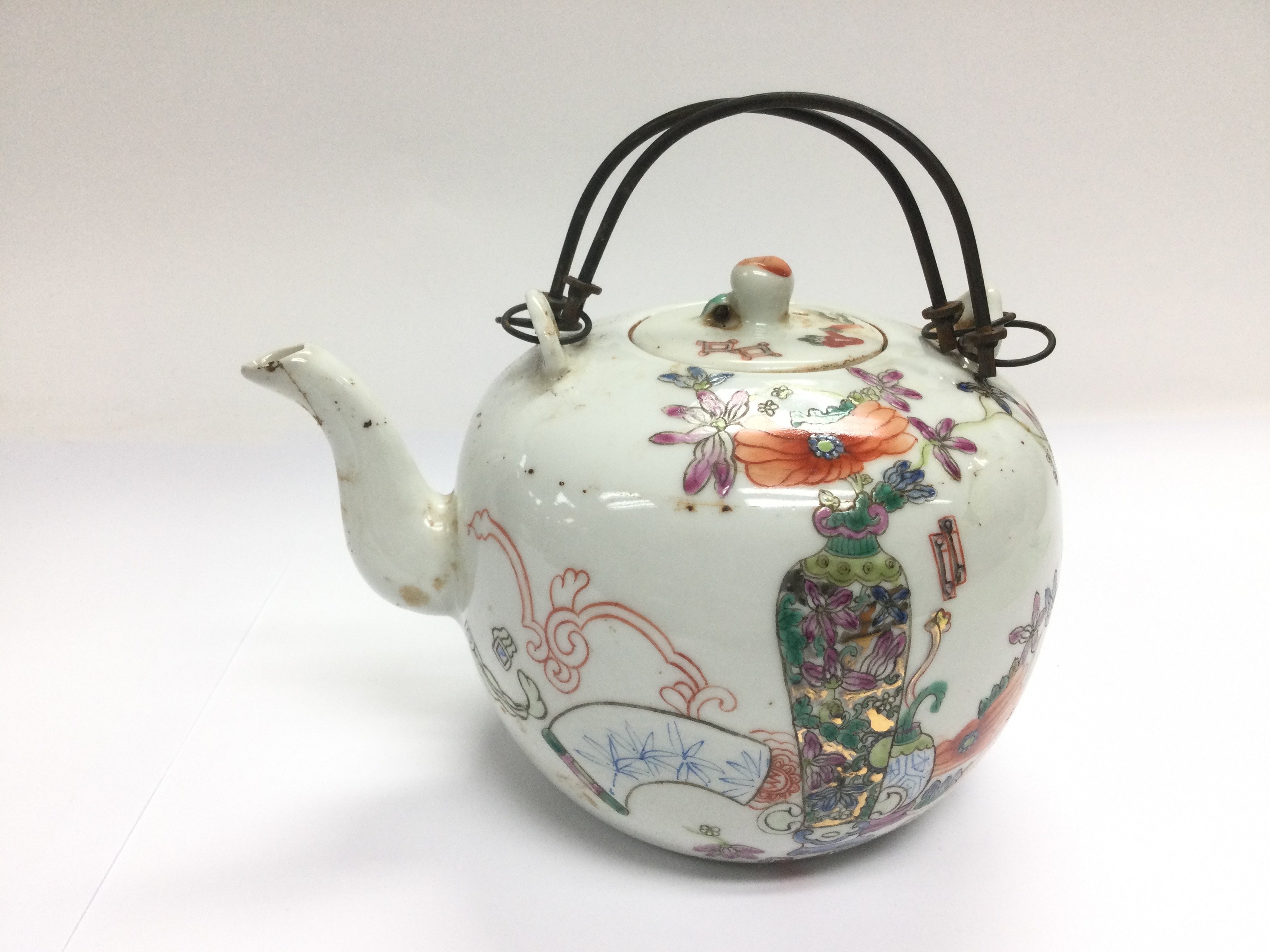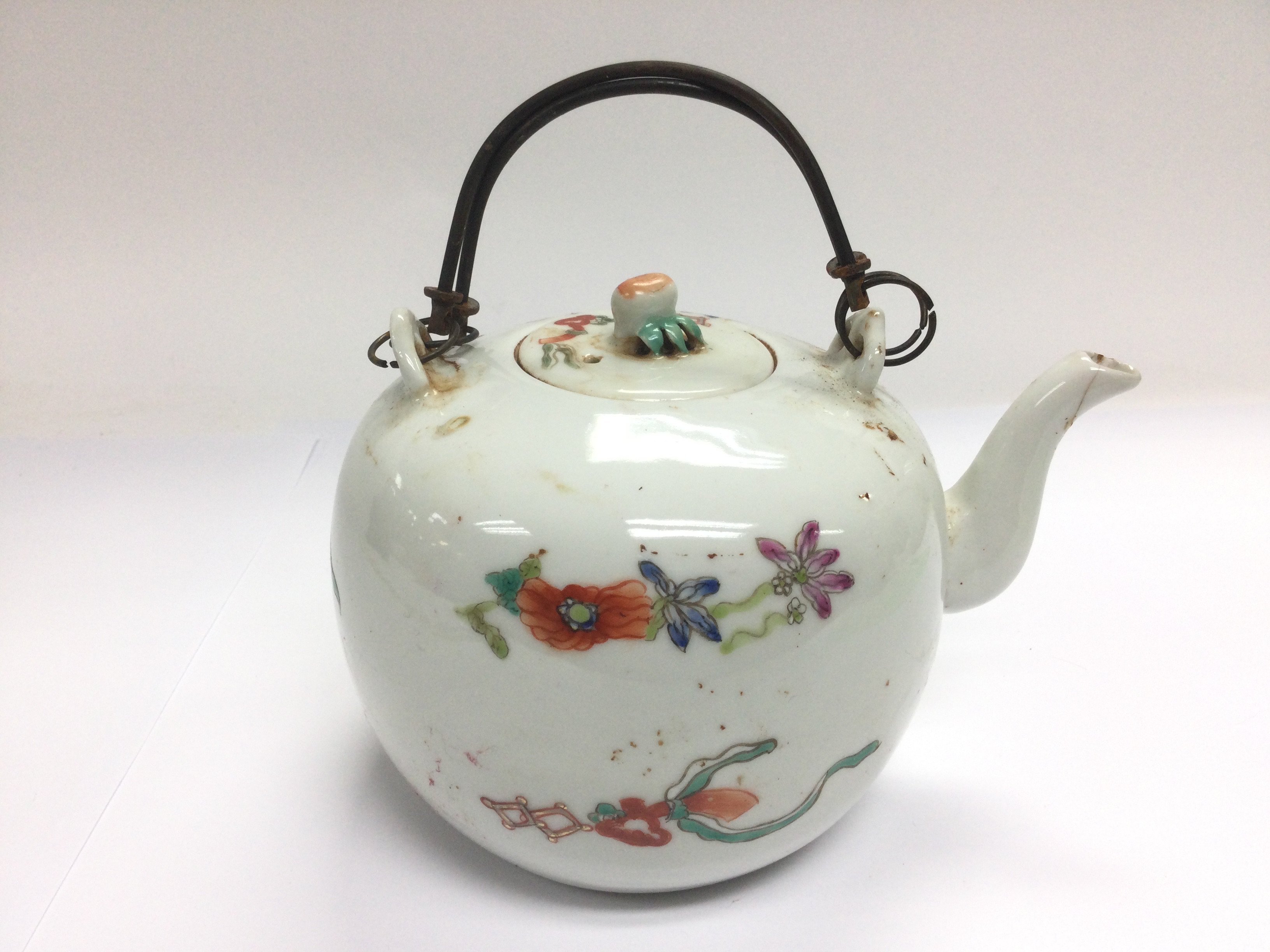 An Oriental teapot with hand painted decoration, approx height 12cm.