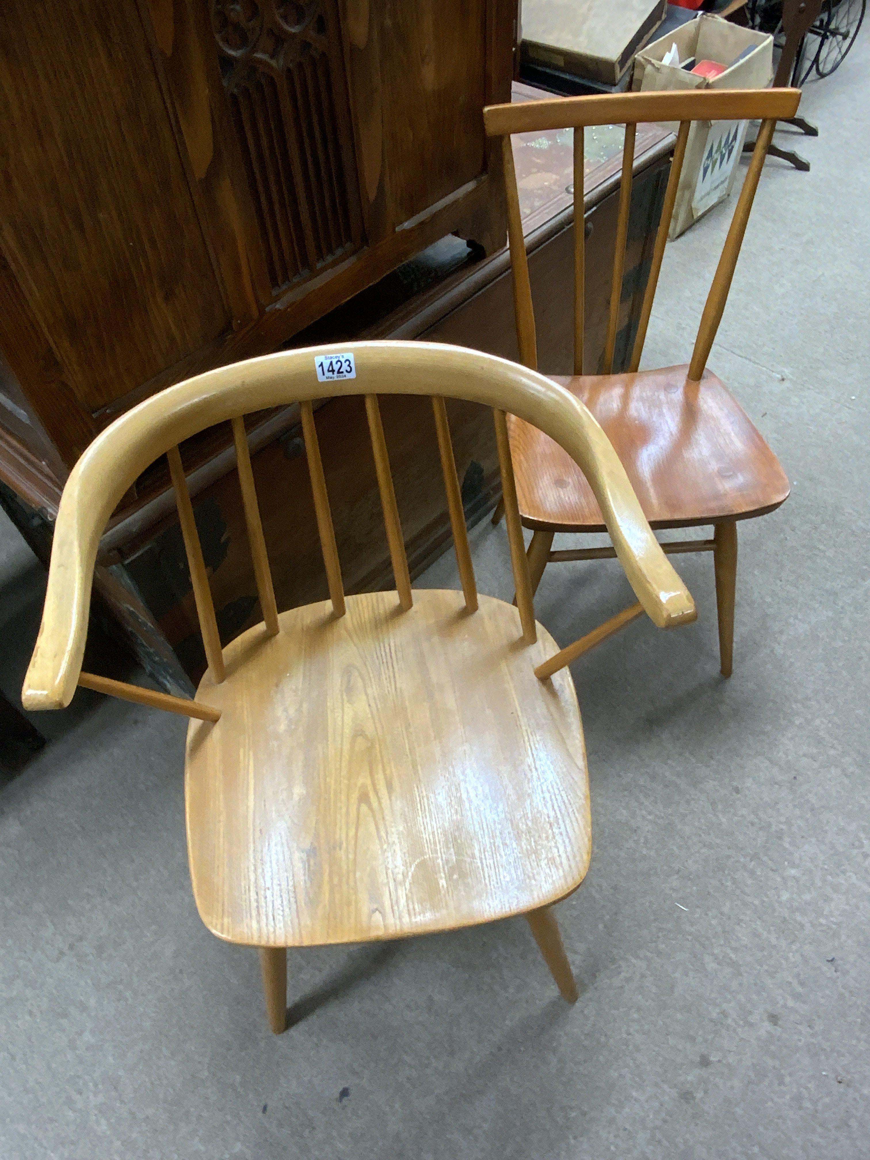 A vintage Centa light beech armchair together with an Ercole beech 391 model dining chair. NO RESERVE
