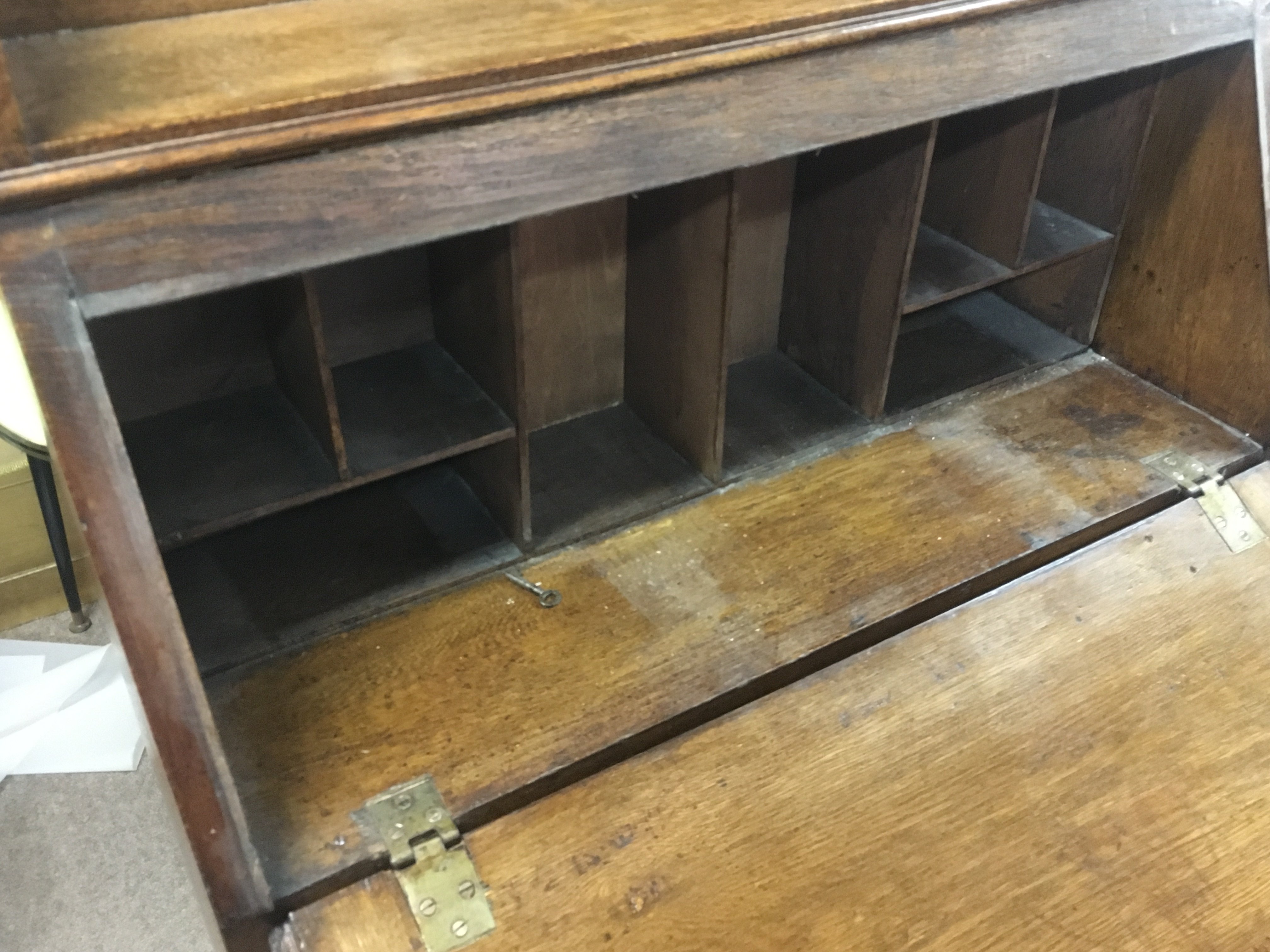 A mahogany Bureau with carved heart design. dimensions 30x73x112cm