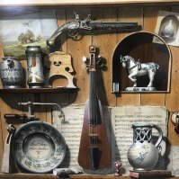 Christopher John Harrison (1945). A large oil on panel of various antiquities. Monogram signature to bottom left. Approx 102cm x 95cm.