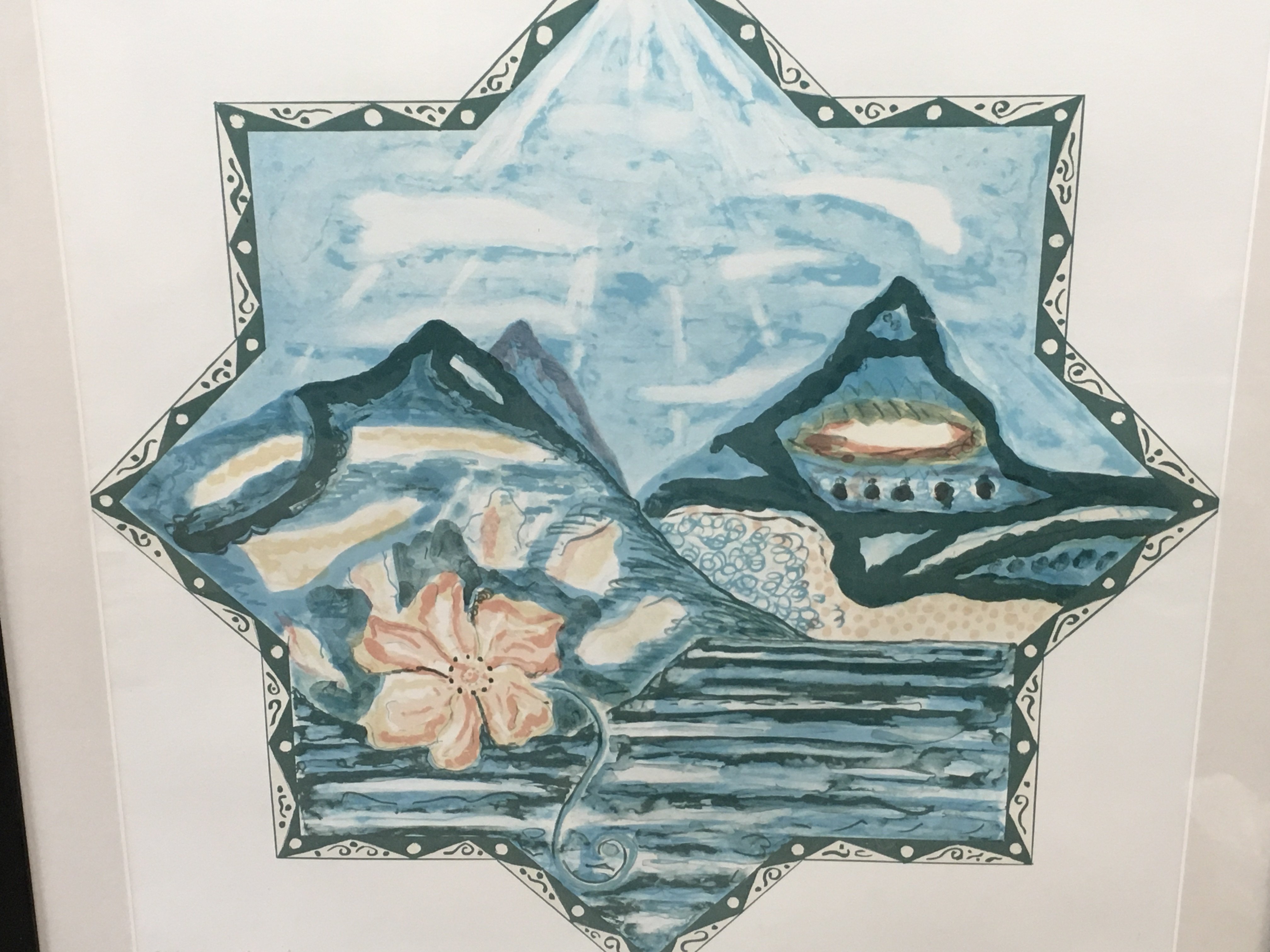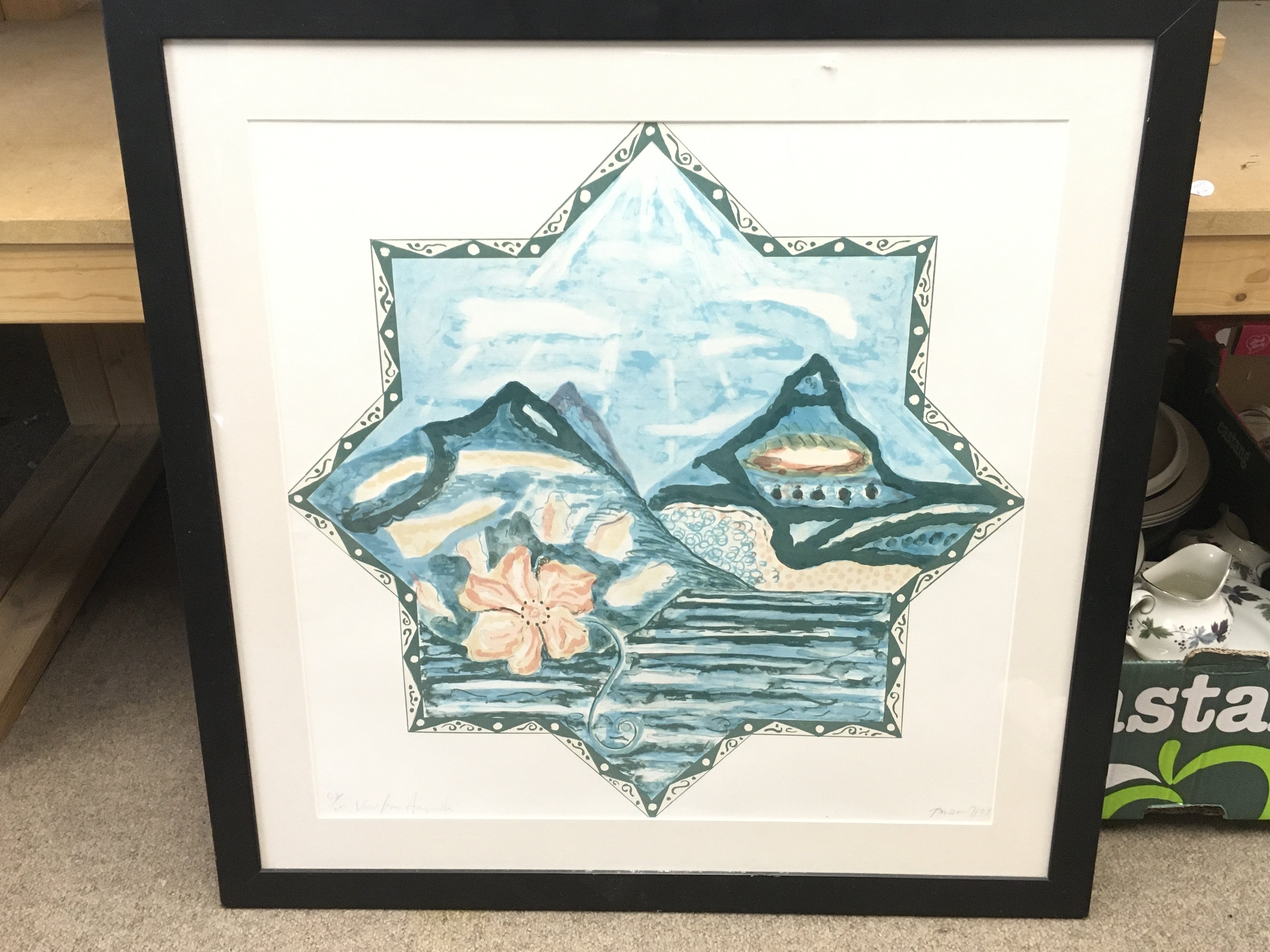 A framed abstract watercolour painting titled View from Australia. Frame dimensions 70x70cm. This lot cannot be posted. NO RESERVE