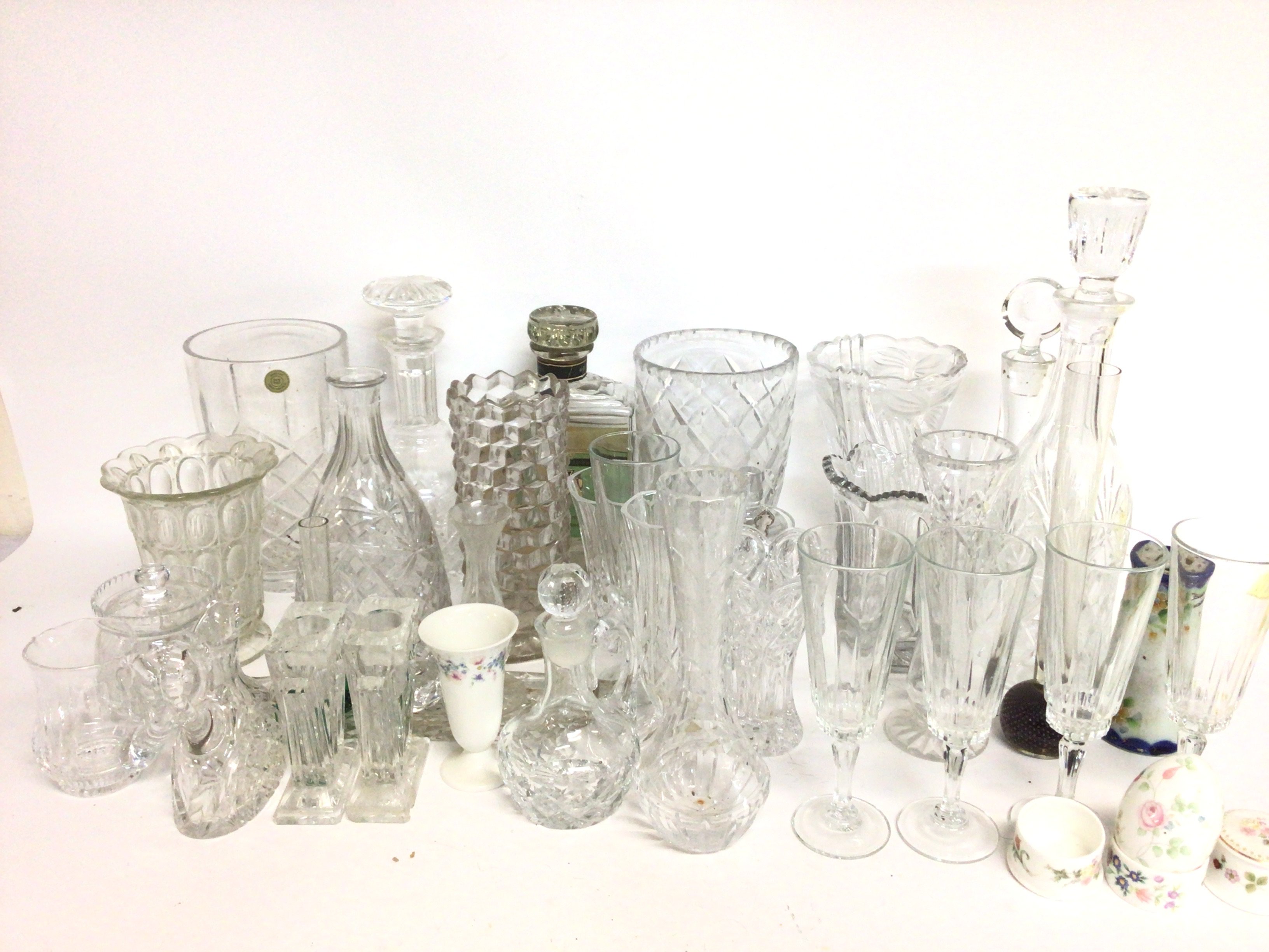 A collection of cut glass including decanters, drinking glasses, vases etc. this lot cannot be posted. NO RESERVE