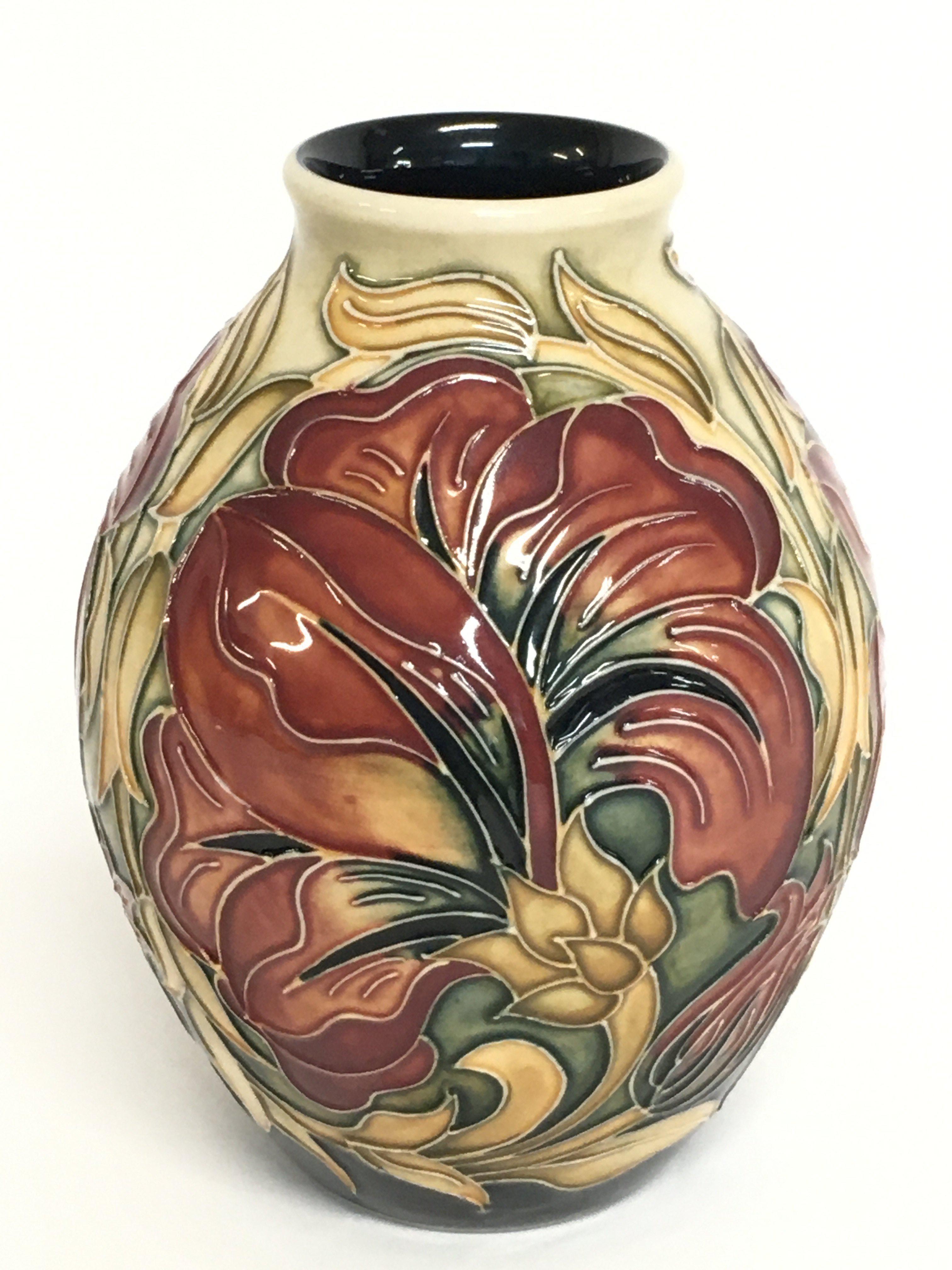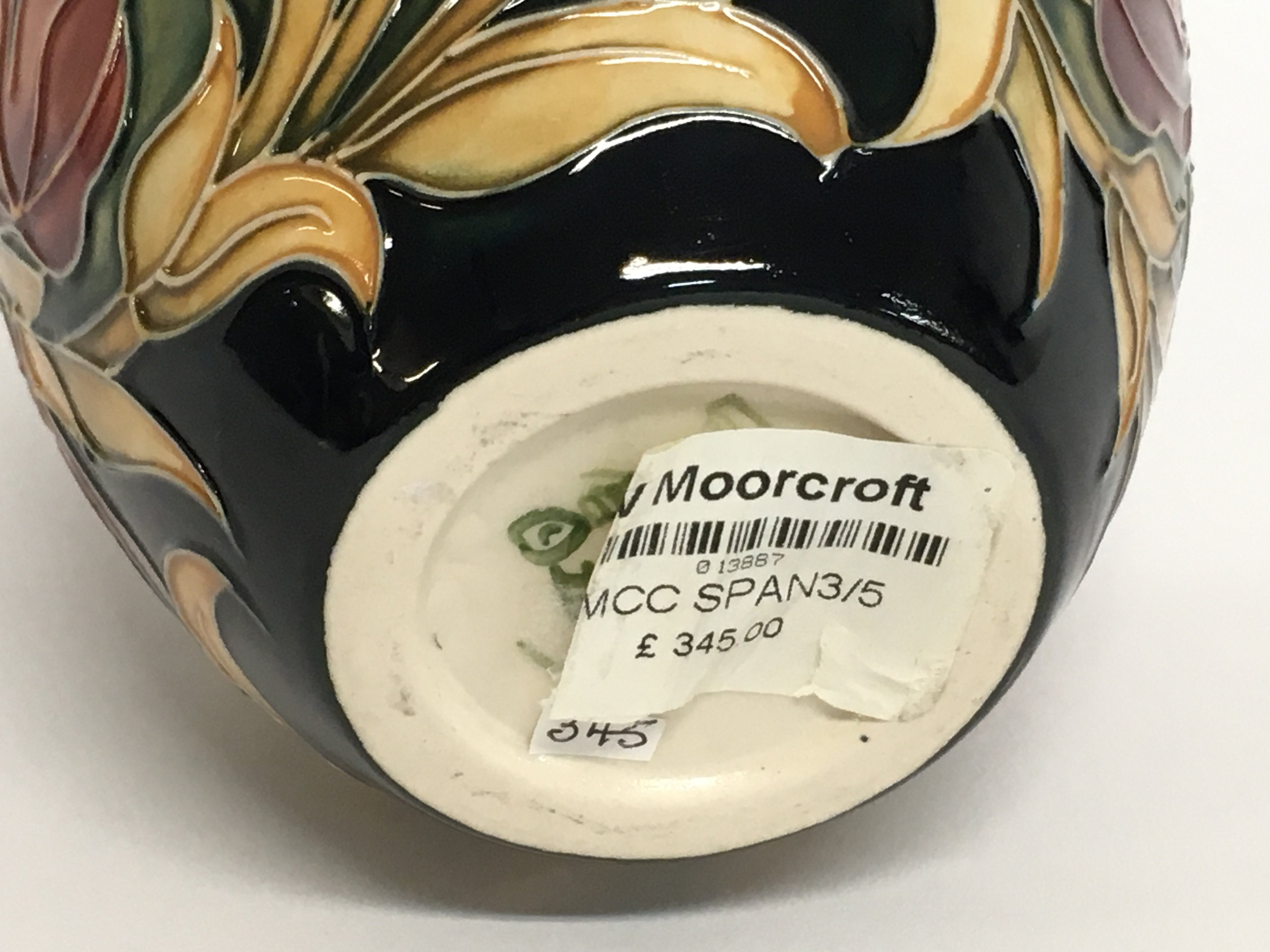 A Moorcroft Spanish vase. 14cm tall. No obvious damage or restoration, this lot cannot be posted.