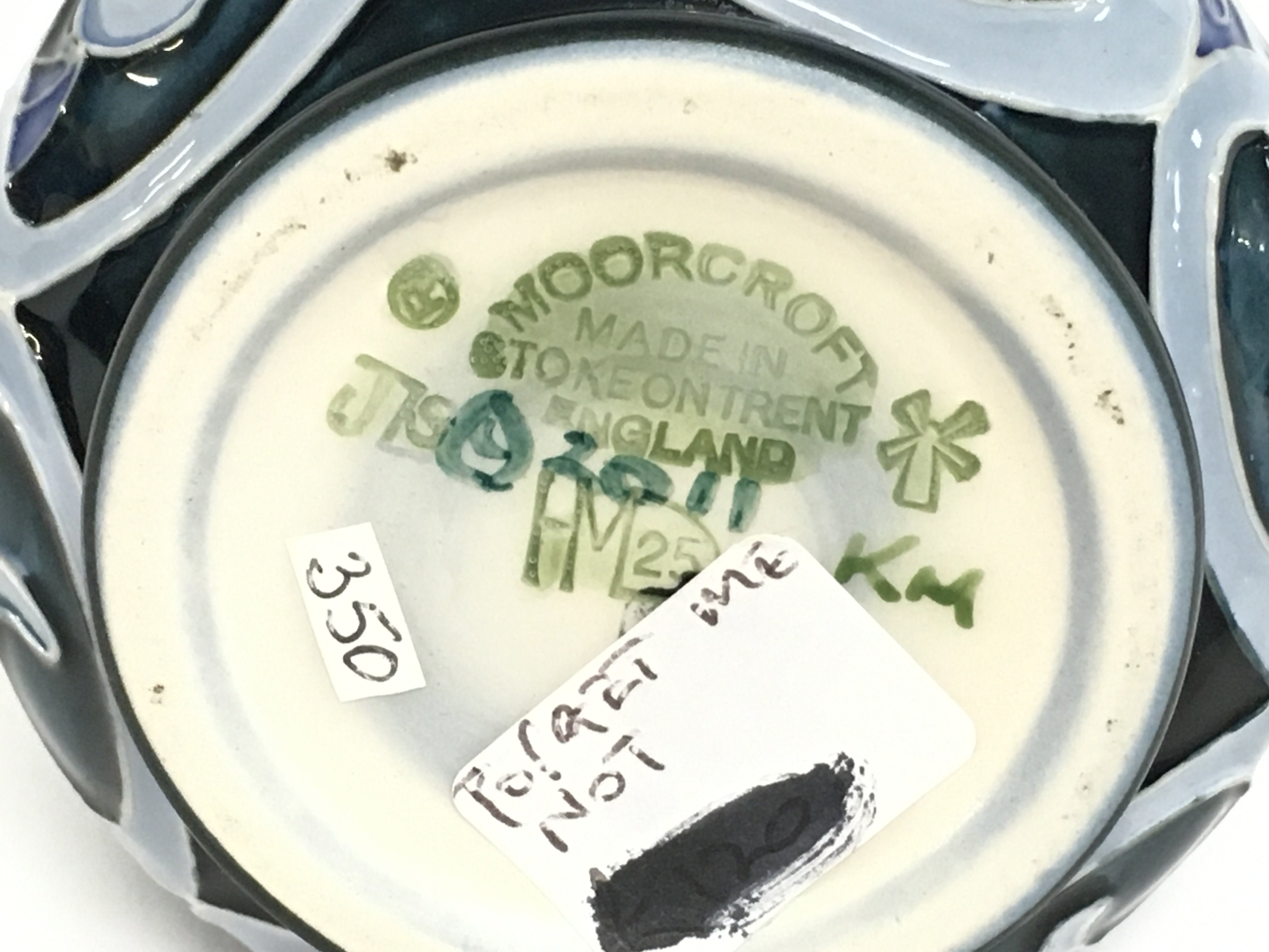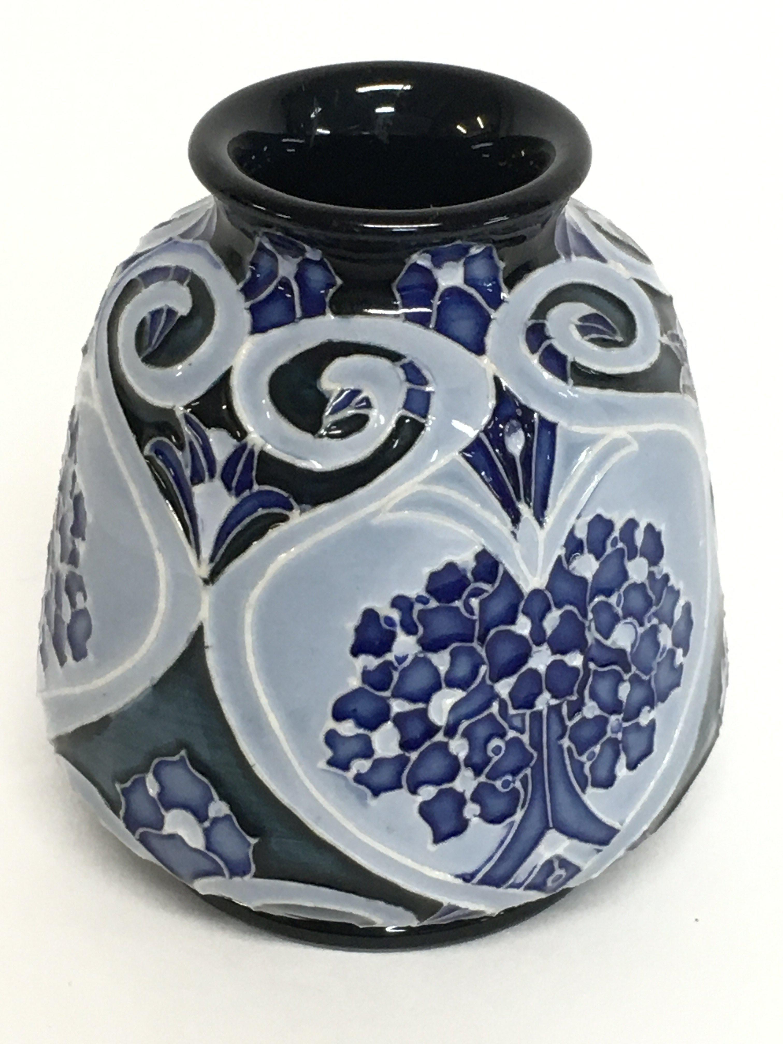 A Moorcroft forget me not vase, 8cm tall. No obvious damage or restoration, this lot cannot be posted.