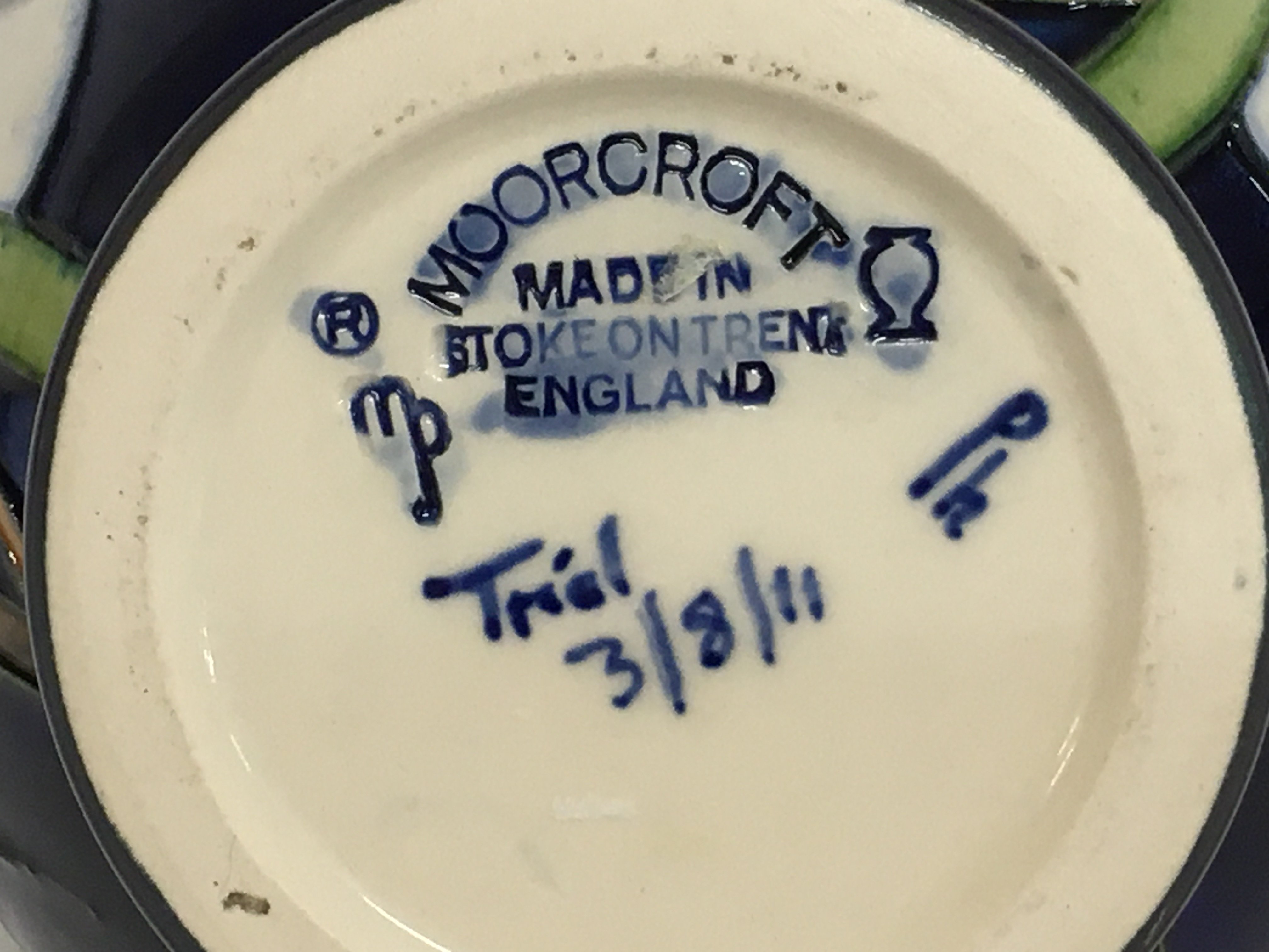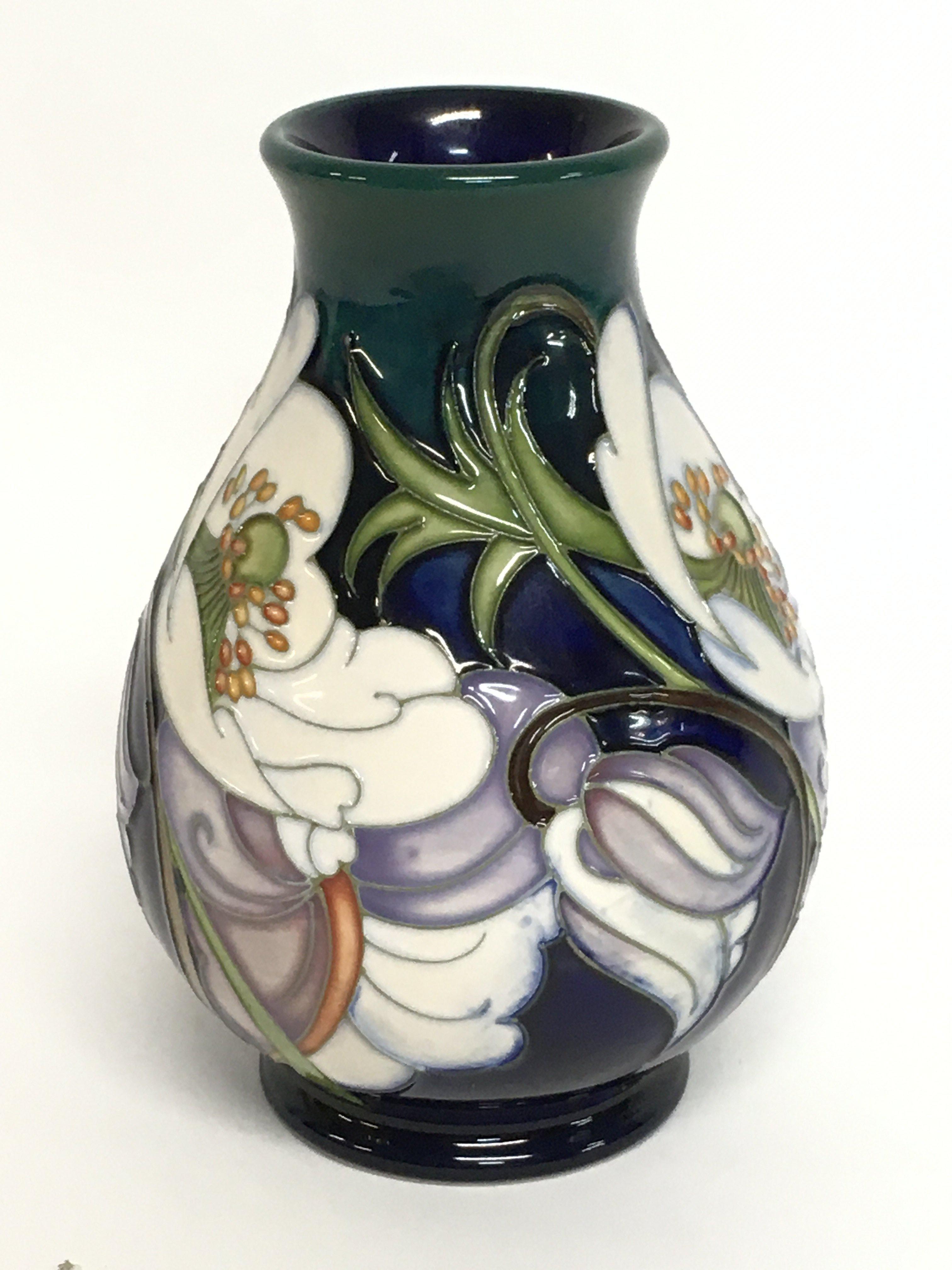 A Moorcroft trial vase, 14cm tall. No obvious damage or restoration, this lot cannot be posted.