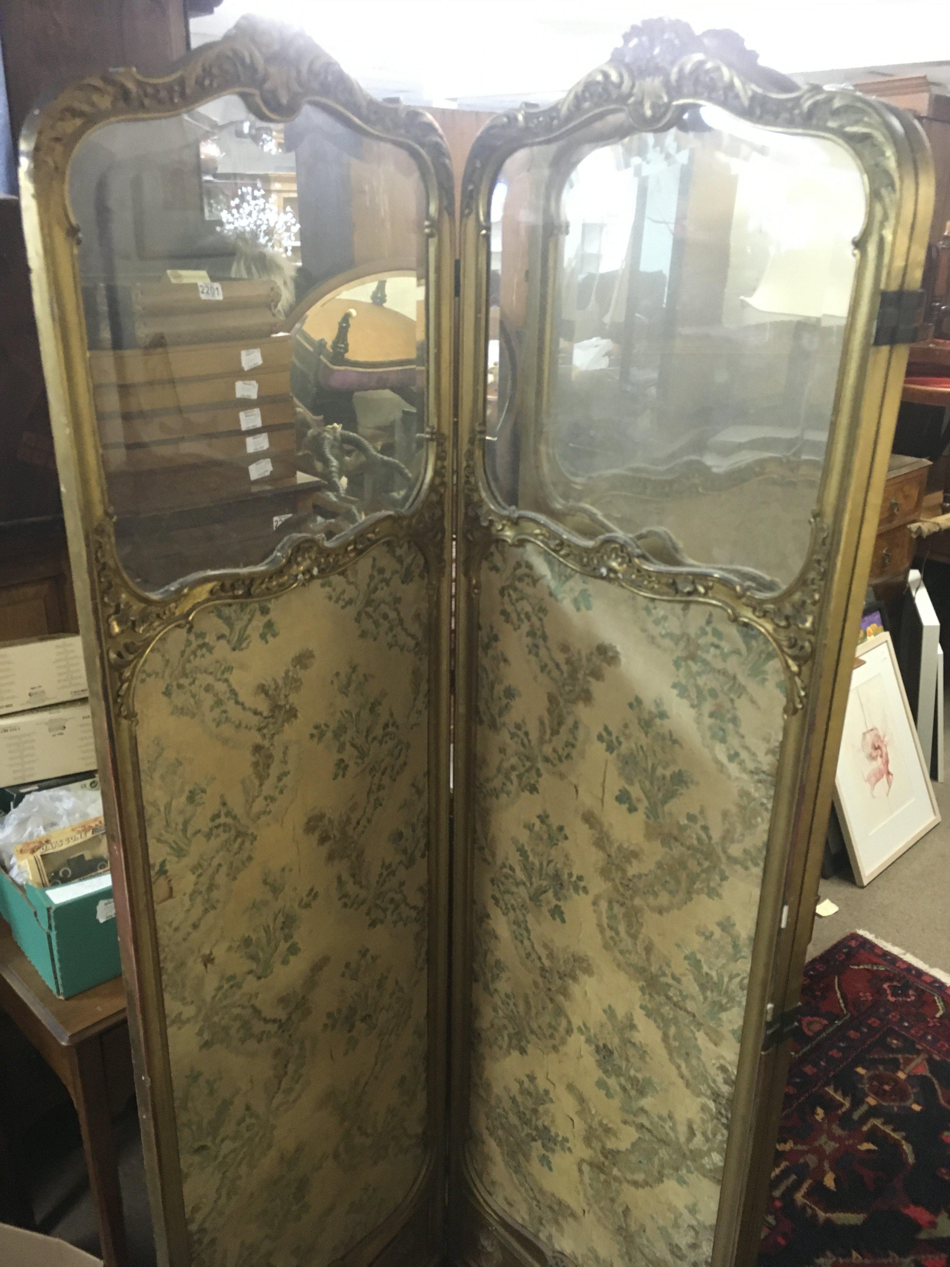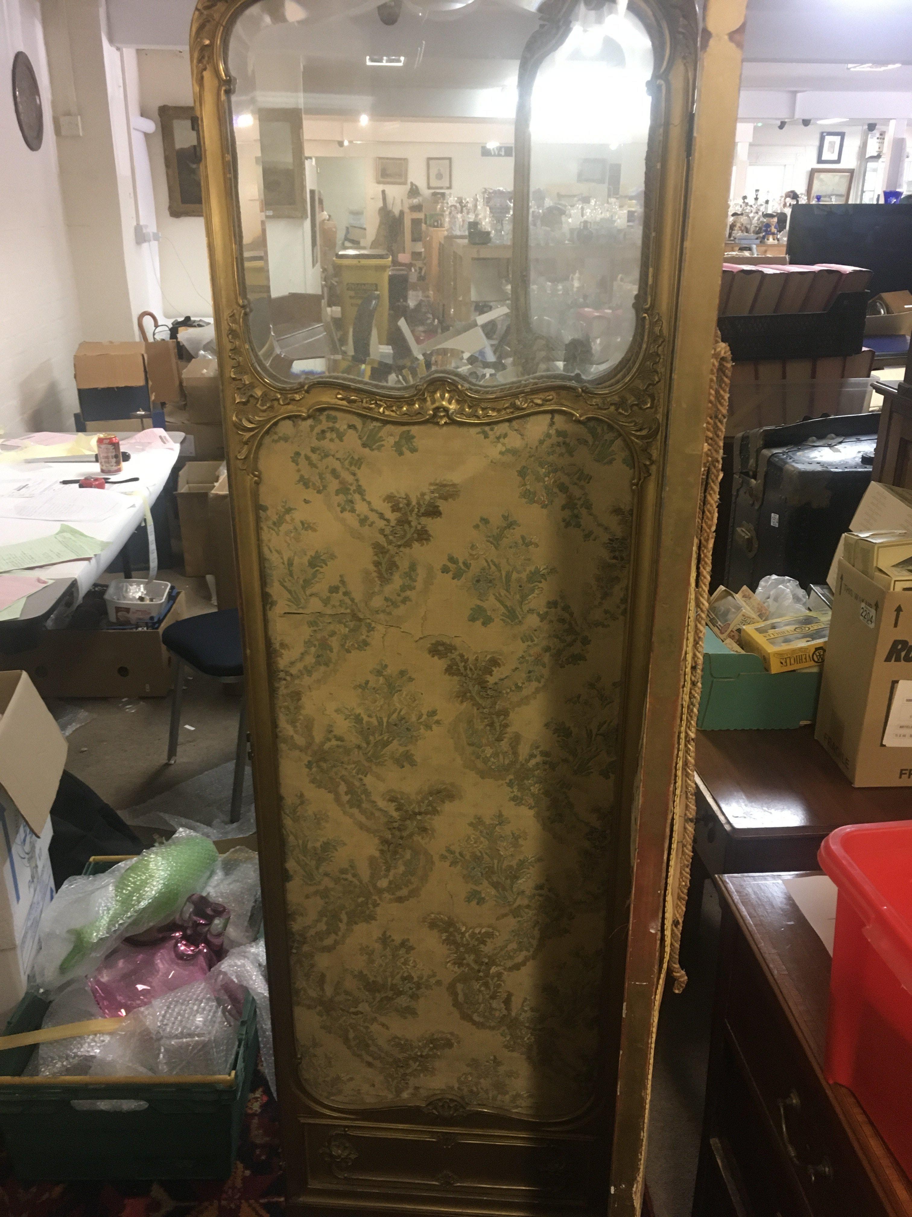 A Gilt panel with embroidery and glass design. 182cm tall Postage category D