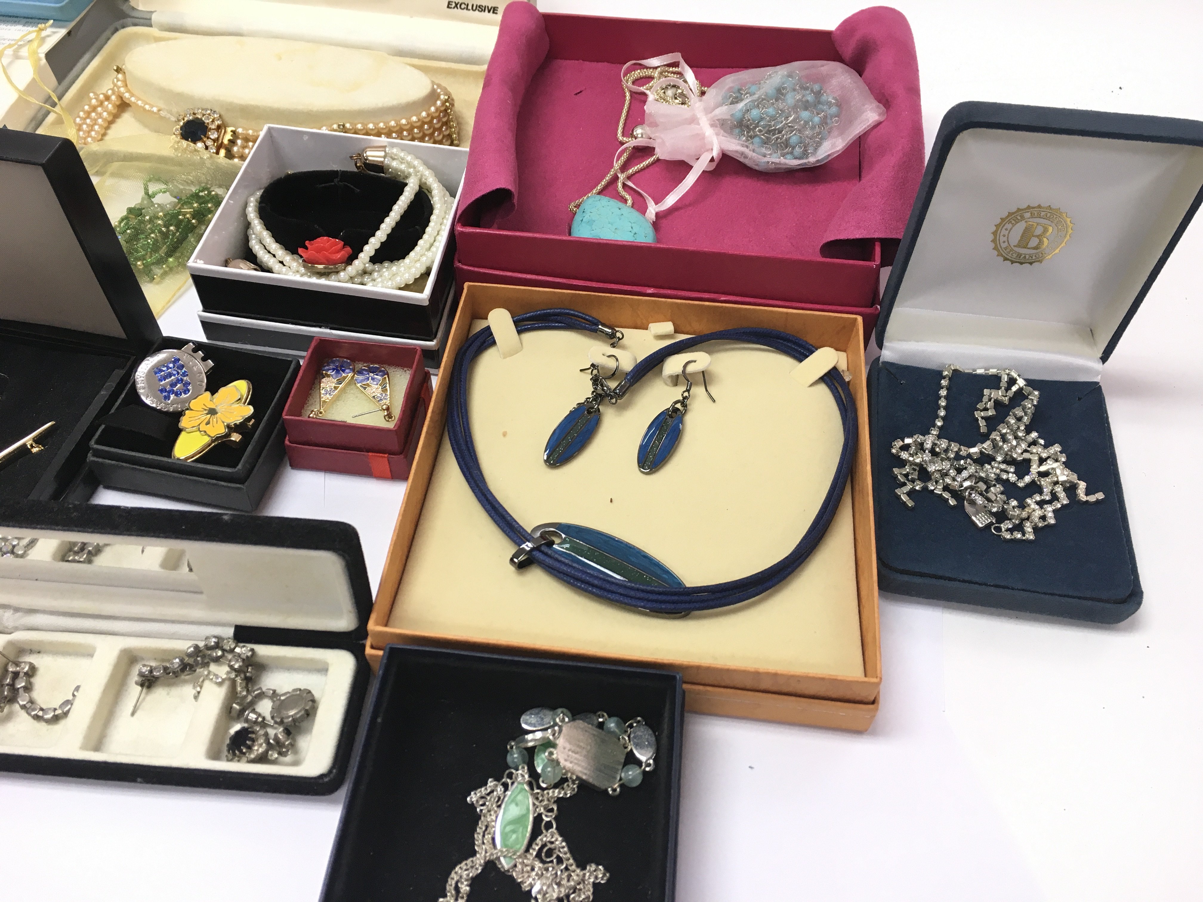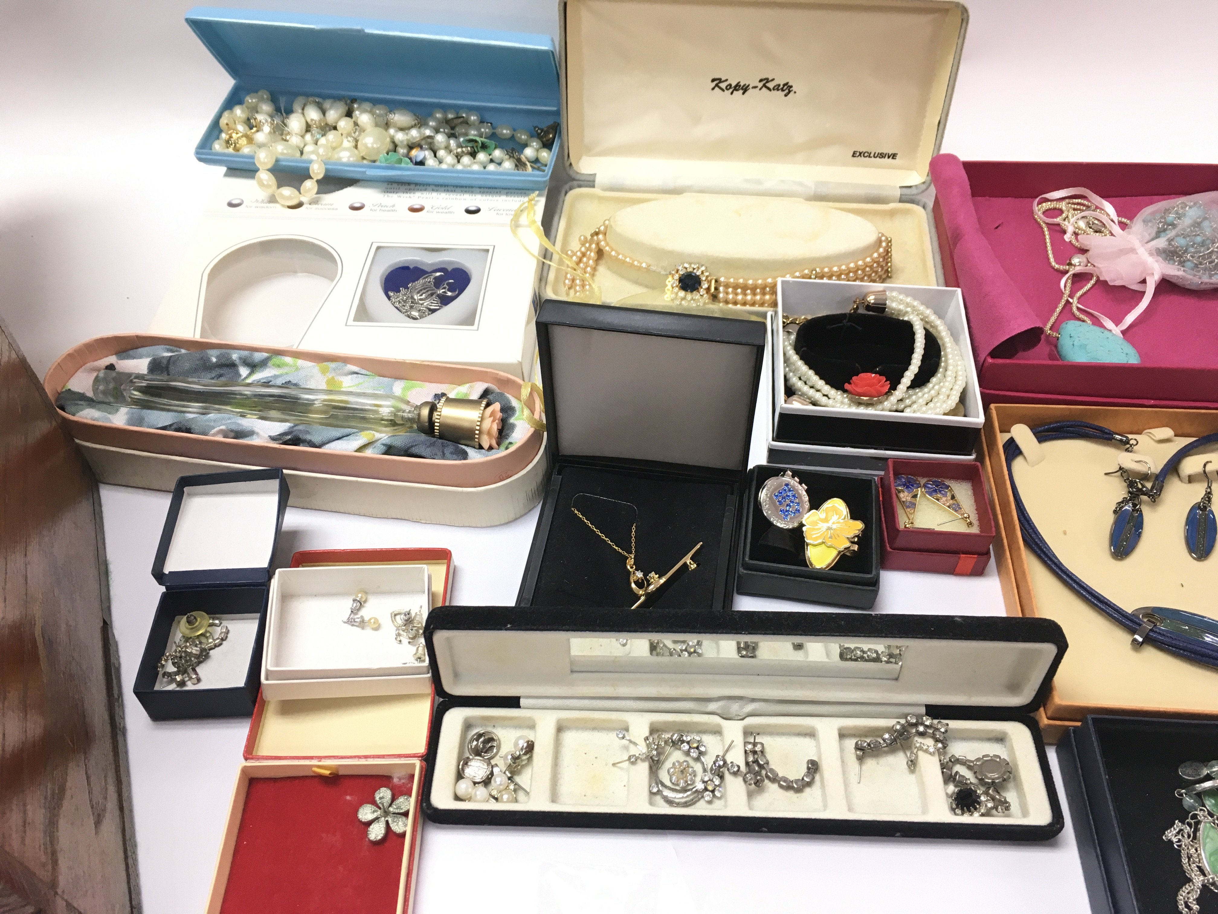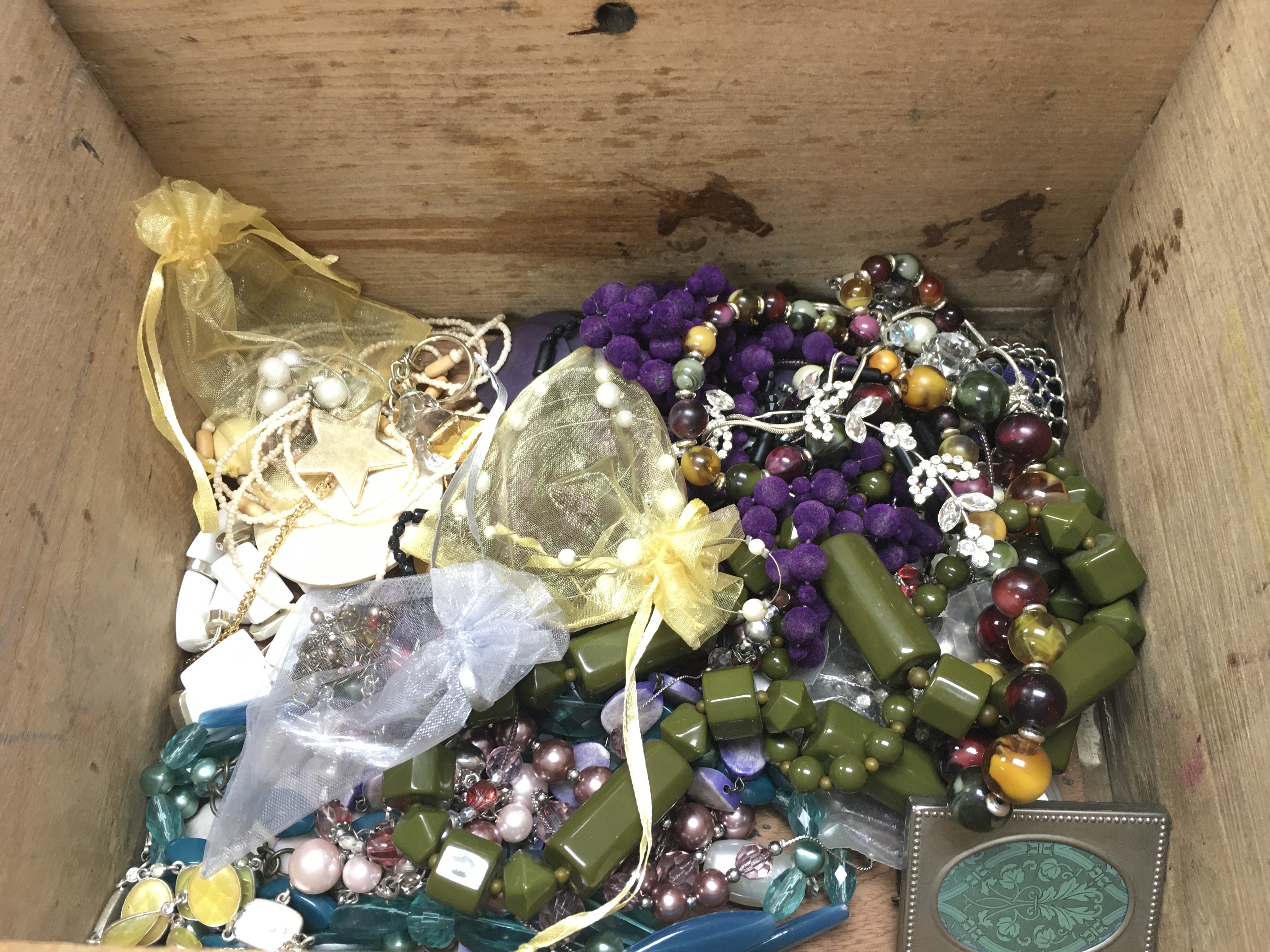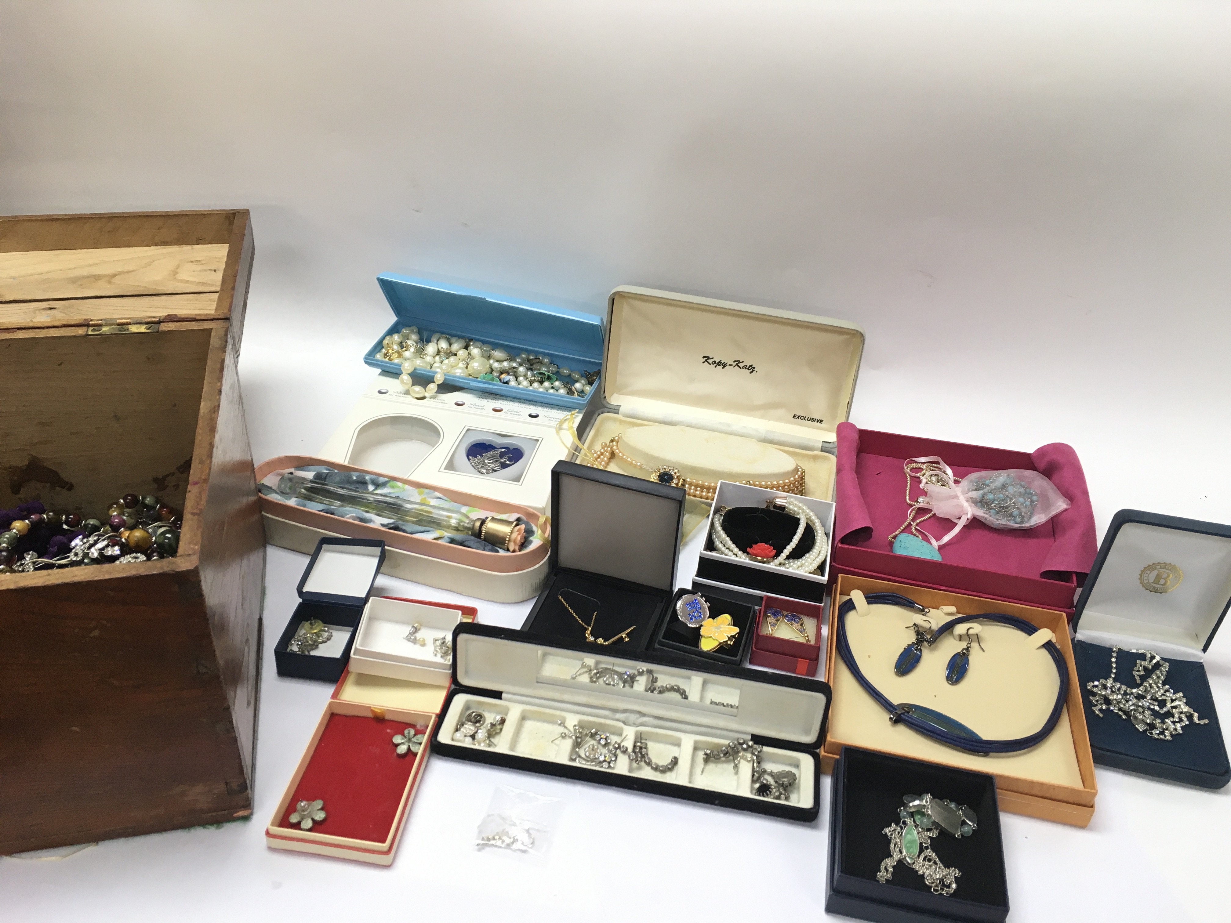 A box of mixed costume jewellery including necklaces earrings etc. Postage B