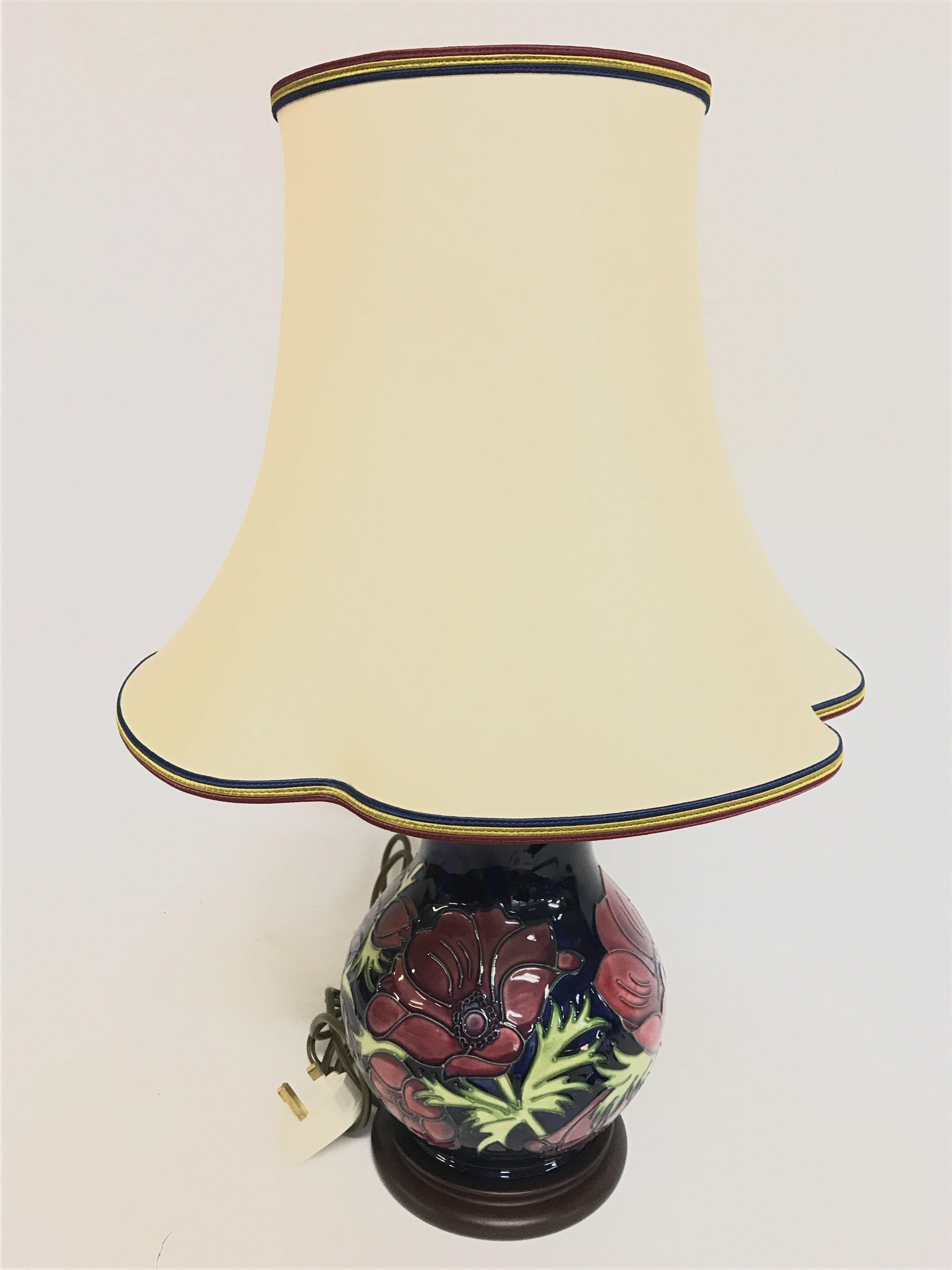 A moorcroft Anemone pattern lamp and shade 60cm tall. No obvious damage or restoration This lot cannot be posted