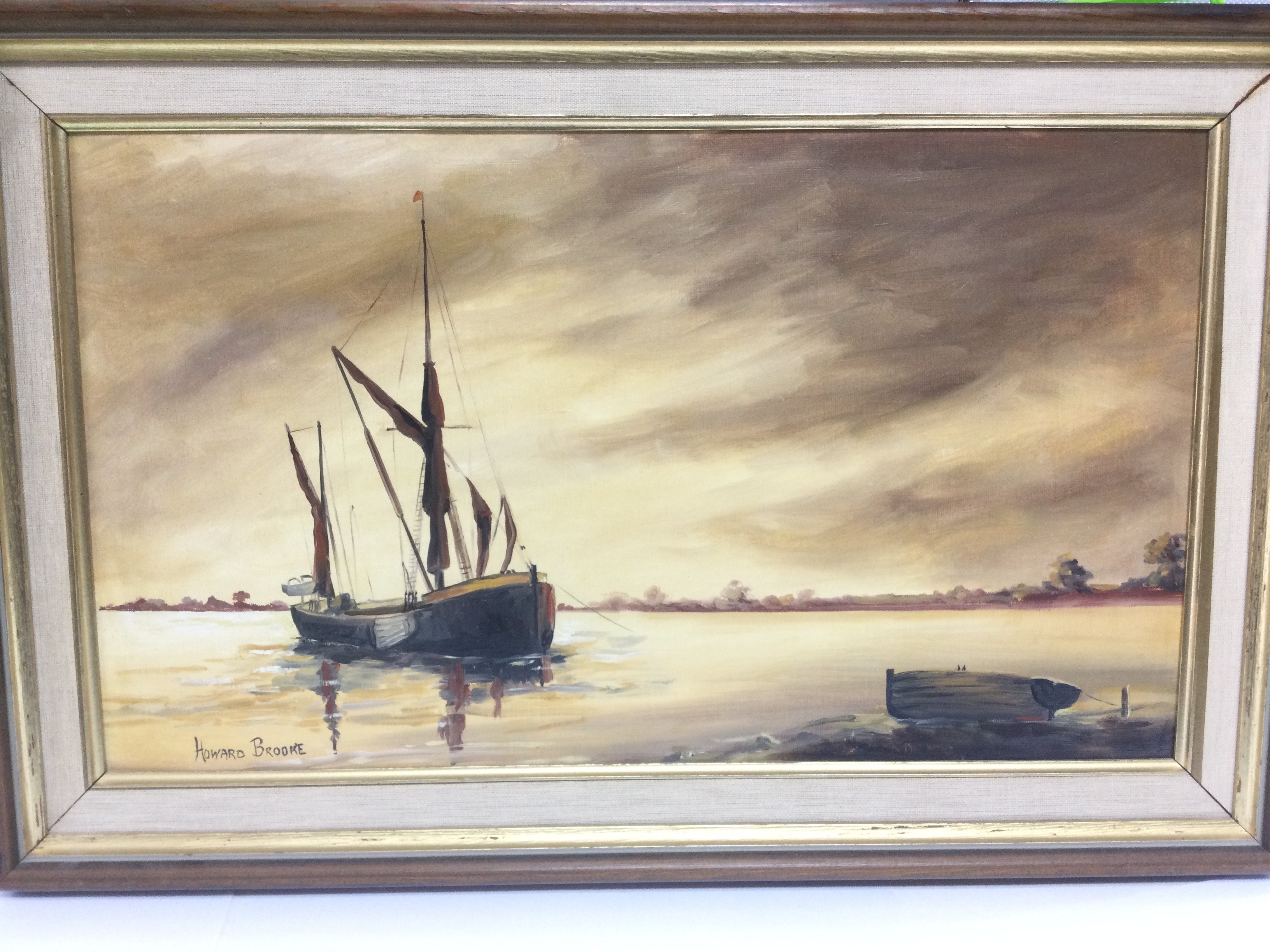 Three Howard Brooke oils on canvas of sailing boats, largest approx 90cm x 55cm. Shipping category D.