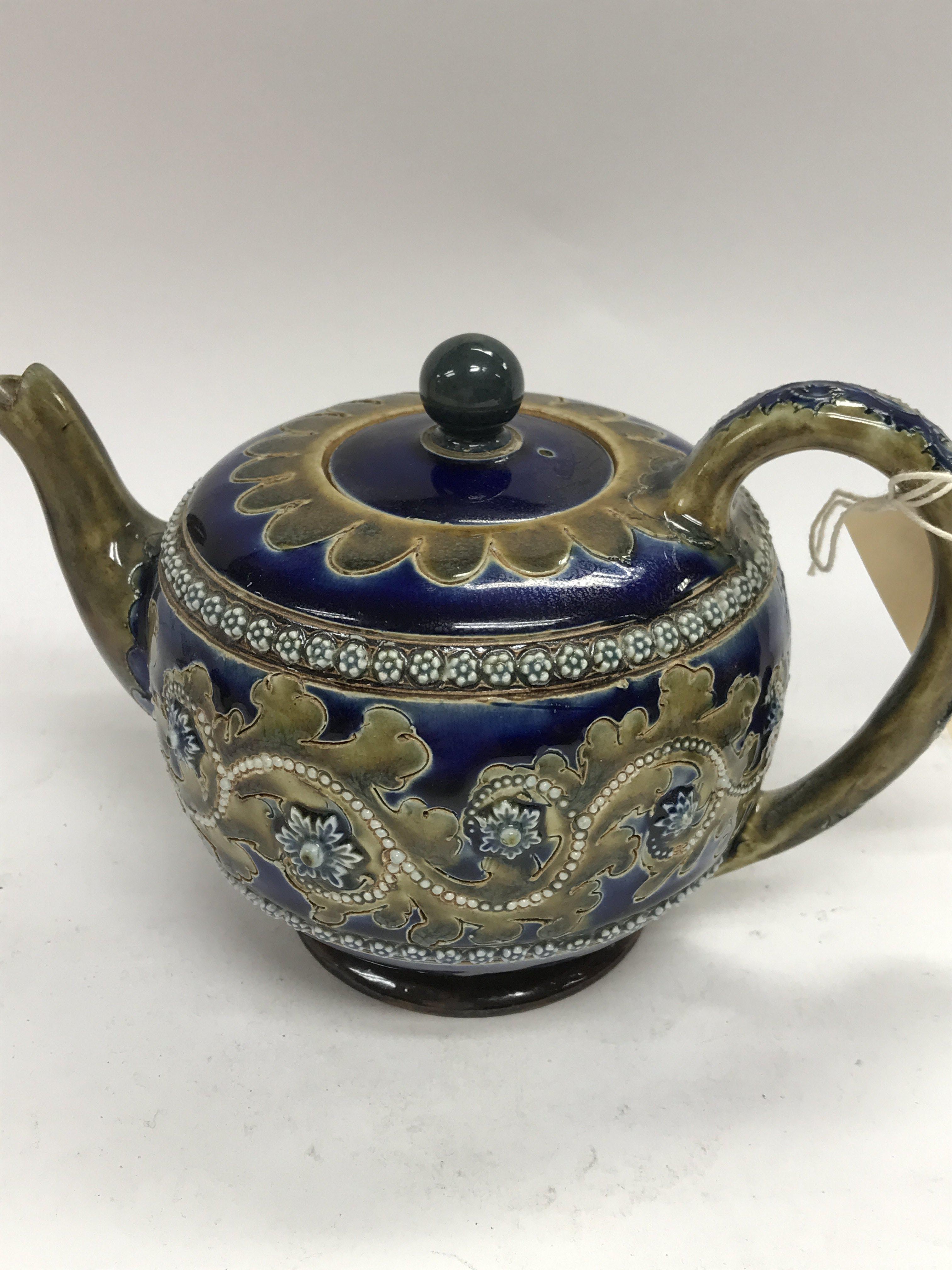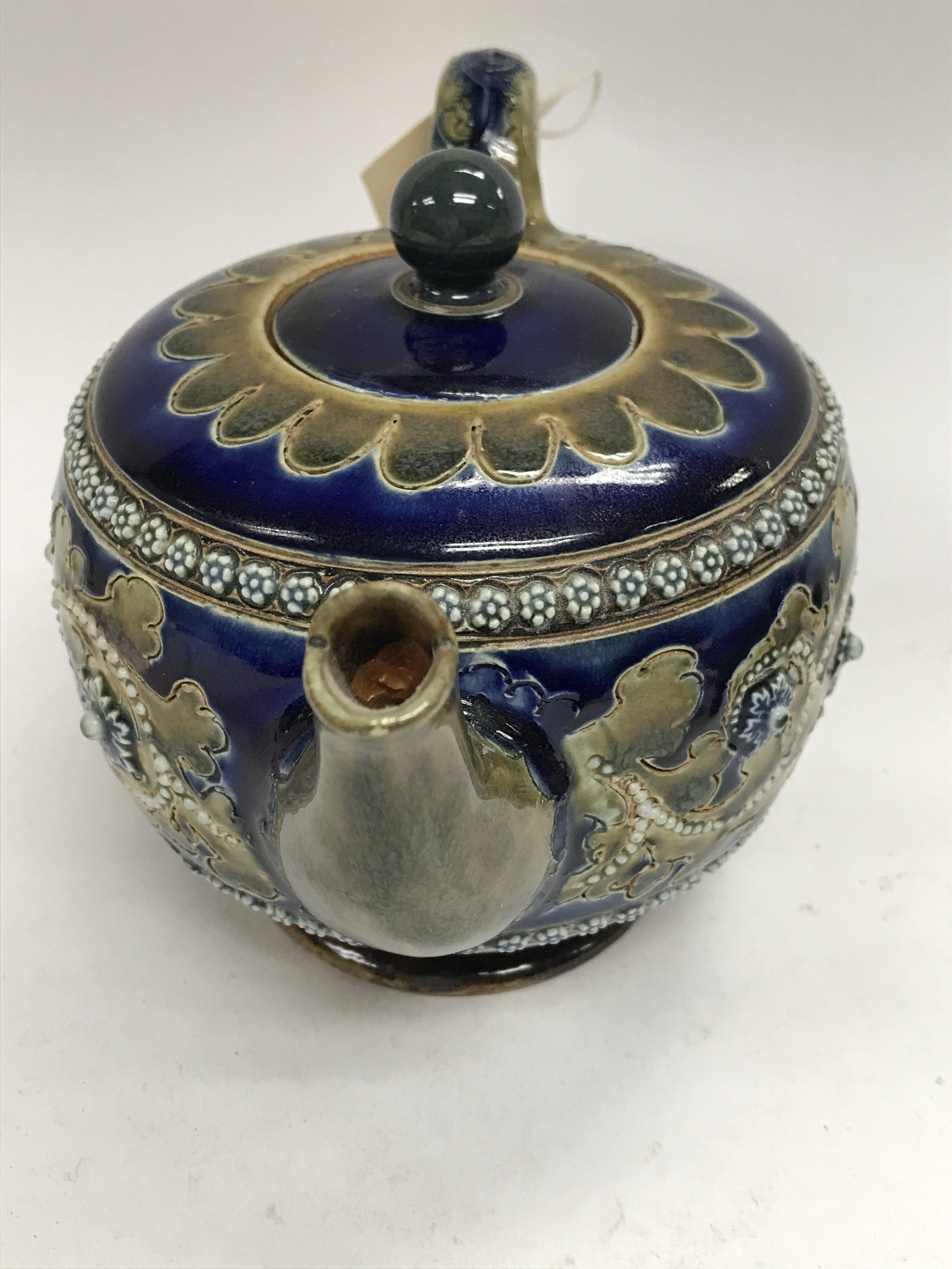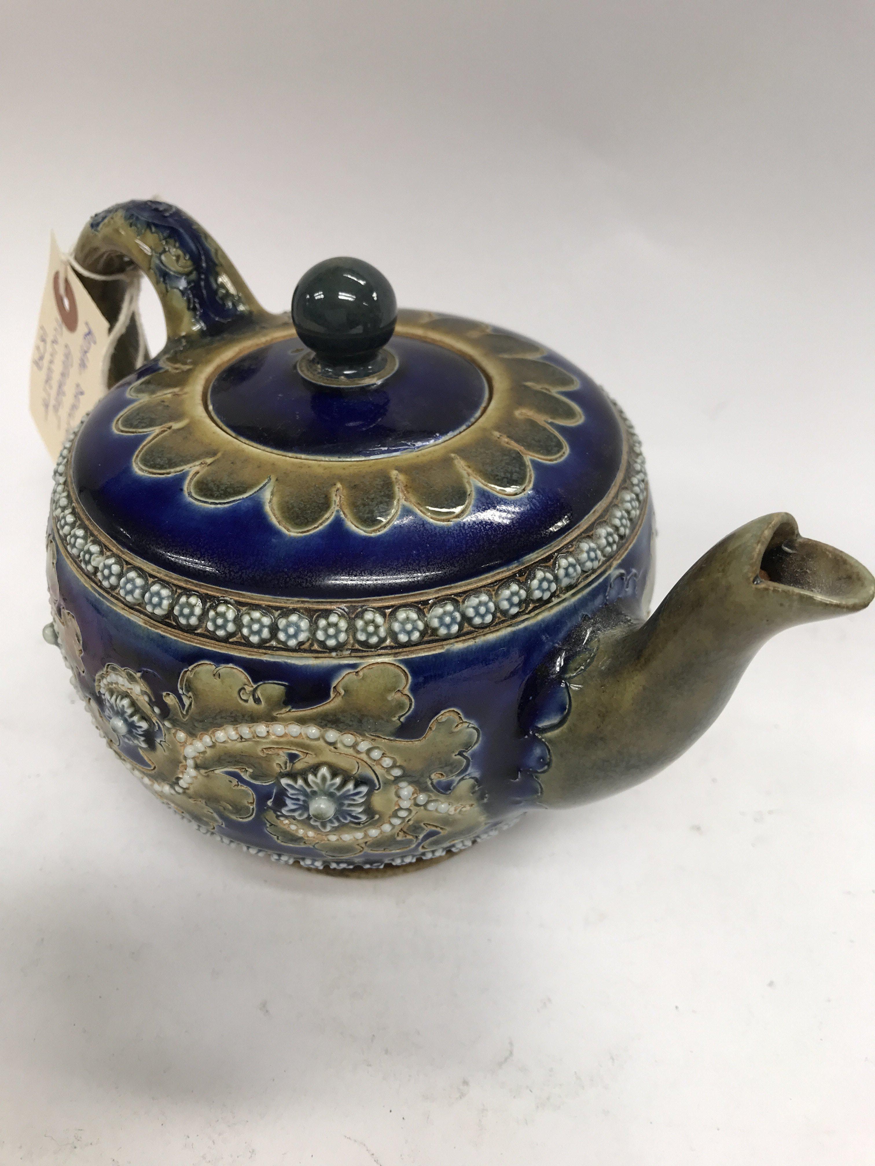 A Royal Doulton George Tinworth teapot decorated with raised flower heads 12 cm .