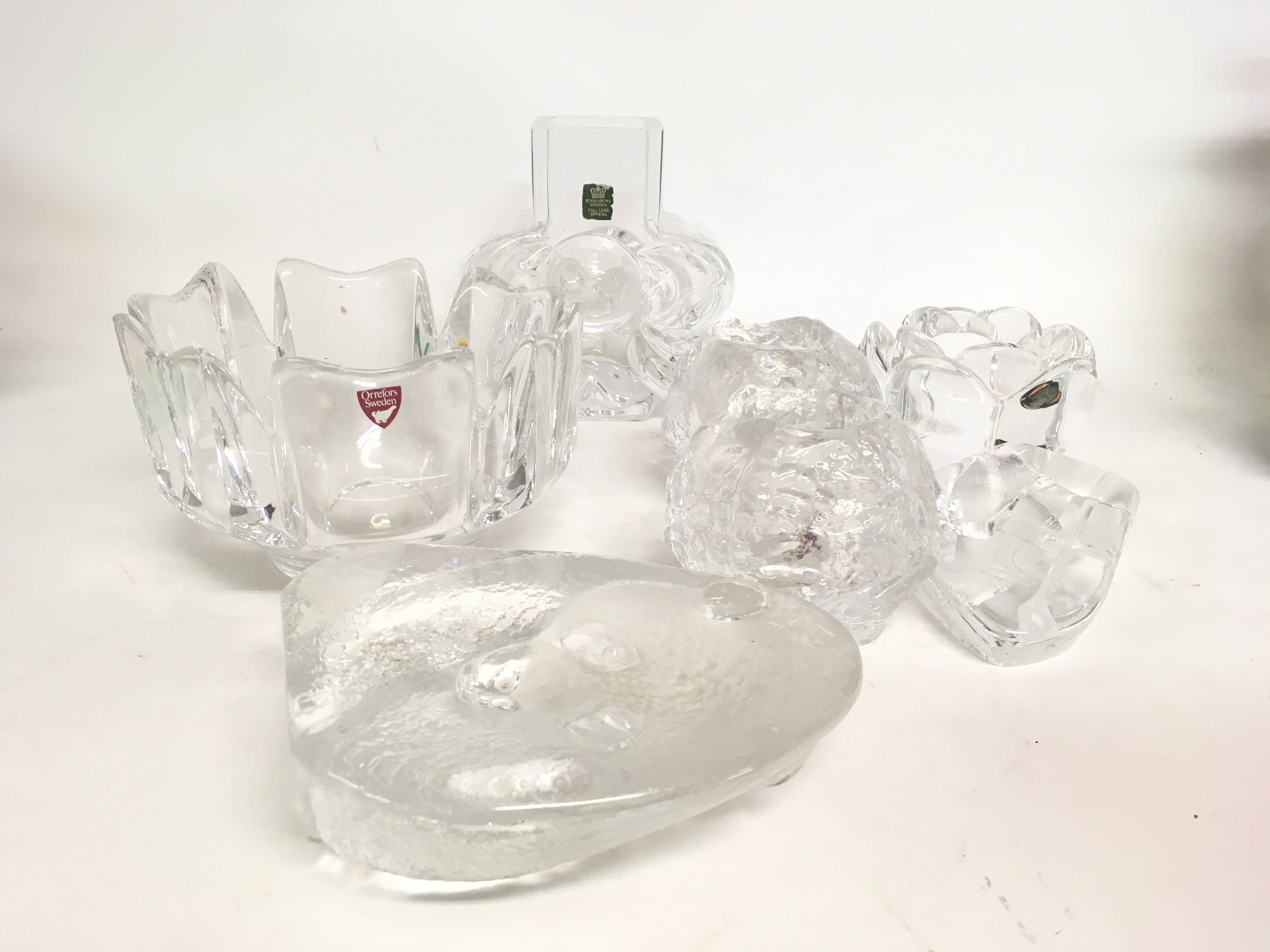 A collection of mid 20th century design glass royal krona lead signed vase and orrefors glass ware items. NO RESERVE